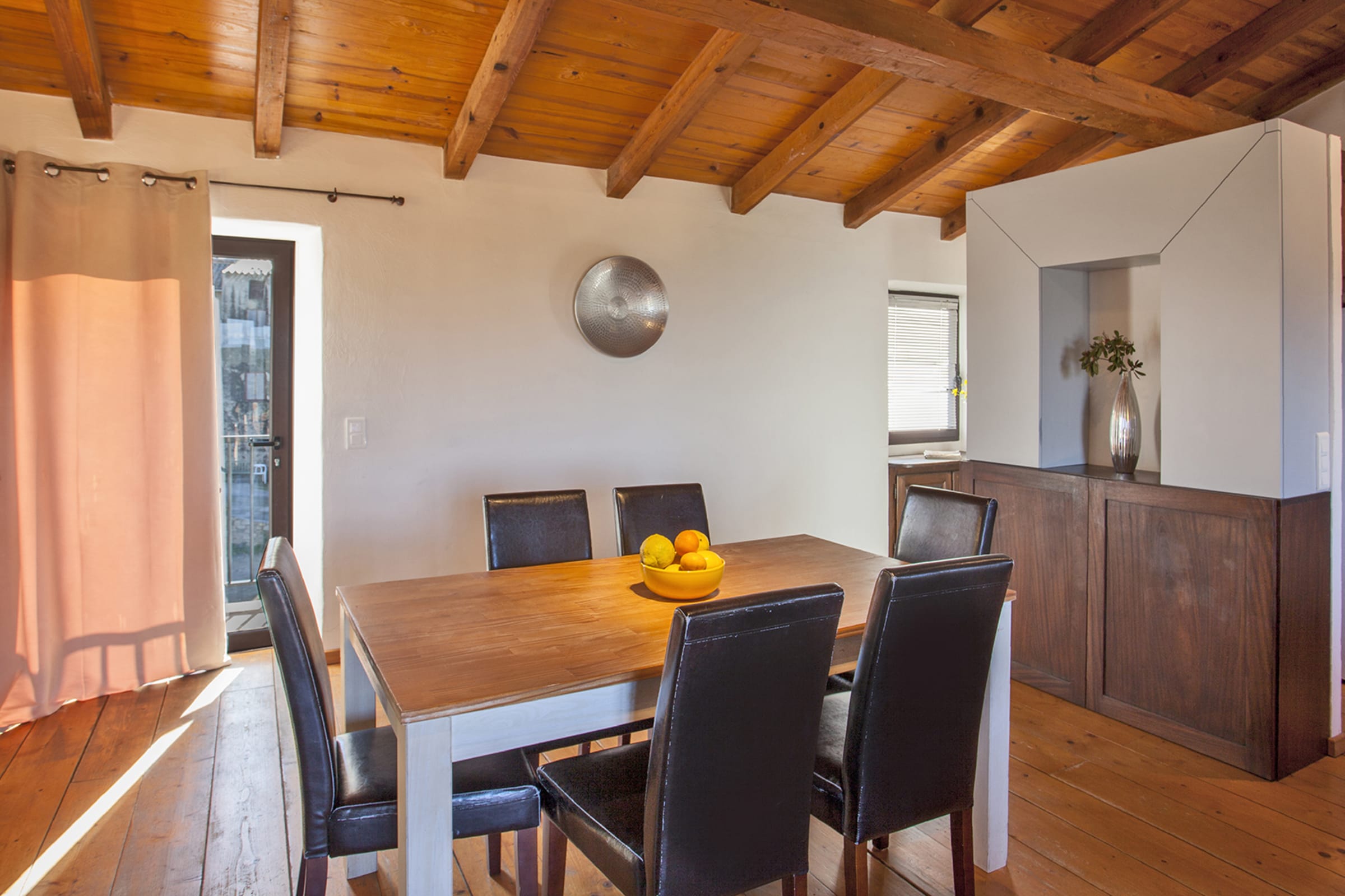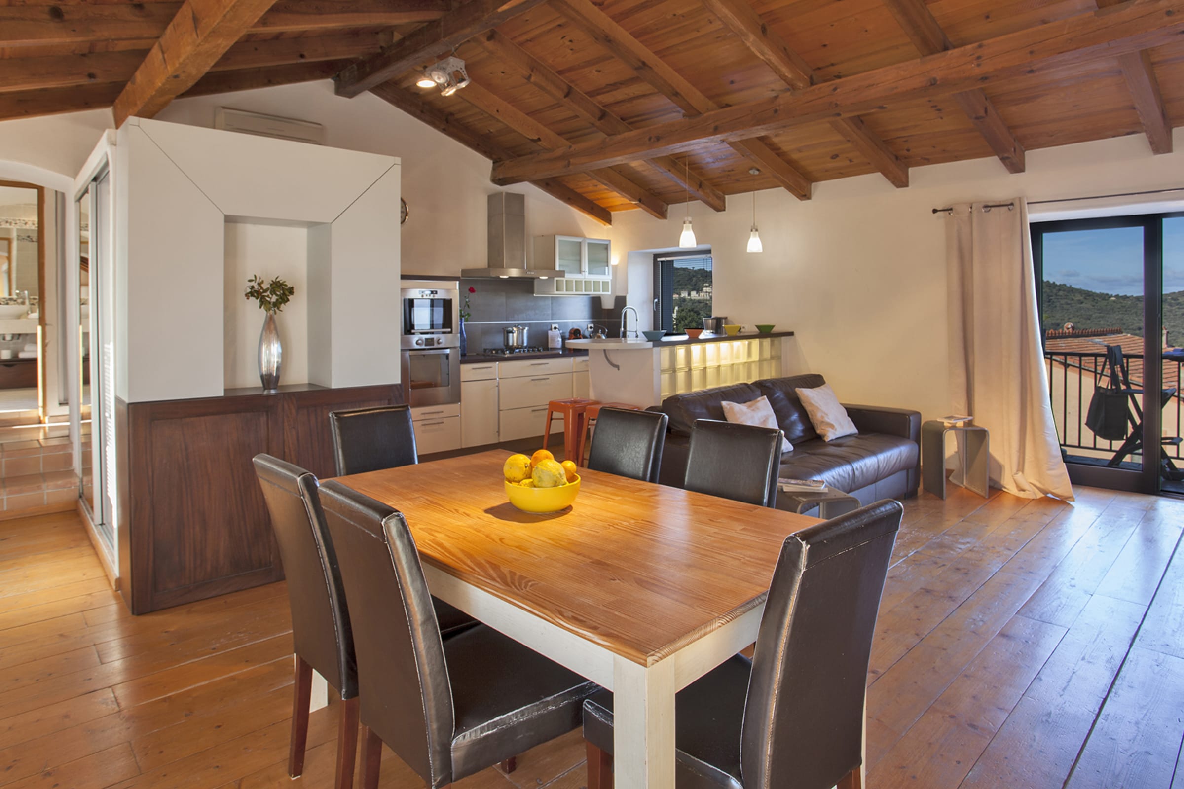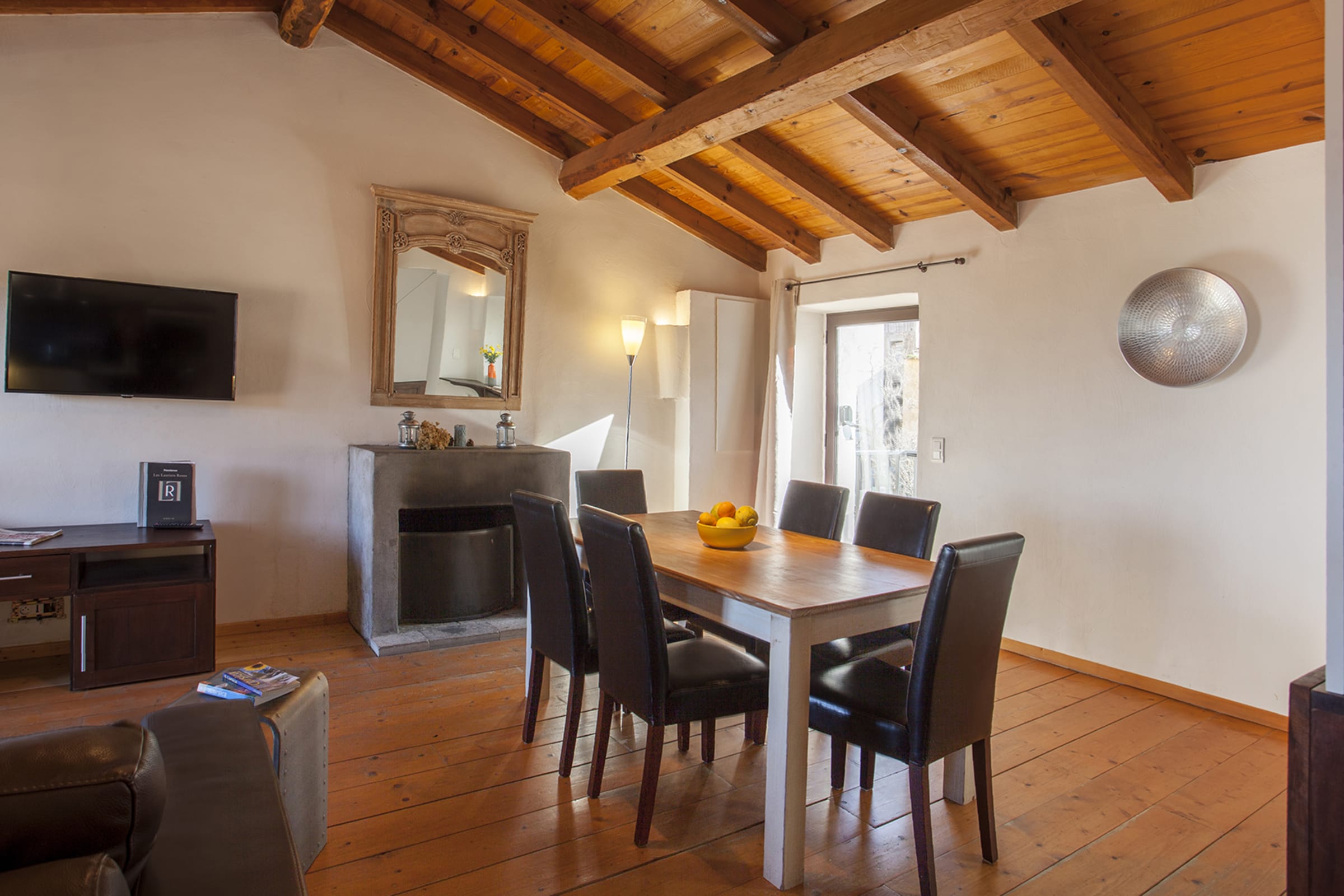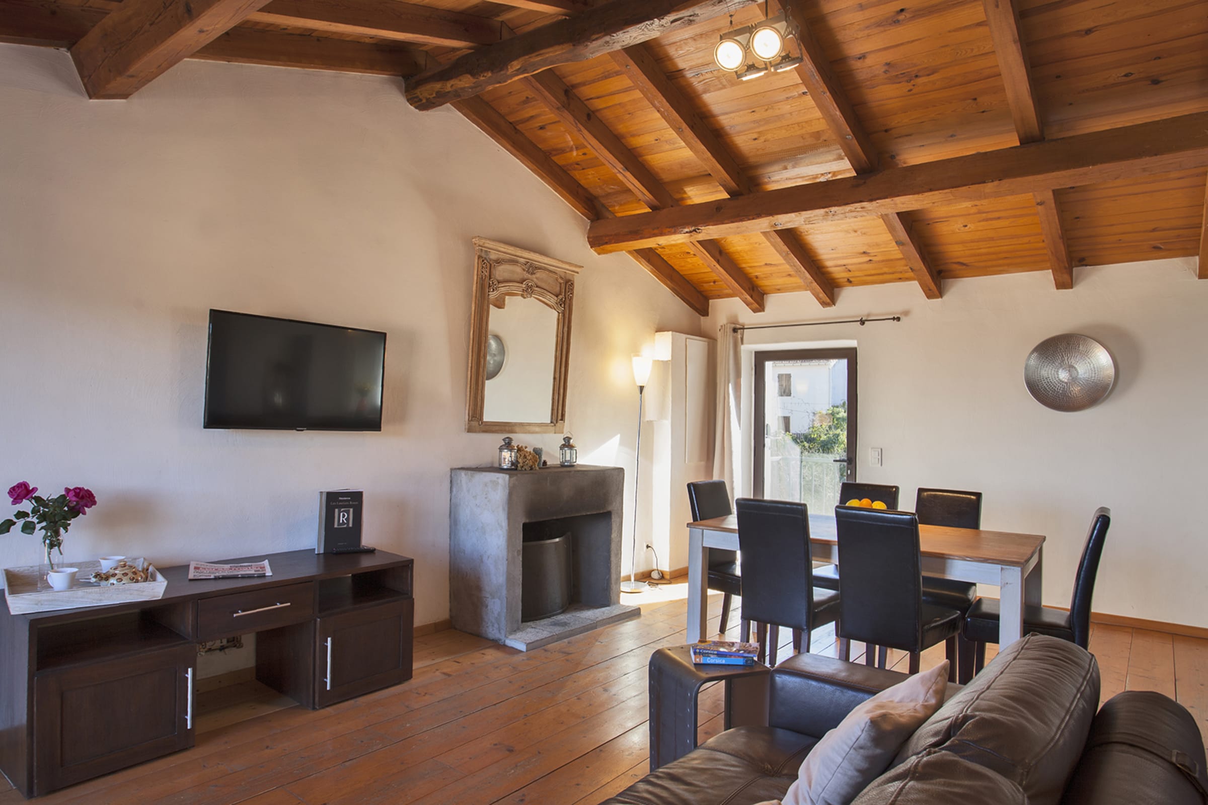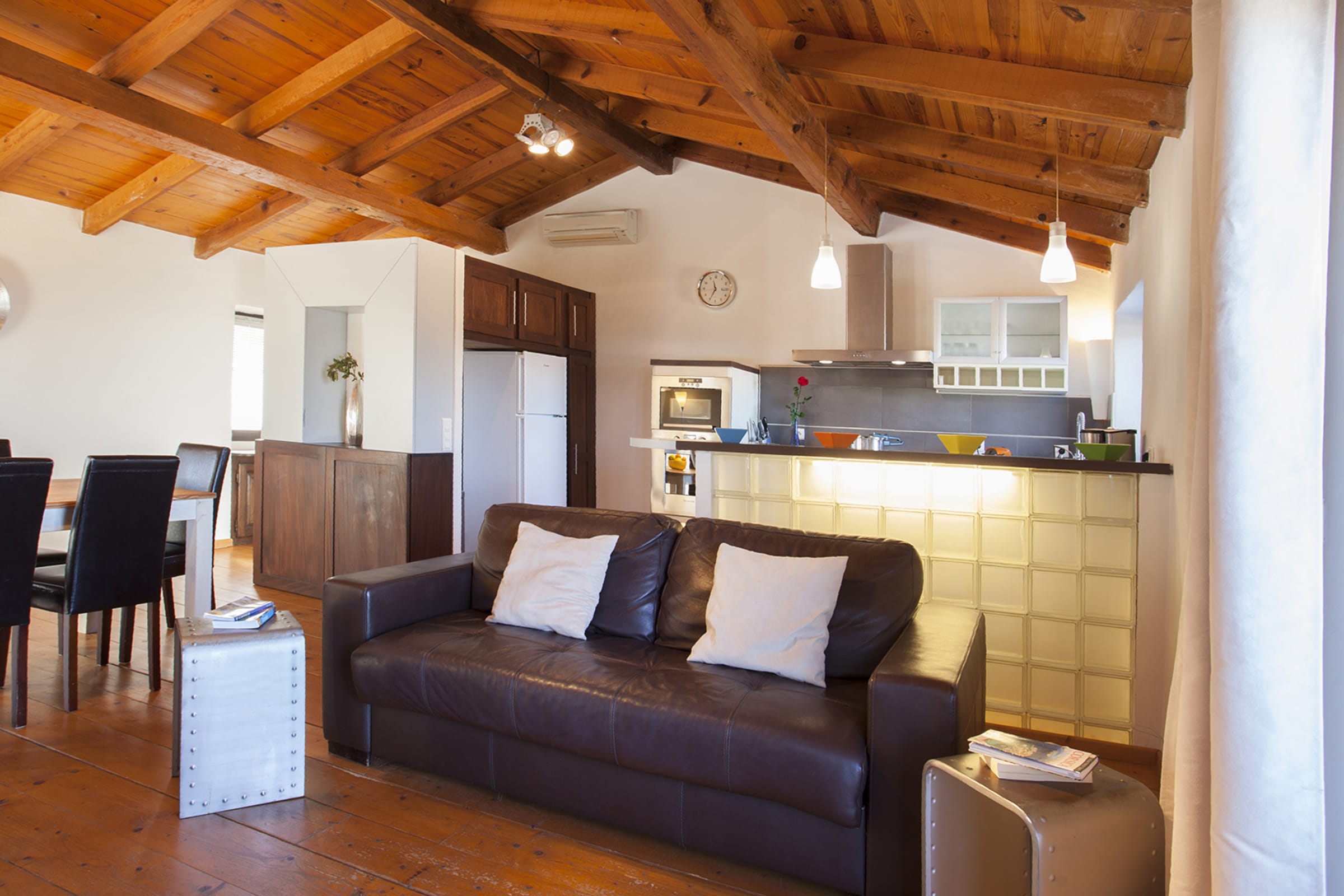 In the living room a sleeping sofa bed very good (rapido lux latex), a large table and 6 chairs, flat screen and DVD player.