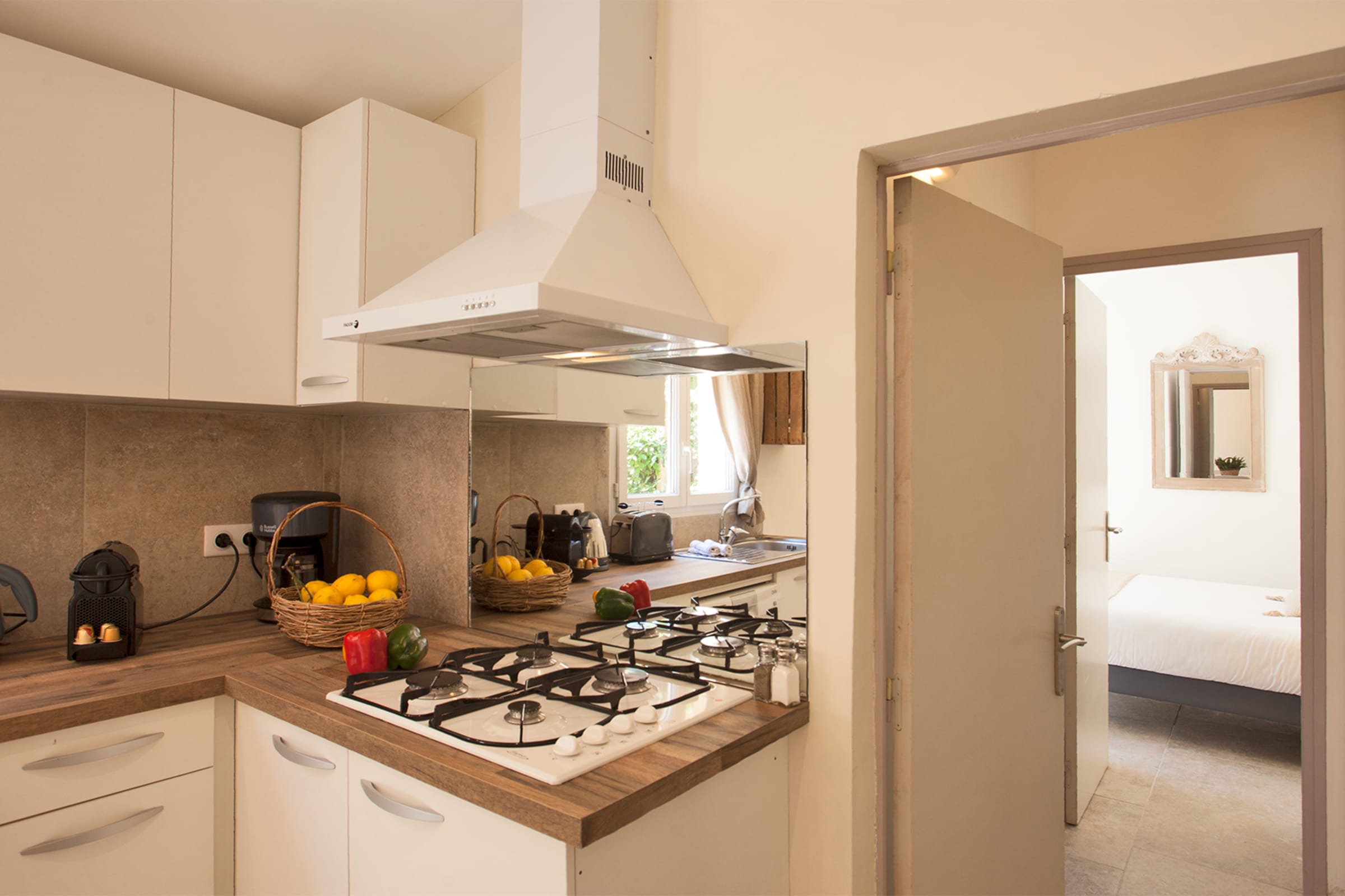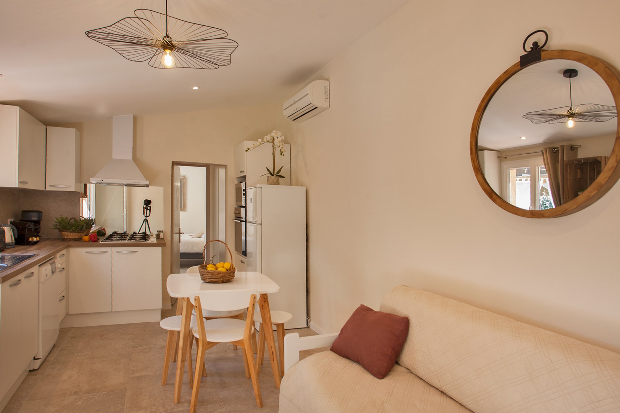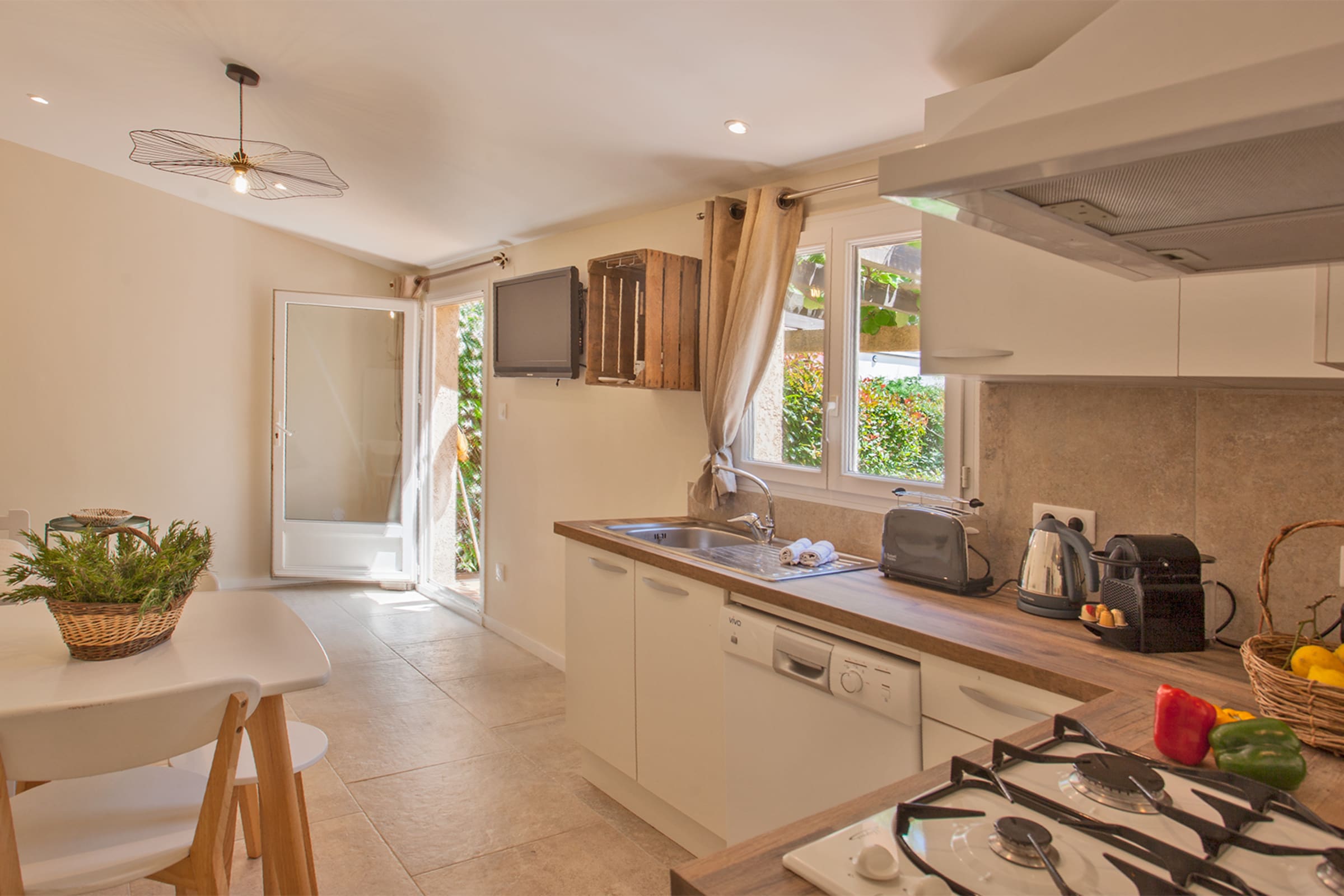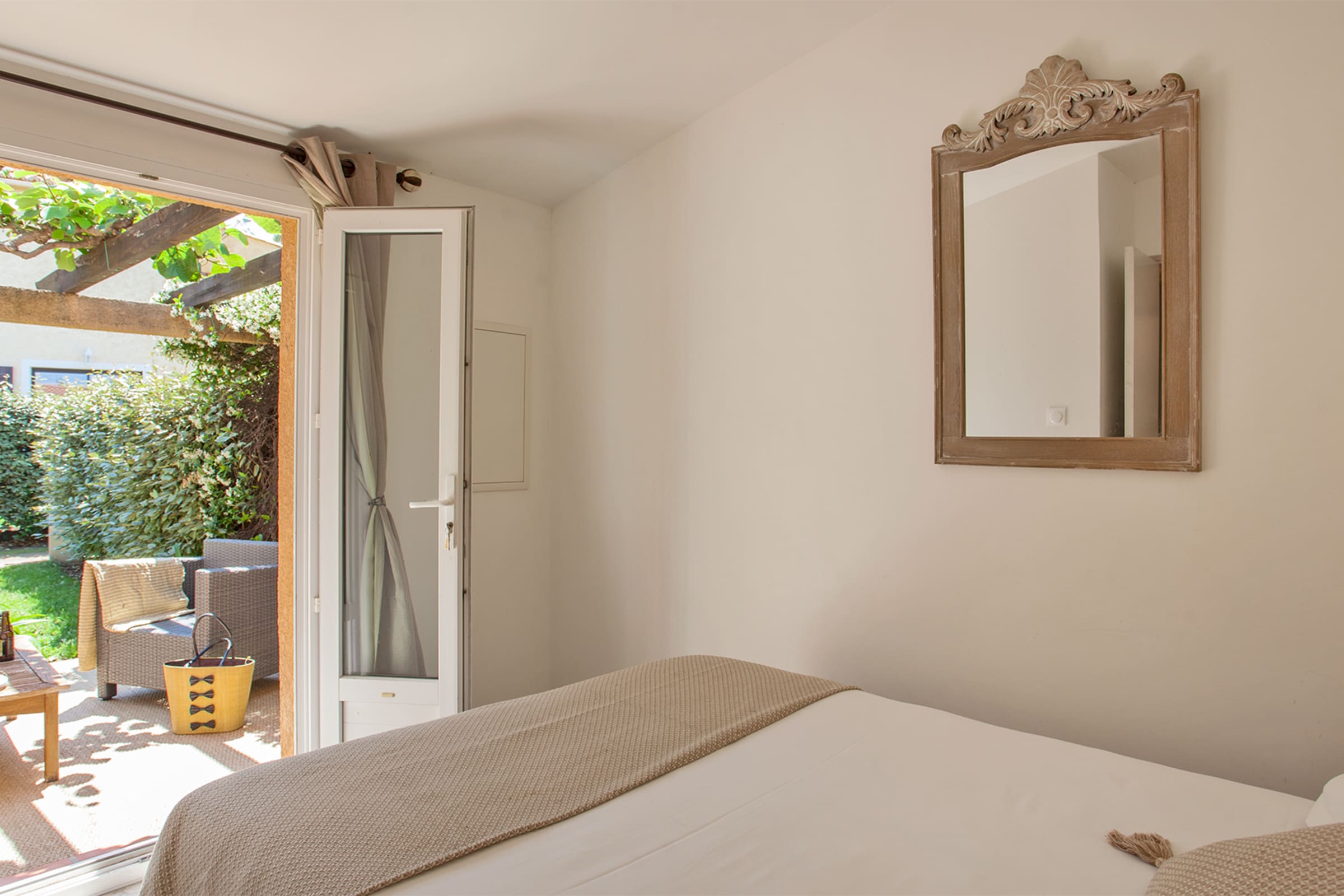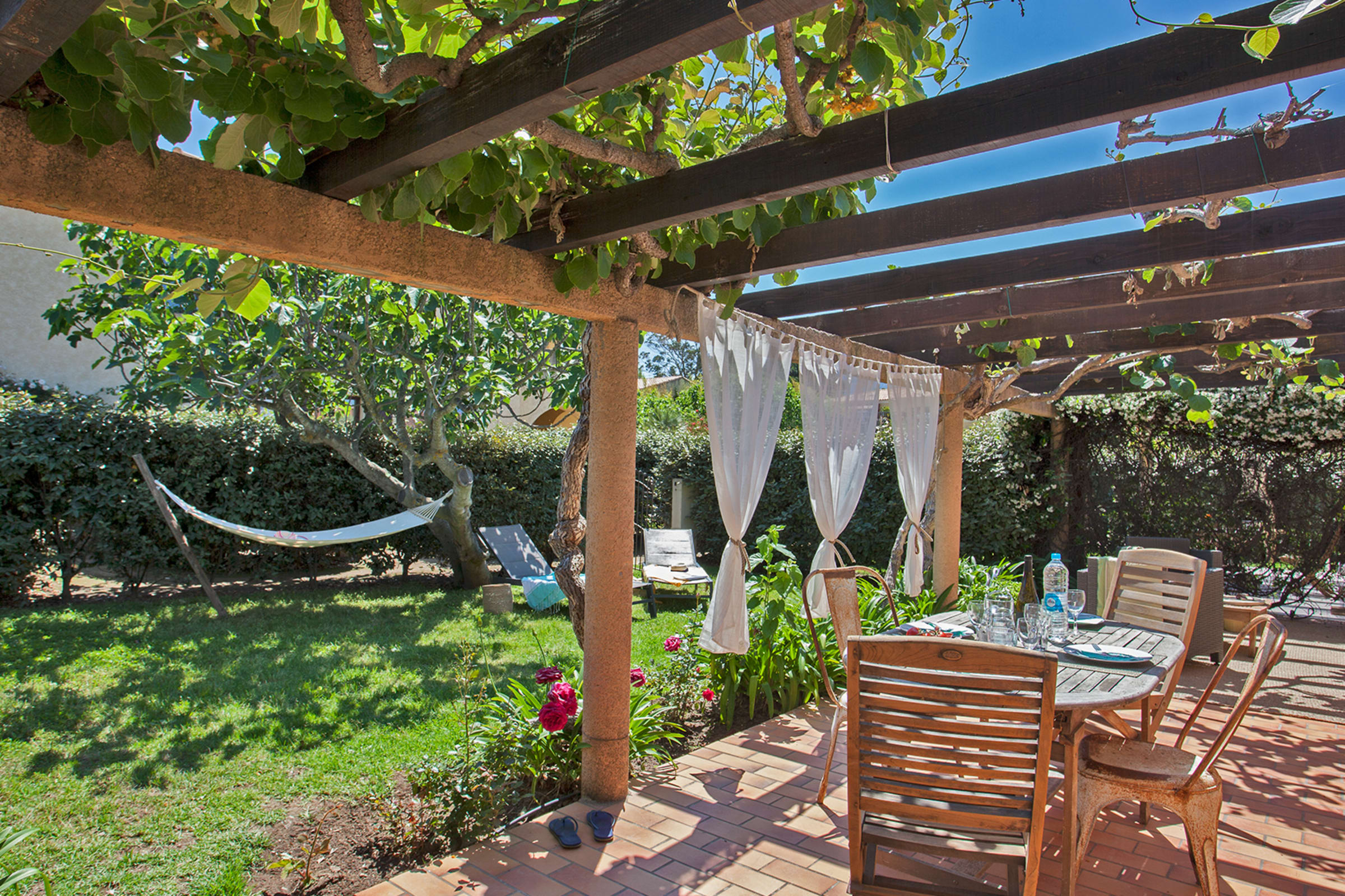 The Minivilla is very agréagle: facing south, in a secluded and quiet corner of the residence with a beautiful terrace protected by the kiwi pergola. The well-kept garden with lawn, flowers and barbecue, deckchair in the shade of a large fig tree is perfect for relaxing in the return visits.