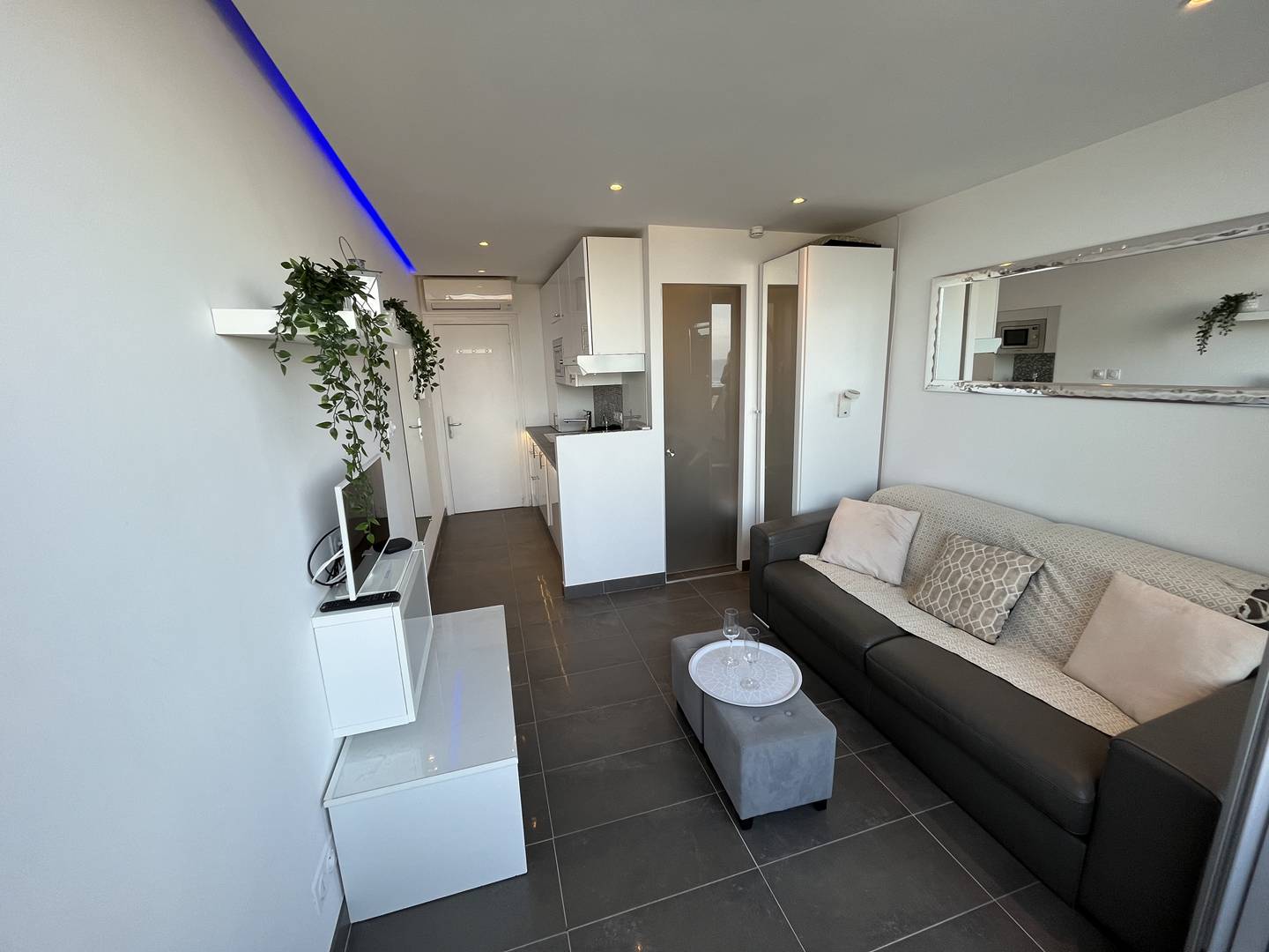 Cap d'Agde "naturist" (34) - Héliopolis district - Héliopolis Residence Studio apartment - approximately 15 m² - up to 2 people the most popular residence in the village due to its exceptional location on the edge of the beach. This vacation rental, located on the 4th floor is completely renovated. It includes a living room with a sofa bed, an equipped kitchen, bathroom with shower and WC. The "Pluses" of this naturist rental: Apartment close to the beach, terrace with exceptional sea view, private parking.