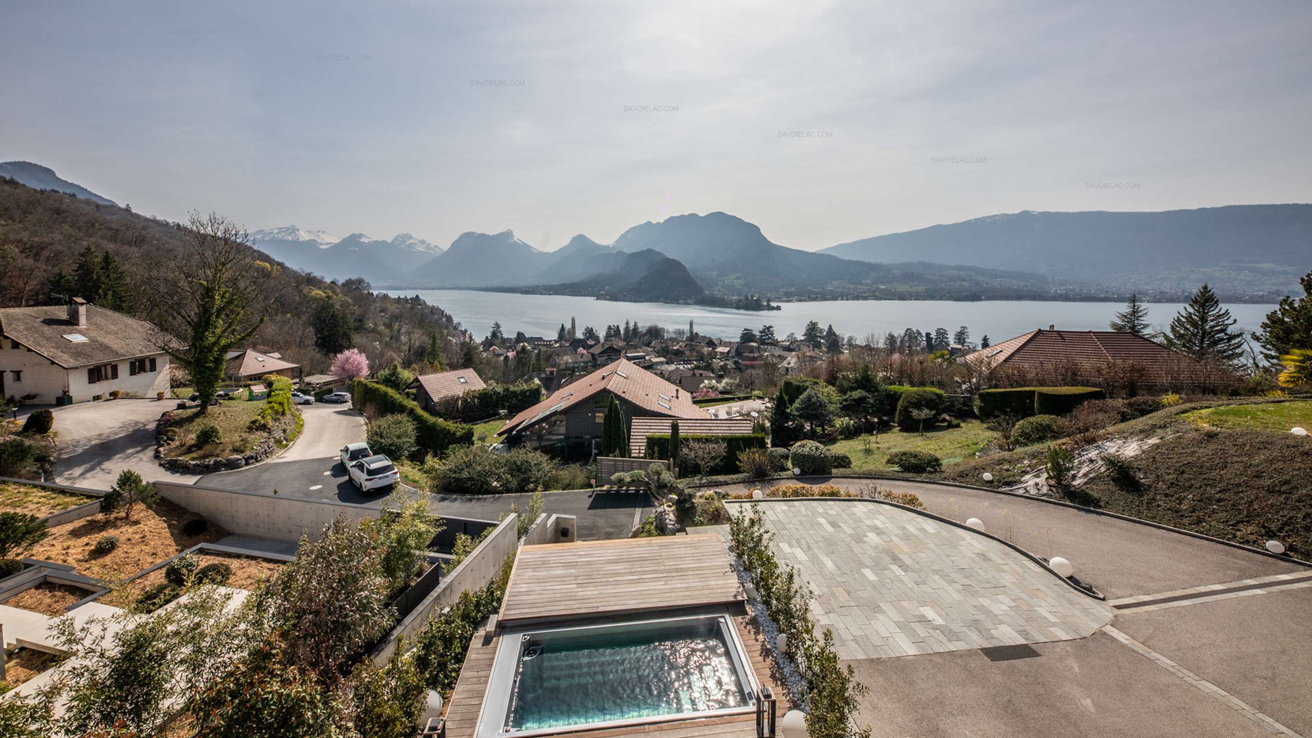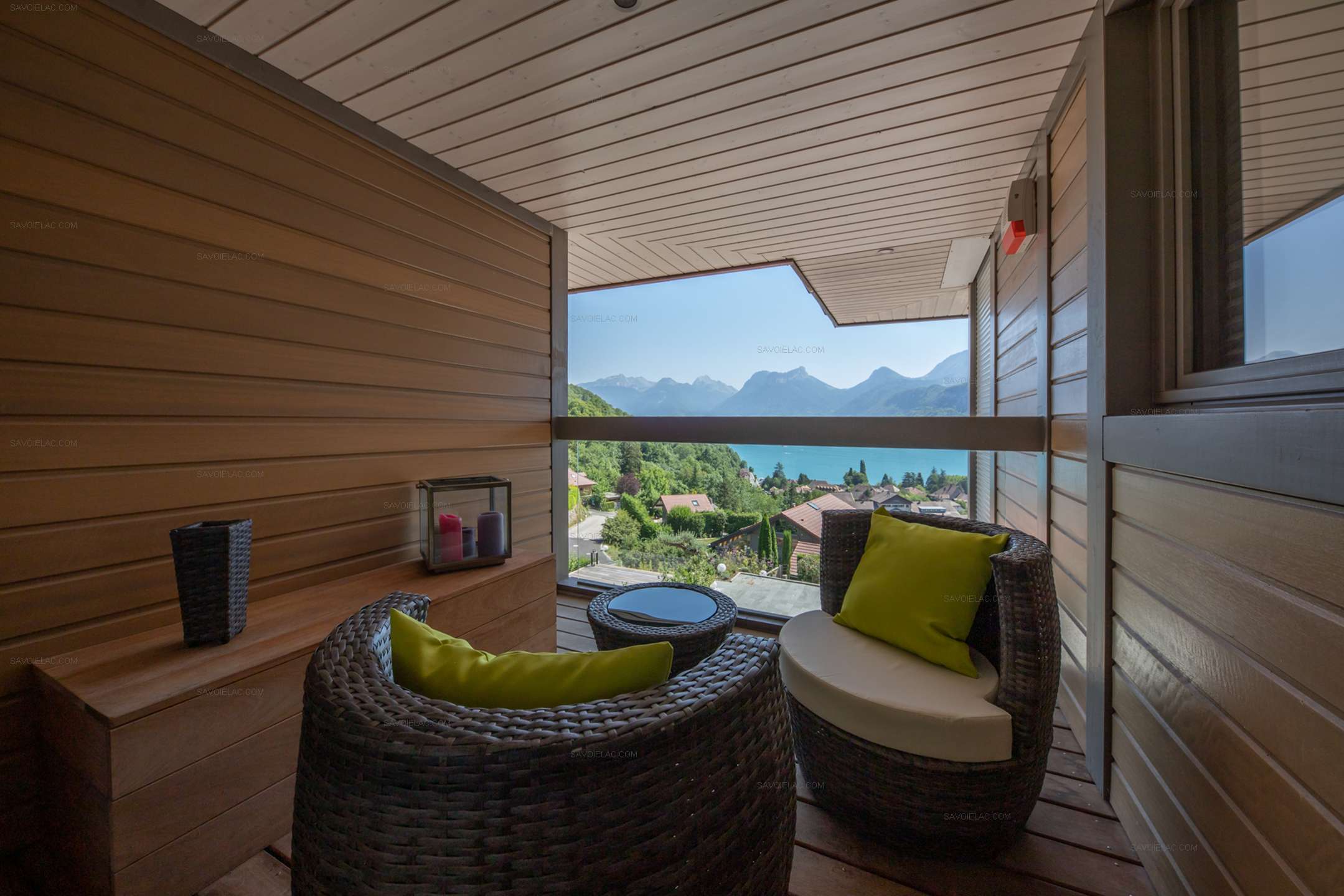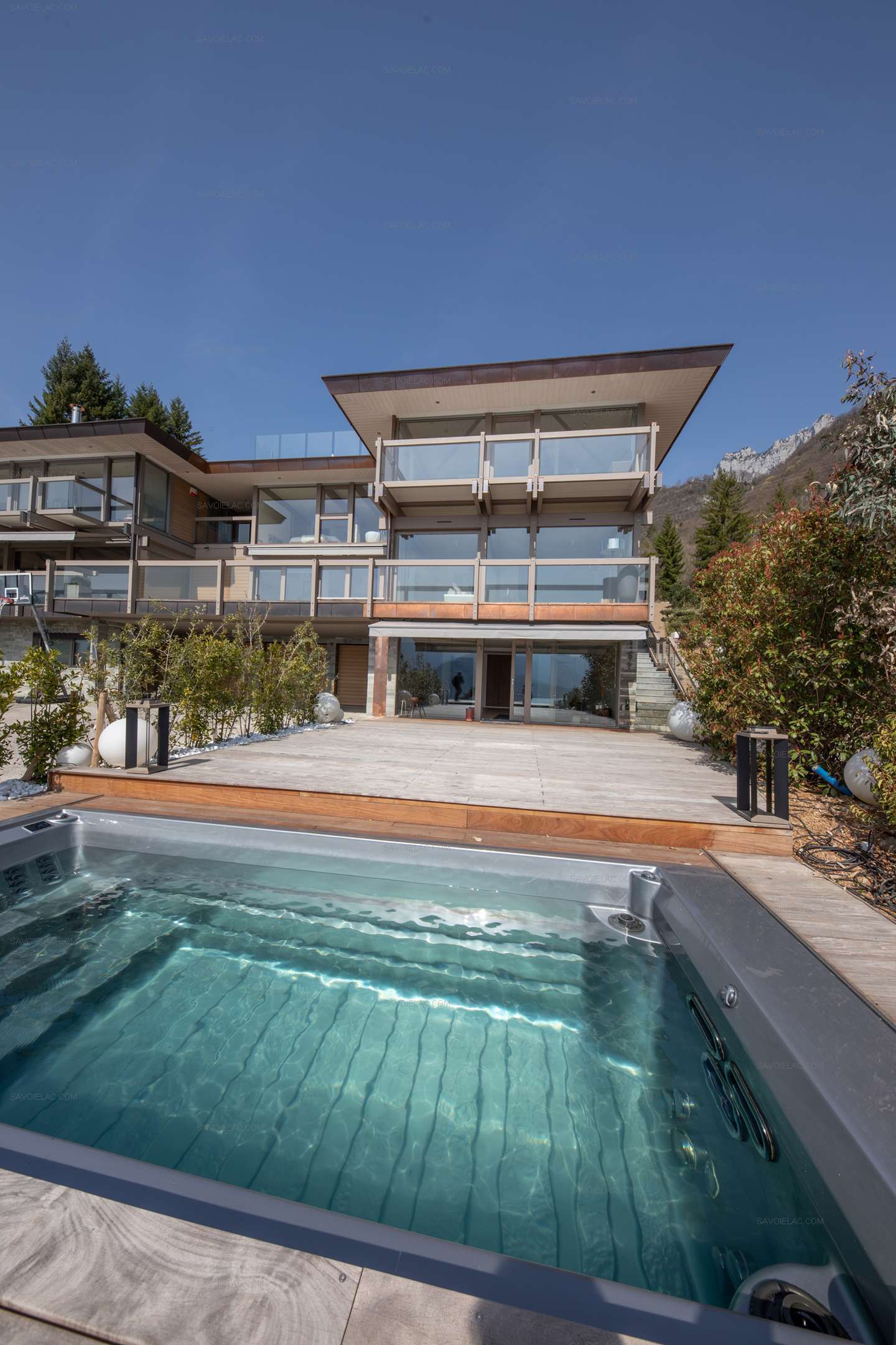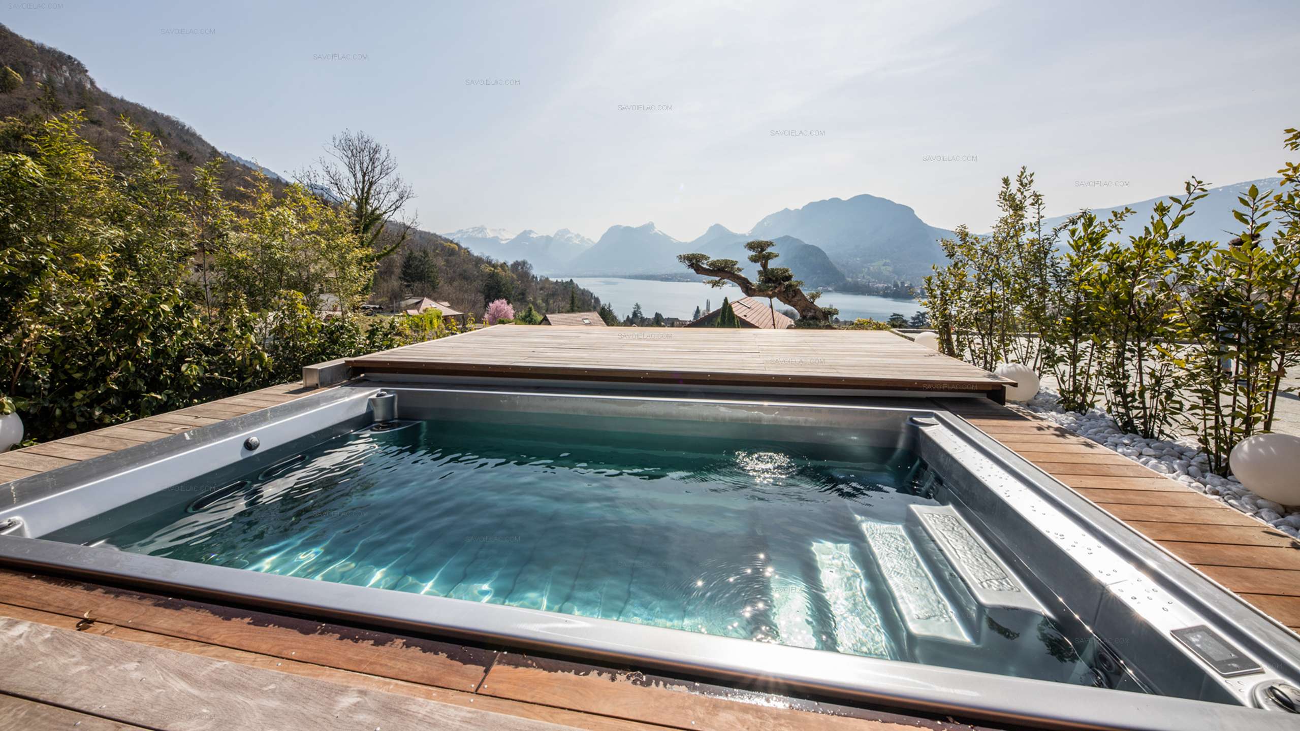 Relax on its large panoramic terrace offering you a view of the lake and mountains as well as its heated swimming pool with spa jets (temperature fluctuating depending on the outside temperature).