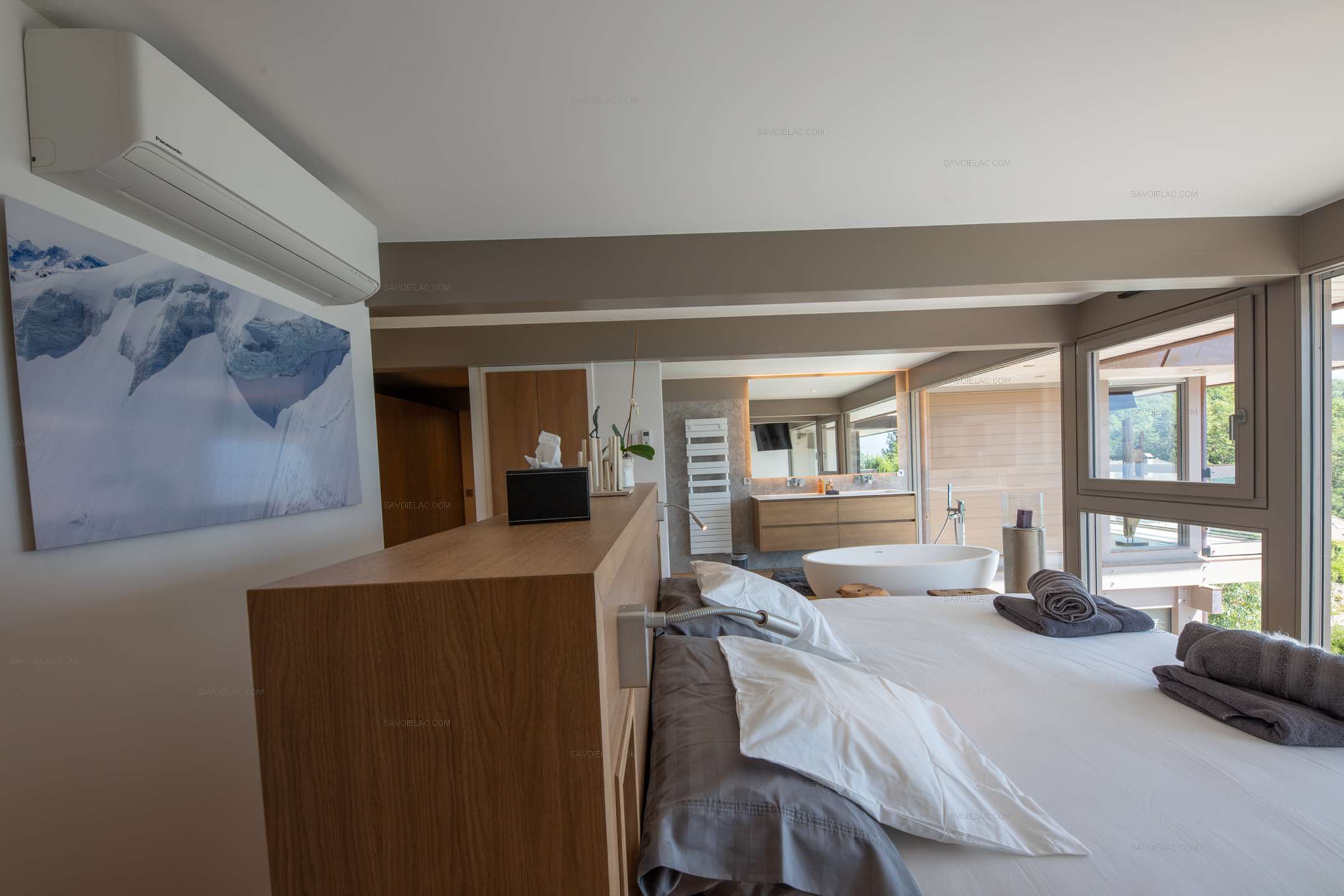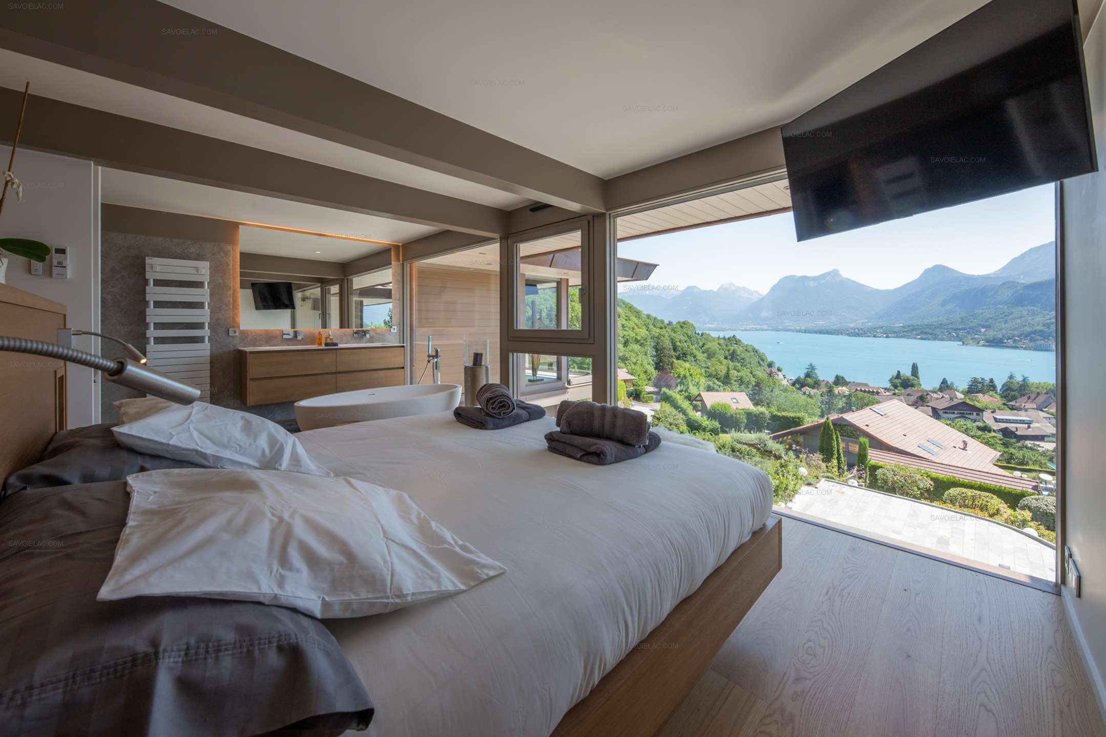 You can prepare delicious meals in the open fitted kitchen, opening onto a large living room and its lake view. or reach the restaurant of talloires village at walking distance.