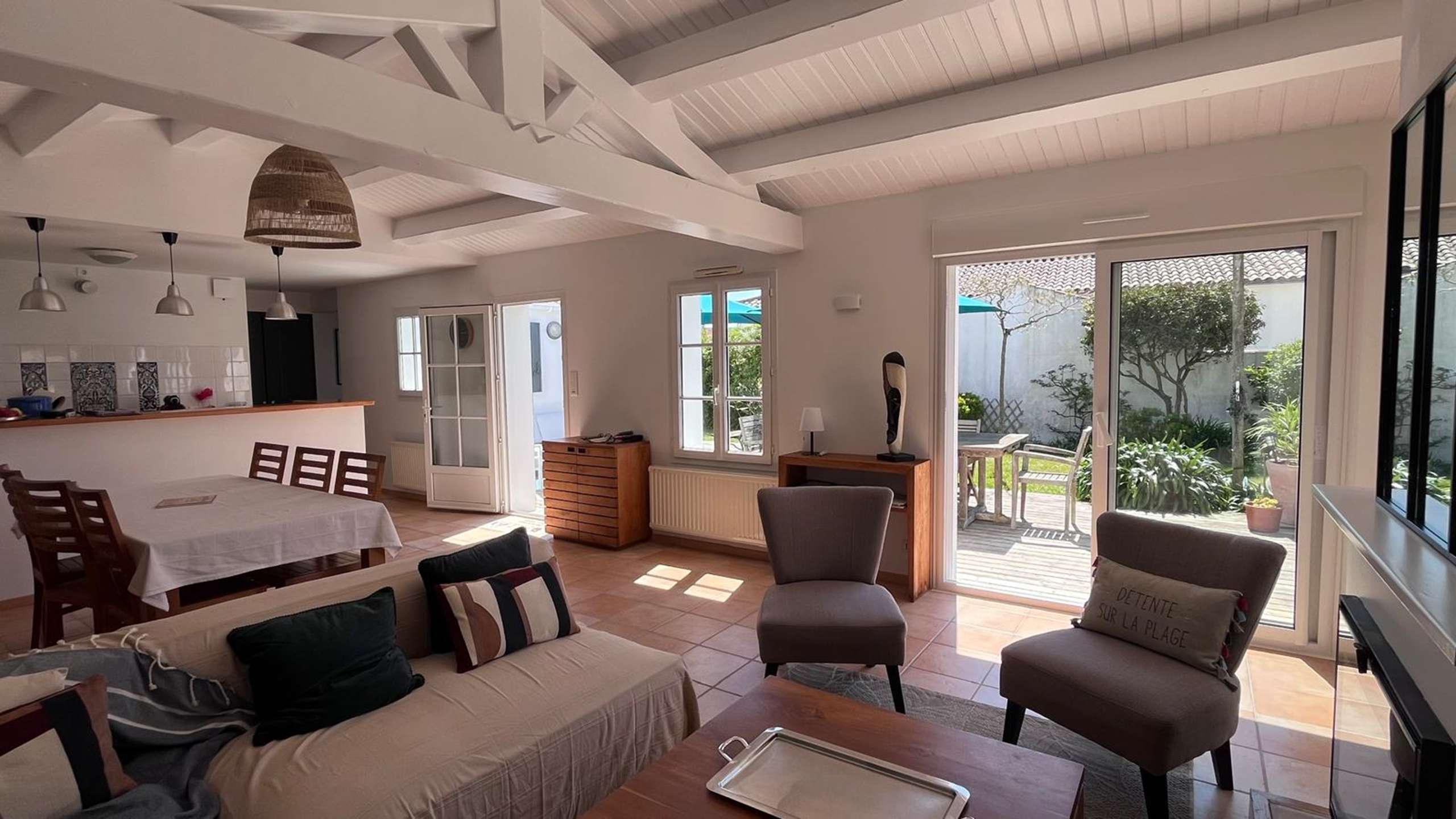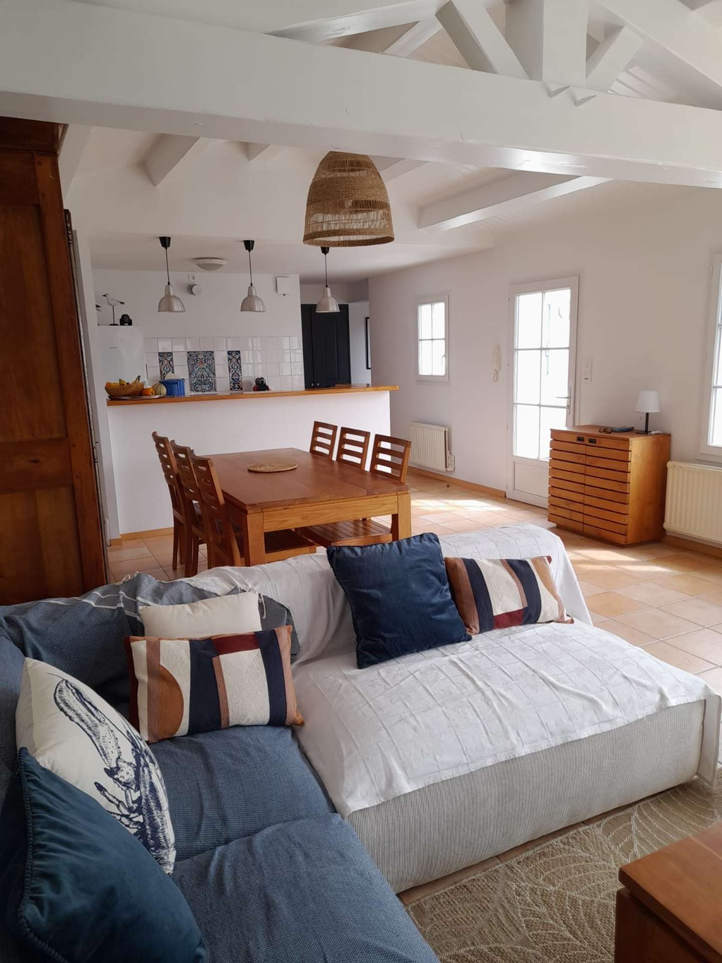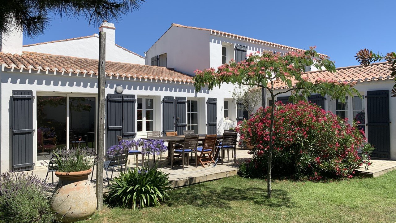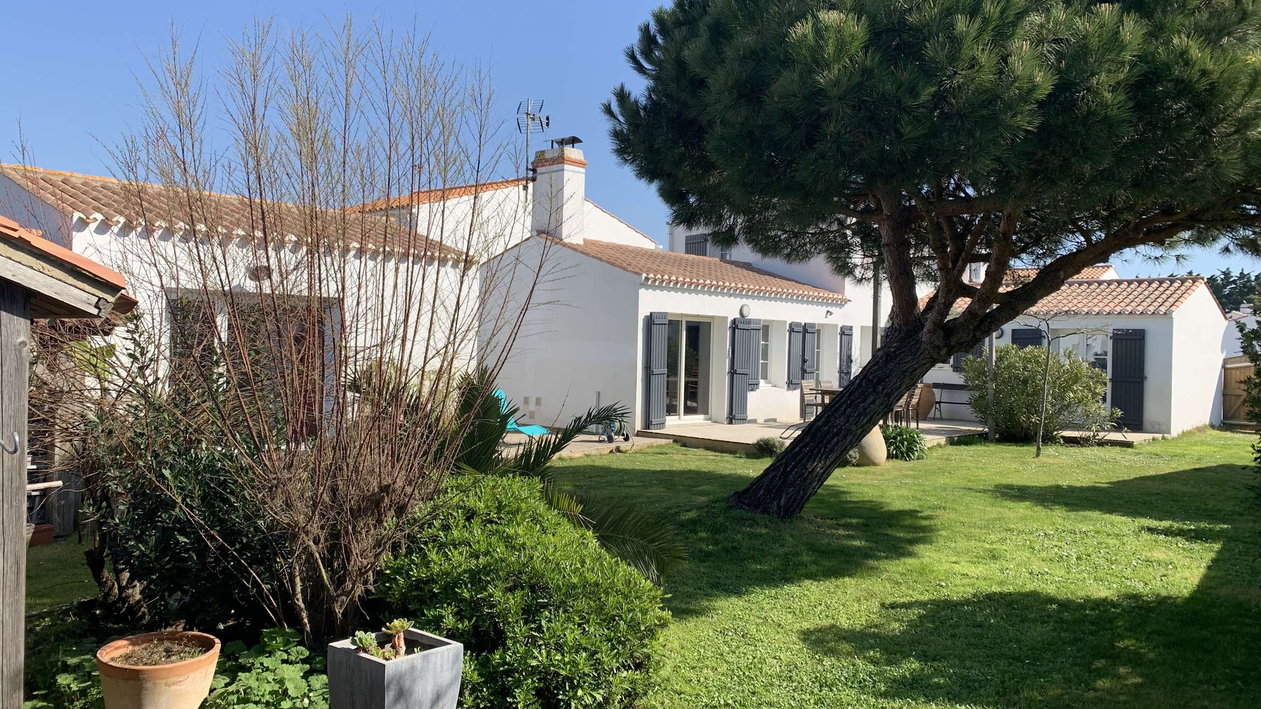 La Guérinière (85) - Neighborhood near the center of La Guérinière 6-room house - approx. 150 m² - for up to 10 people Located 400 m from the beach and 400 m from the village of La Guérinière, this pretty holiday home consists of ground floor, a living room, a fitted kitchen area, a pantry (fridge, freezer, MW, cupboard), a bedroom with a 140 double bed with a bathroom with bath and shower, a separate toilet and a bedroom with two single bunk beds. The floor includes three bedrooms with 140 beds each and a bathroom with toilet. The advantages of this rental by the sea: You benefit from a beautiful enclosed garden with trees with wooden terraces with garden furniture and shade sail. Parking in front of the gate or on the street. Cleaning with disinfection