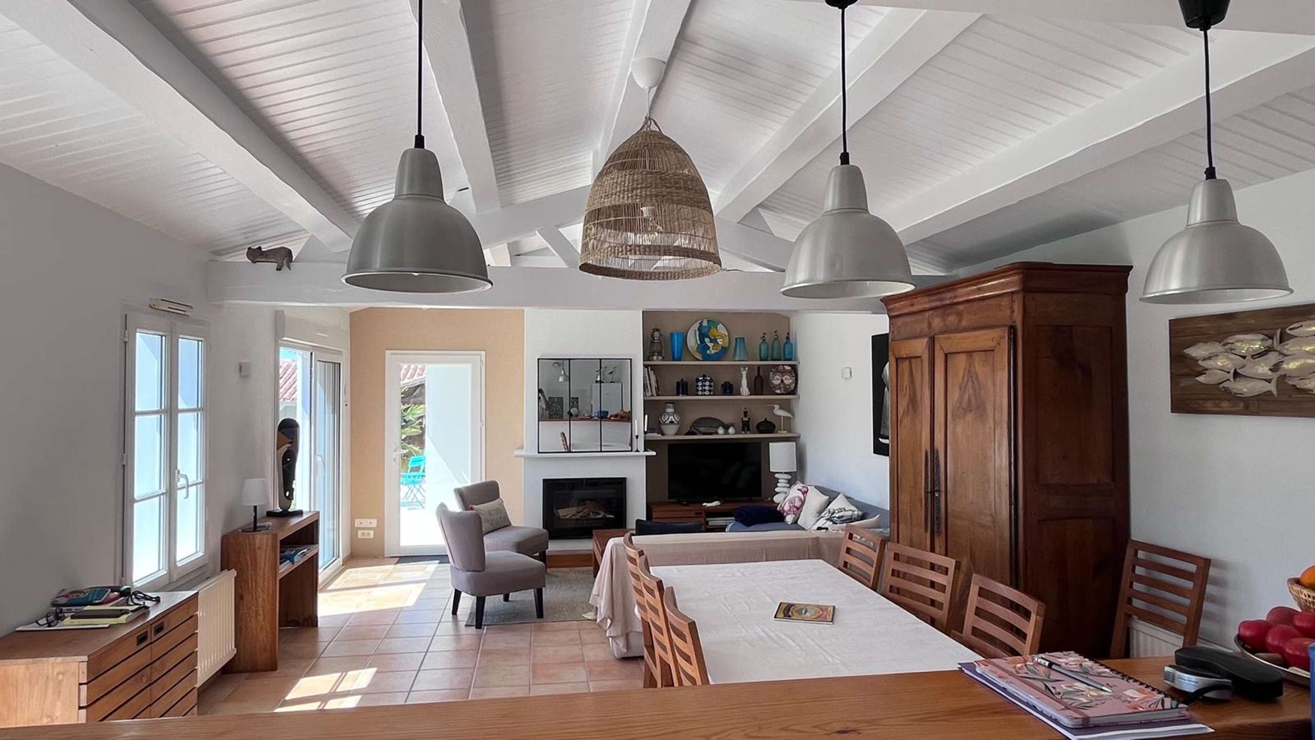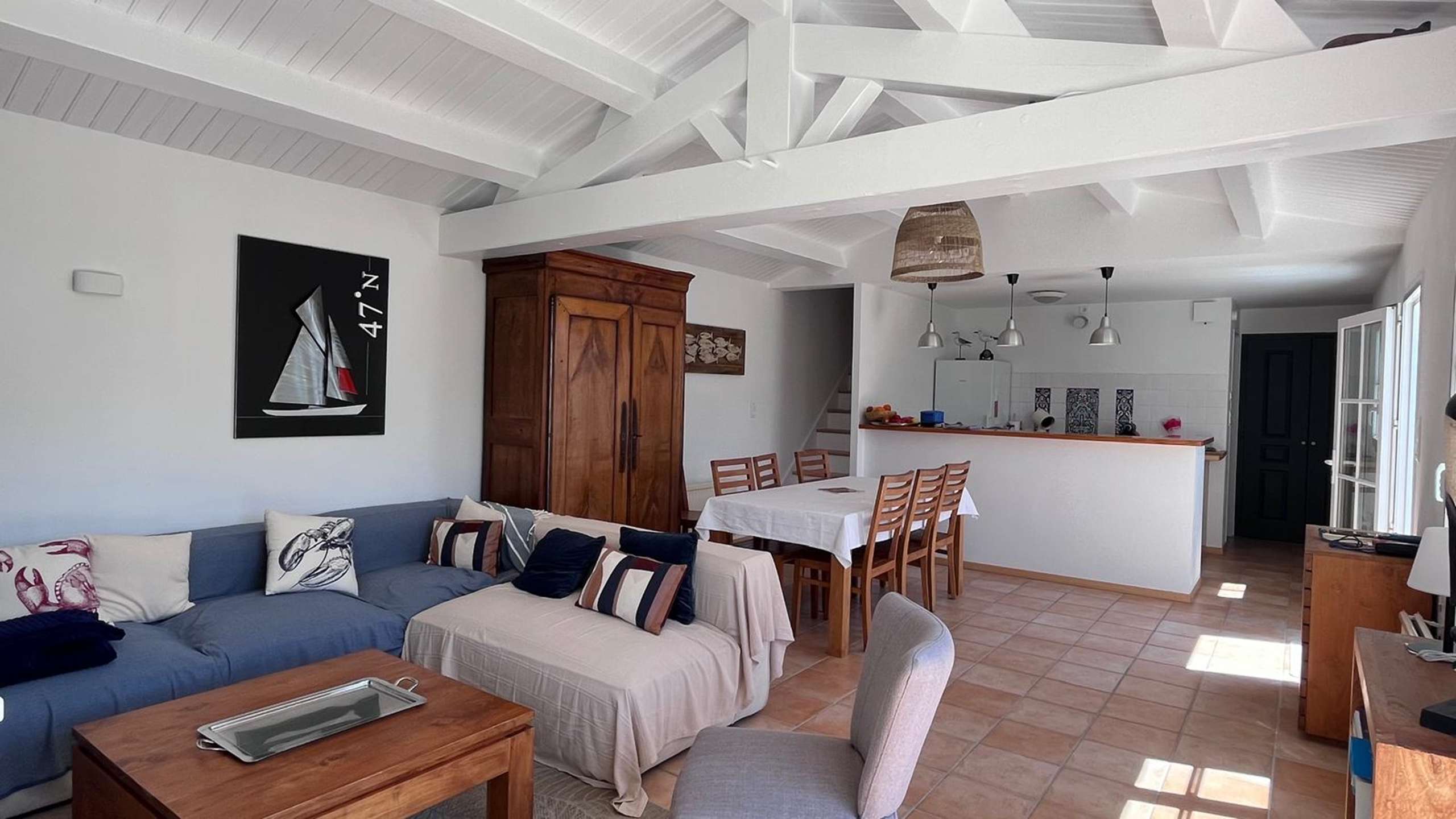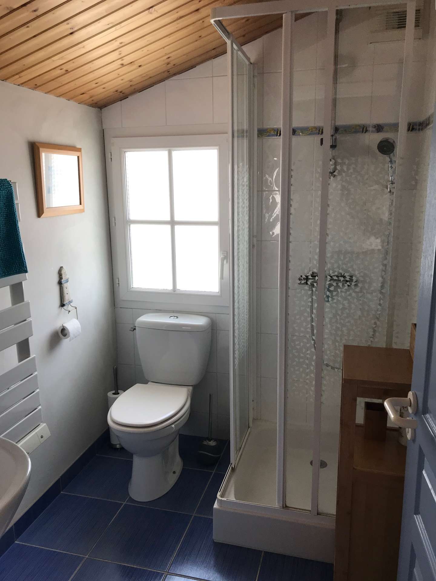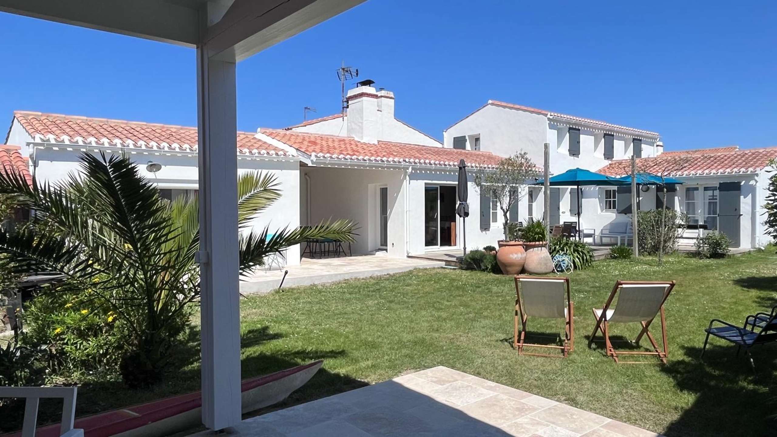 La Guérinière (85) - Neighborhood near the center of La Guérinière 6-room house - approx. 150 m² - for up to 10 people Located 400 m from the beach and 400 m from the village of La Guérinière, this pretty holiday home consists of ground floor, a living room, a fitted kitchen area, a pantry (fridge, freezer, MW, cupboard), a bedroom with a 140 double bed with a bathroom with bath and shower, a separate toilet and a bedroom with two single bunk beds. The floor includes three bedrooms with 140 beds each and a bathroom with toilet. The advantages of this rental by the sea: You benefit from a beautiful enclosed garden with trees with wooden terraces with garden furniture and shade sail. Parking in front of the gate or on the street. Cleaning with disinfection