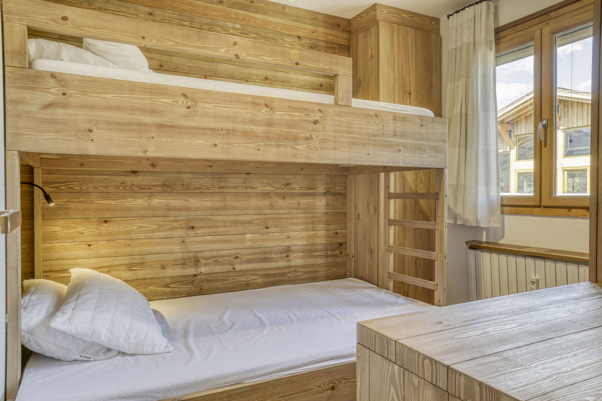 - 1 twin bedroom with bunk beds (the upper bed is not suitable for children under 6), the lower bed is 120cm and the upper one is 90cm,