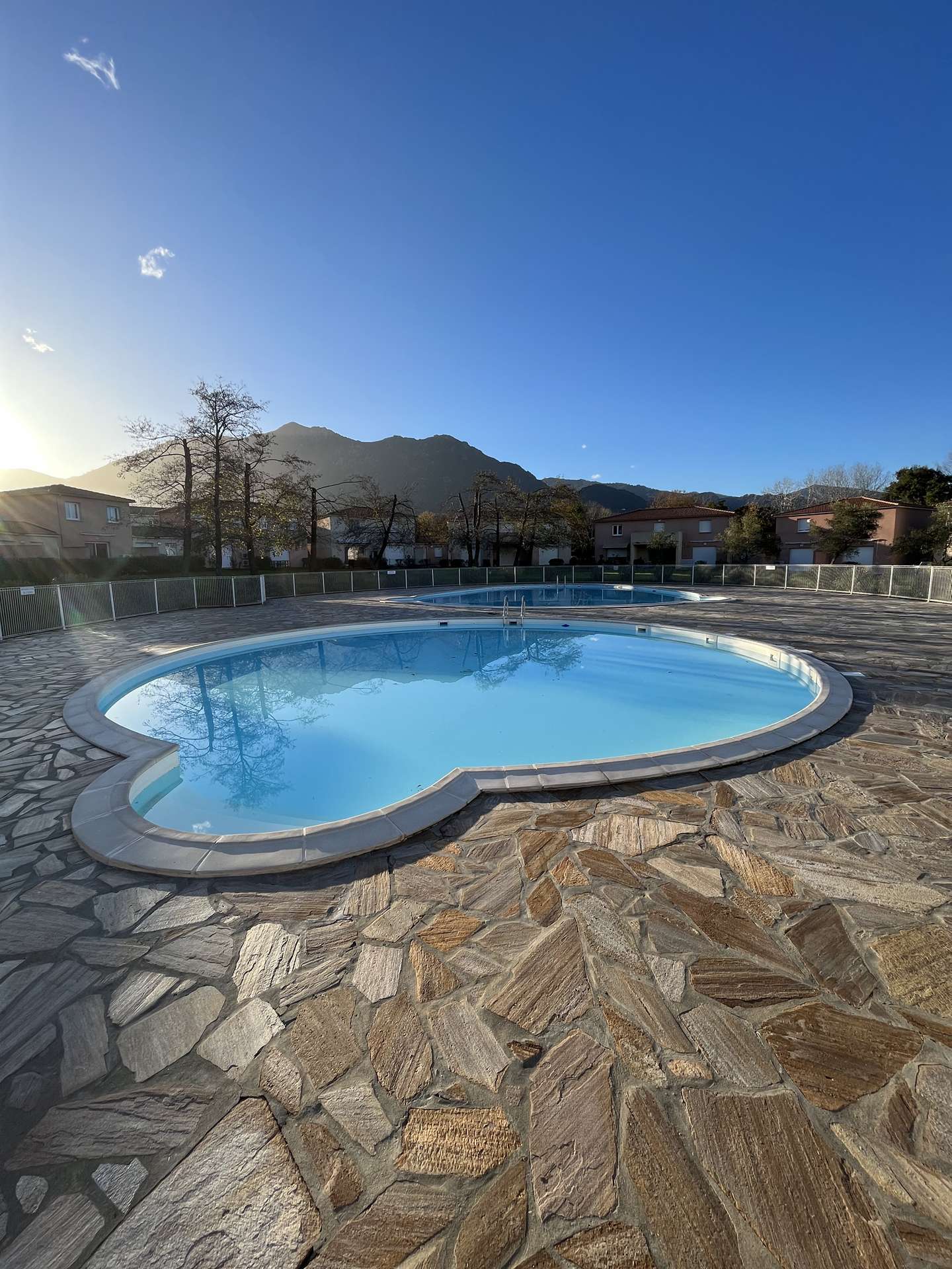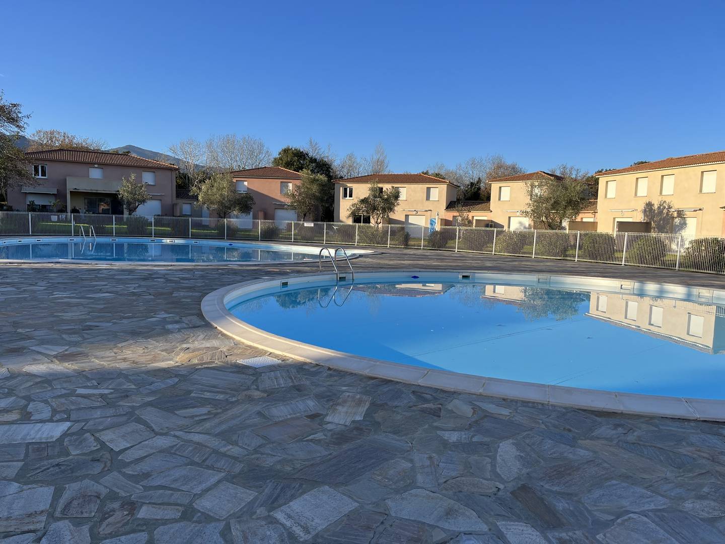 Duplex apartment n°29 - approx. 65m² - up to 4 people Pretty mini air-conditioned villa with pool and garden view, in a holiday residence in SANTA MARIA POGGIO. 500m from the beach, the residence has two swimming pools and a bowling green. The mini villa 'VILLA 29' in Santa-Maria-Poggio is ideally located to enjoy the immense fine sandy beaches or the mountains (hiking trails nearby) and to visit Corsica. The 'Villa 29' is comfortable, bright and well ventilated, you will appreciate the 'crossing' of the villa (windows on each side) allowing you not to suffer from the heat in summer and to take full advantage of the natural light without having to turn on the lights. On two levels, the mini villa of approximately 65m² is composed of a living dining room with television, a kitchen open to the living room, a separate toilet and a terrace; upstairs two bedrooms with fitted wardrobes, 80 cm beds and a bathroom with wc. Closed residence with code gate. Private and free parking. Cleaning with disinfection, bed linen and towels are included in the price
