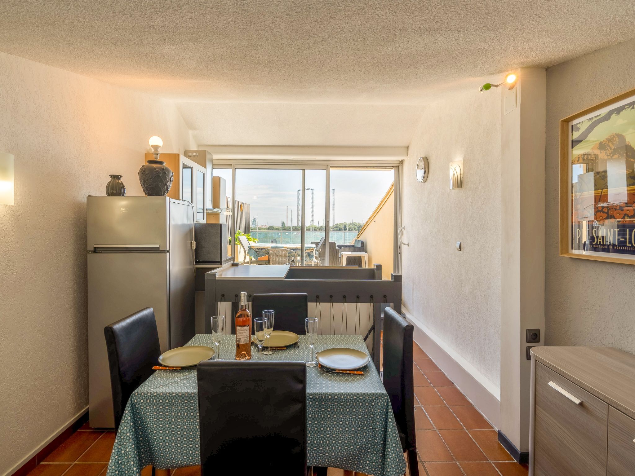 "Les Héliades", 3-room apartment 42 m2 on 2 levels on 3rd floor. 1 room 12 m2 with 1 french bed (140 cm, length 190 cm). Sleeping alcove 5 m2 with 1 double sofabed (140 cm, length 190 cm). Shower, sep. WC. Heating, electric heating. Upper floor: (steep stair) living/dining room 12 m2 with TV (flat screen). Kitchenette (2 induction hot plates, toaster, kettle, microwave, electric coffee machine). Exit to the terrace, south facing position and east facing position. Large terrace 13 m2, south facing position and, east facing position. Terrace furniture. Very beautiful view of the sea and the port. Facilities: Internet (WiFi, extra). Reserved parking space n 45. Please note: maximum 1 pet/ dog allowed. Smoke alarm.