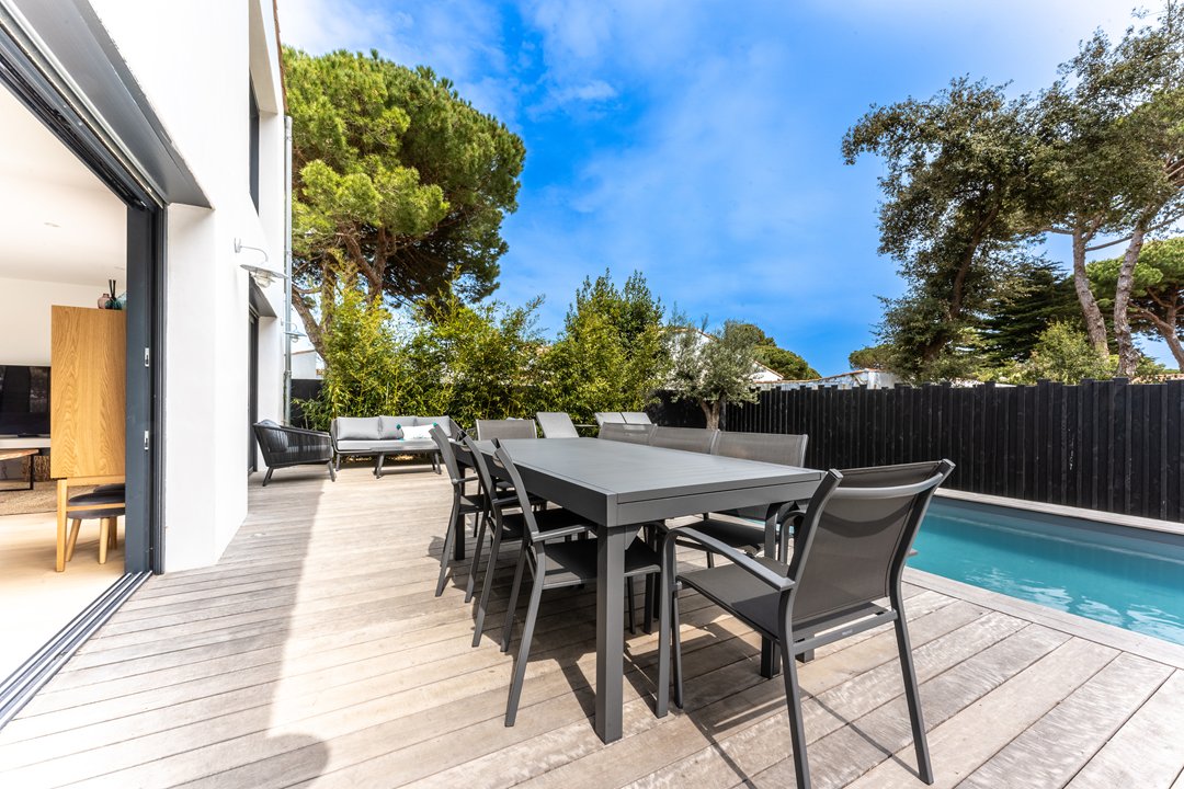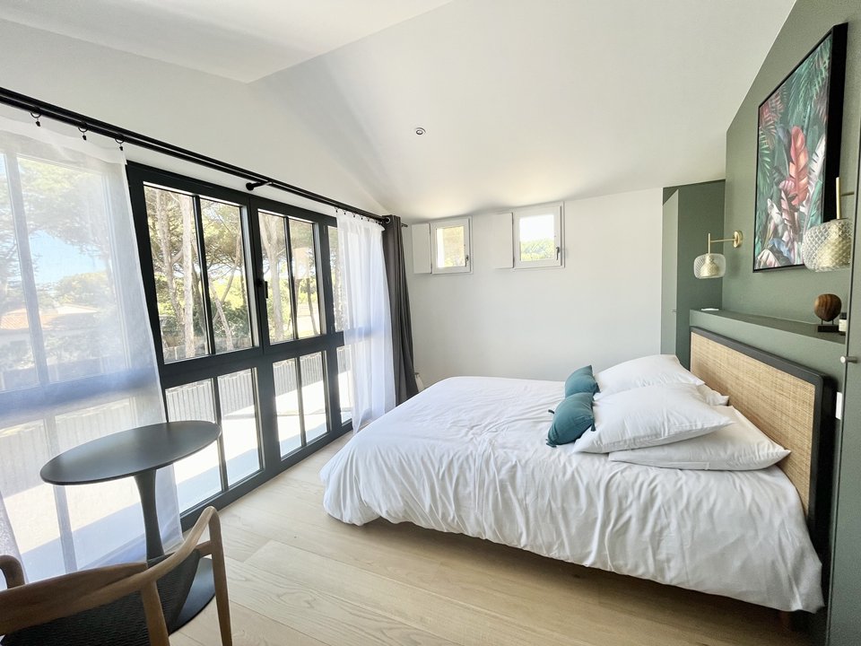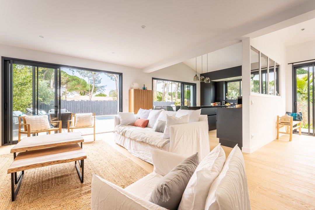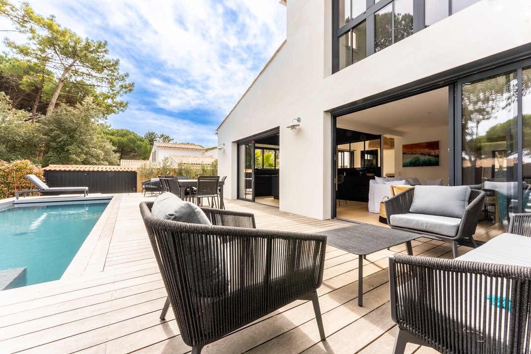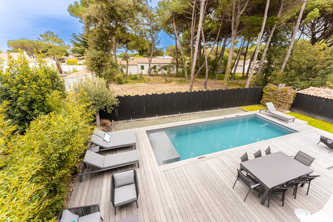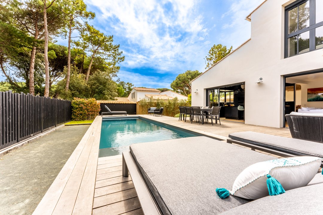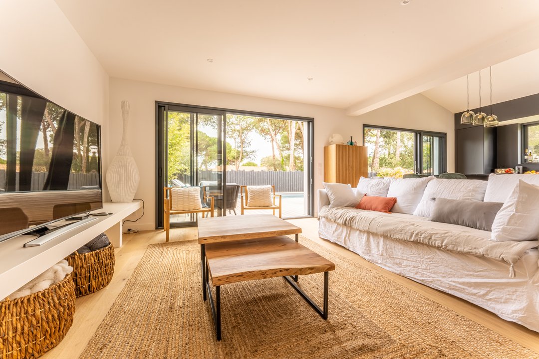 Built in 2021, this 180m² villa is quietly located on the edge of the Henry IV wood, 280m from the beach.