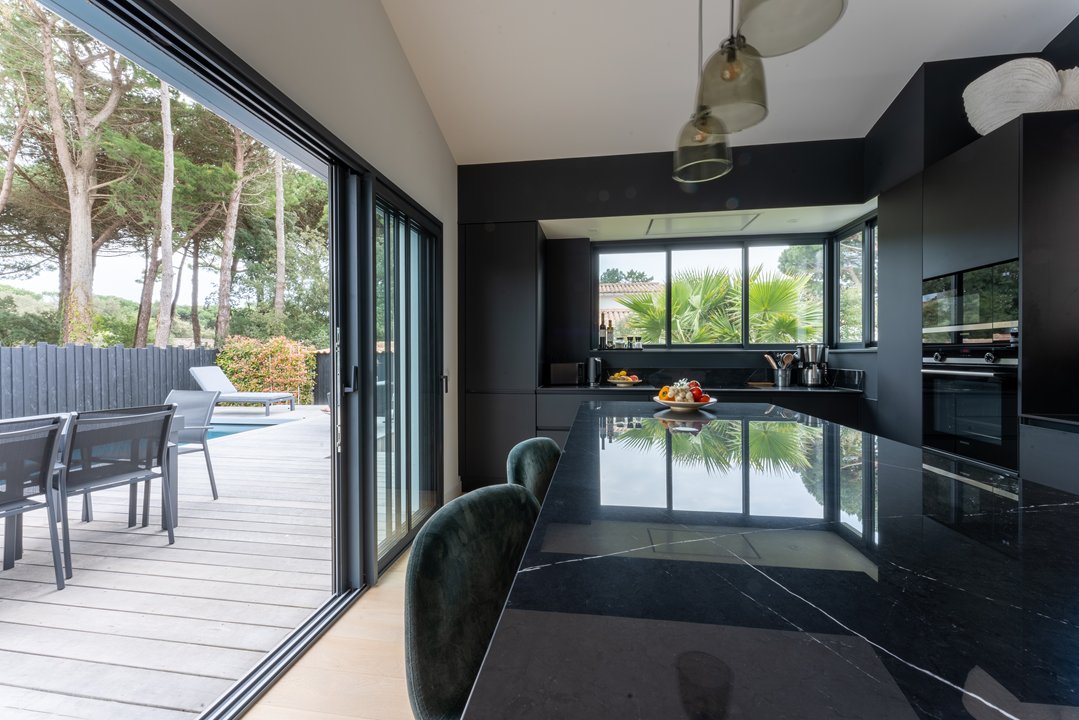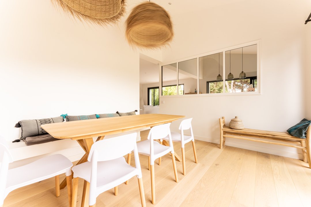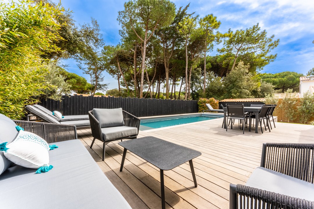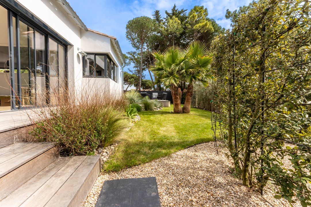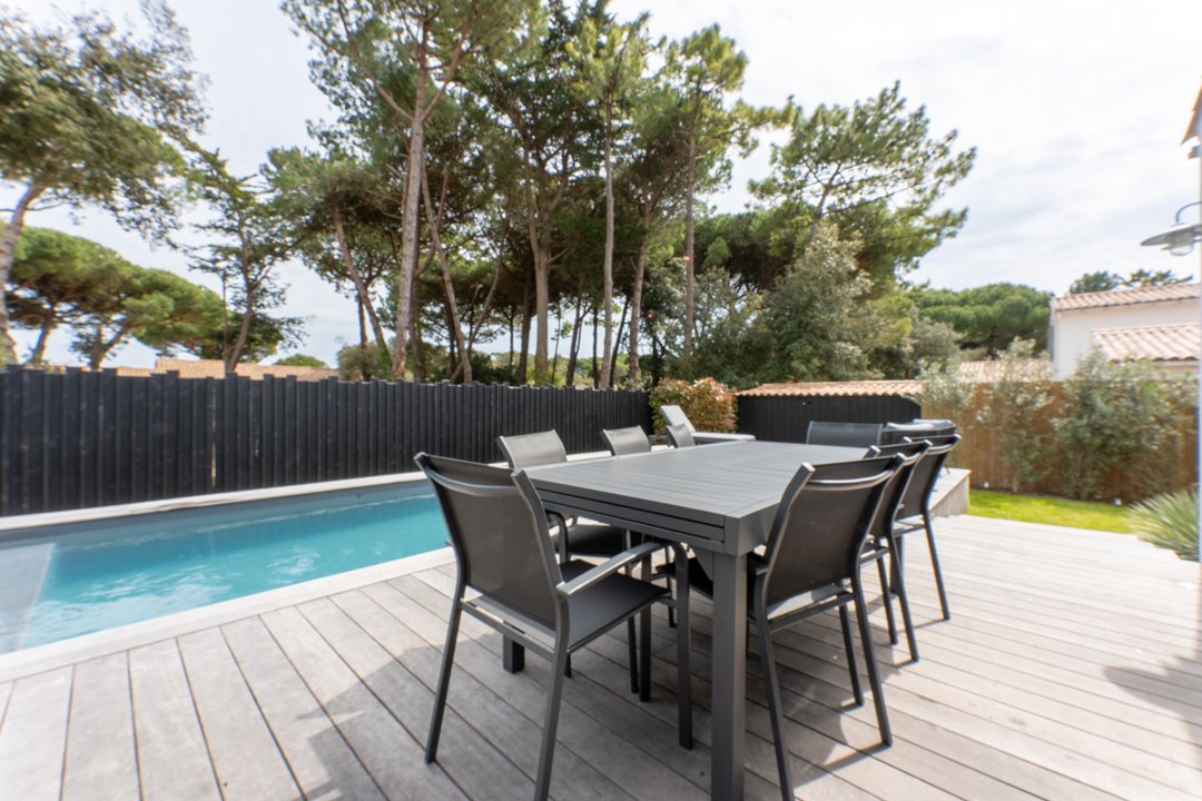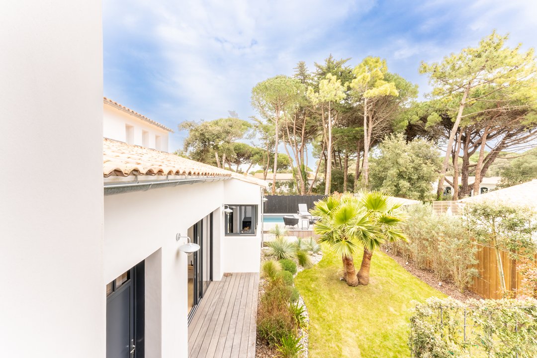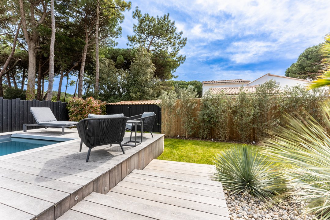 Built in 2021, this 180m² villa is quietly located on the edge of the Henry IV wood, 280m from the beach.