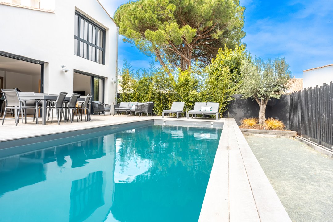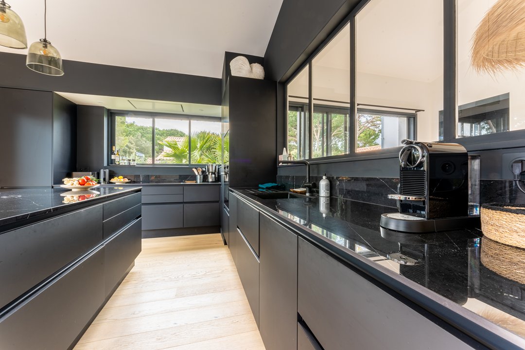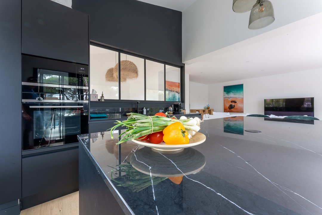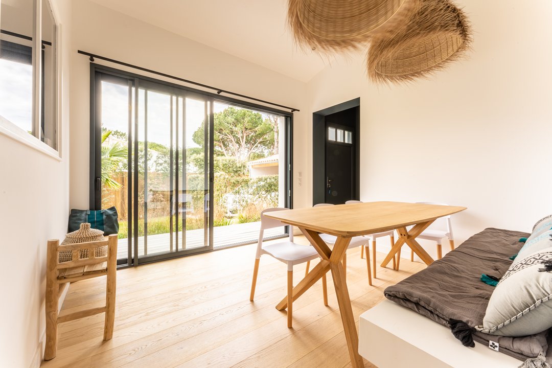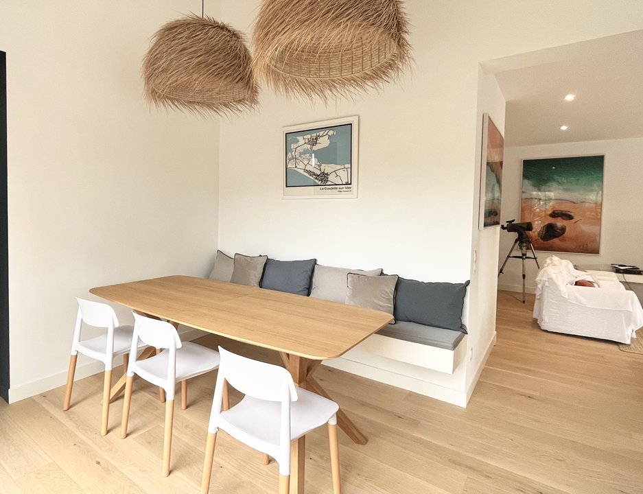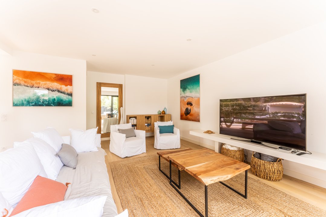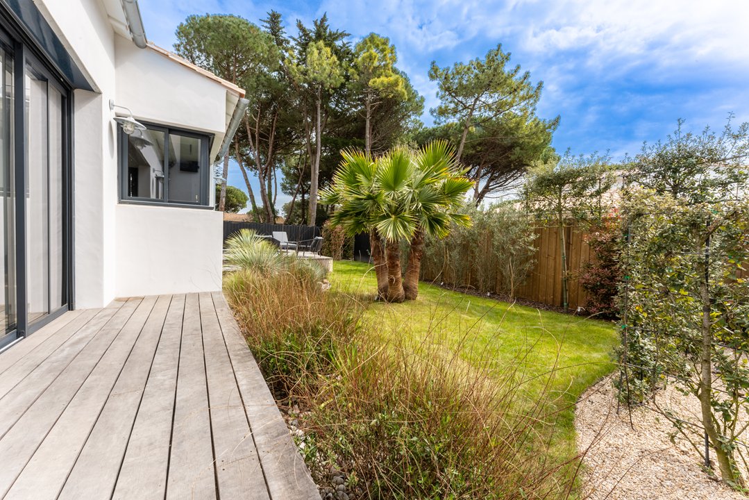 Built in 2021, this 180m² villa is quietly located on the edge of the Henry IV wood, 280m from the beach.