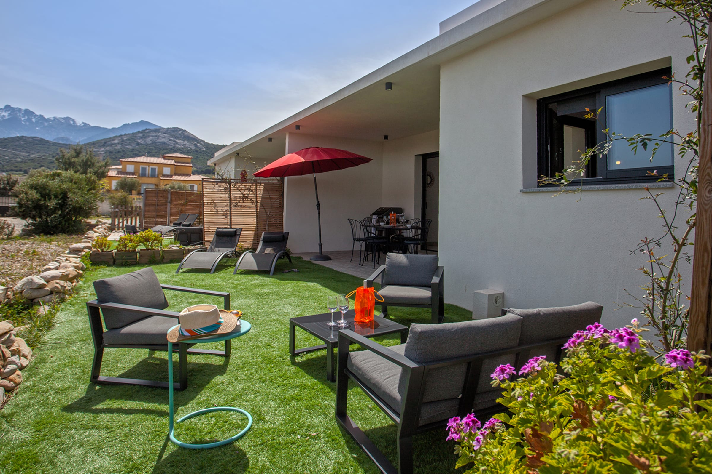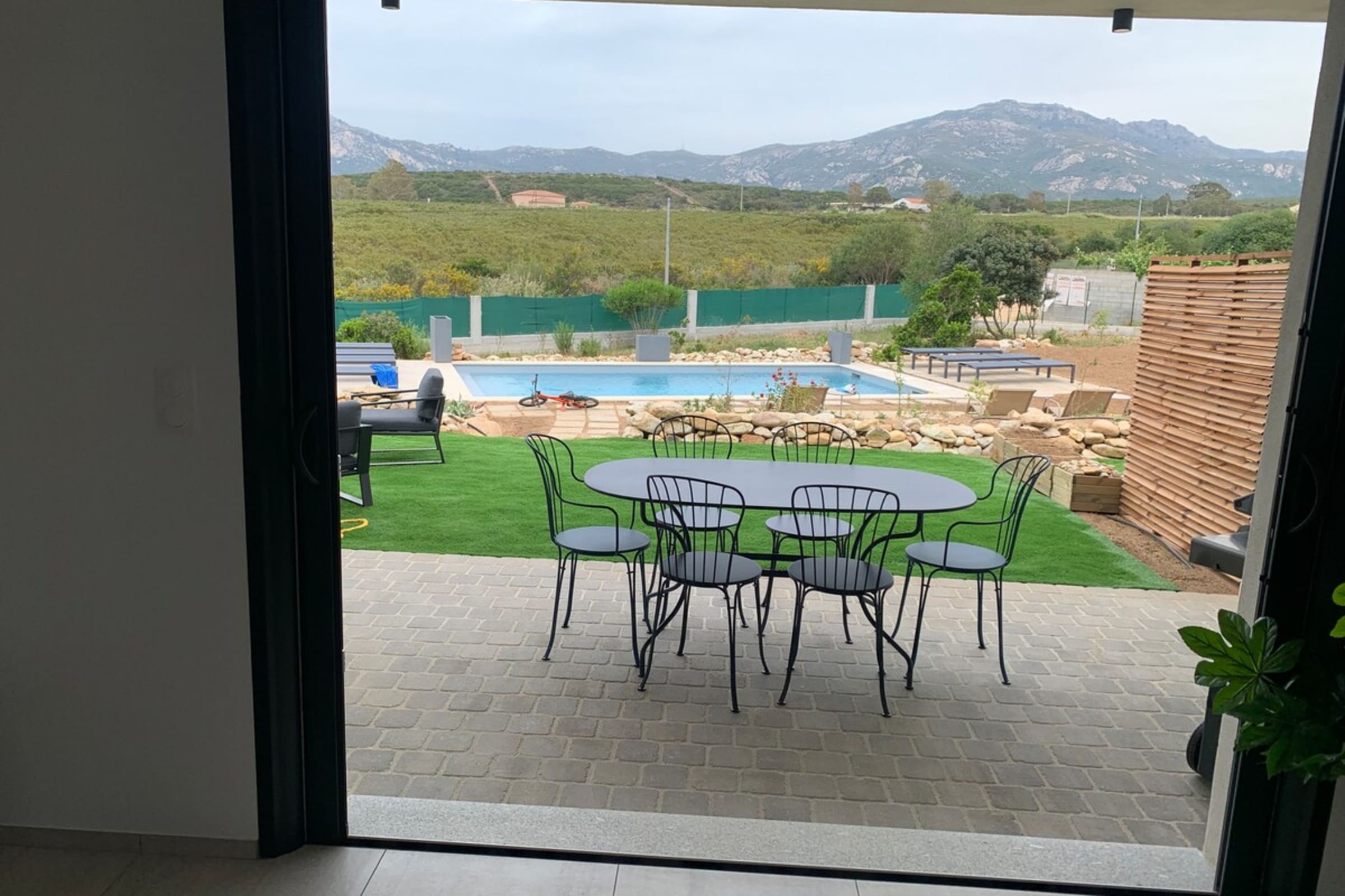 The construction is new, and meets RAppartement012 standards. It is located in a little-urbanized area, near a natural area (corsican maquis).