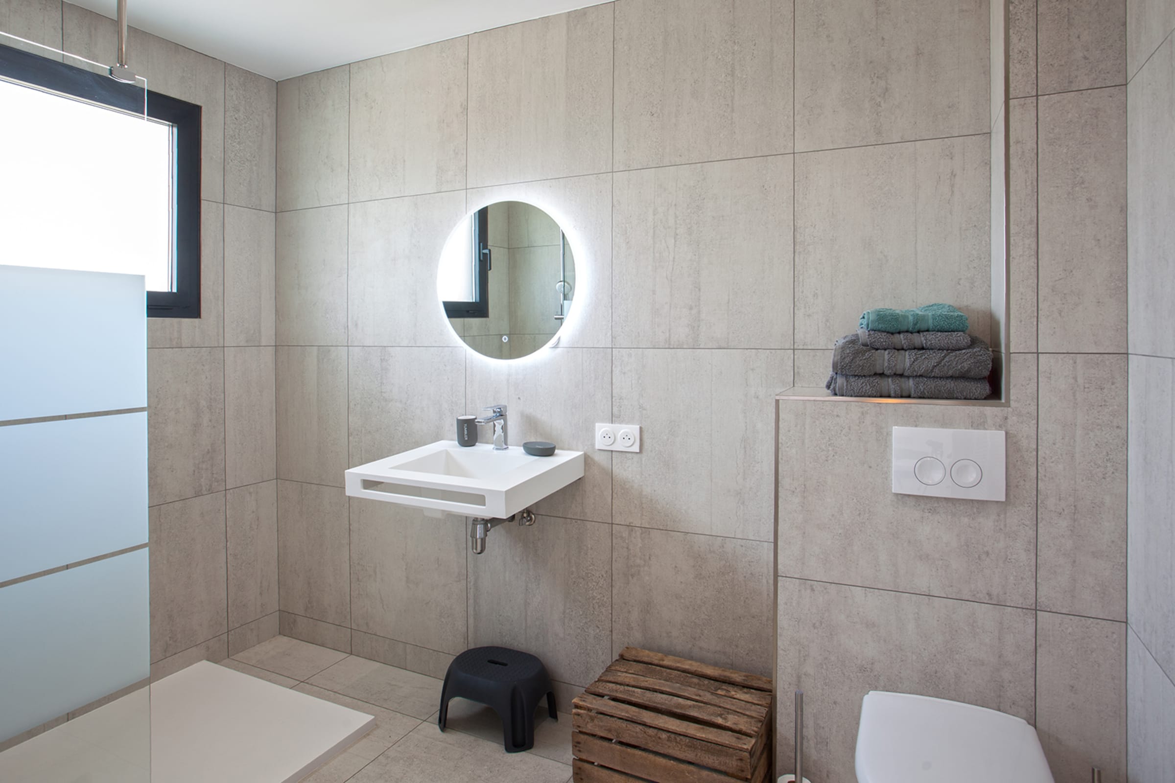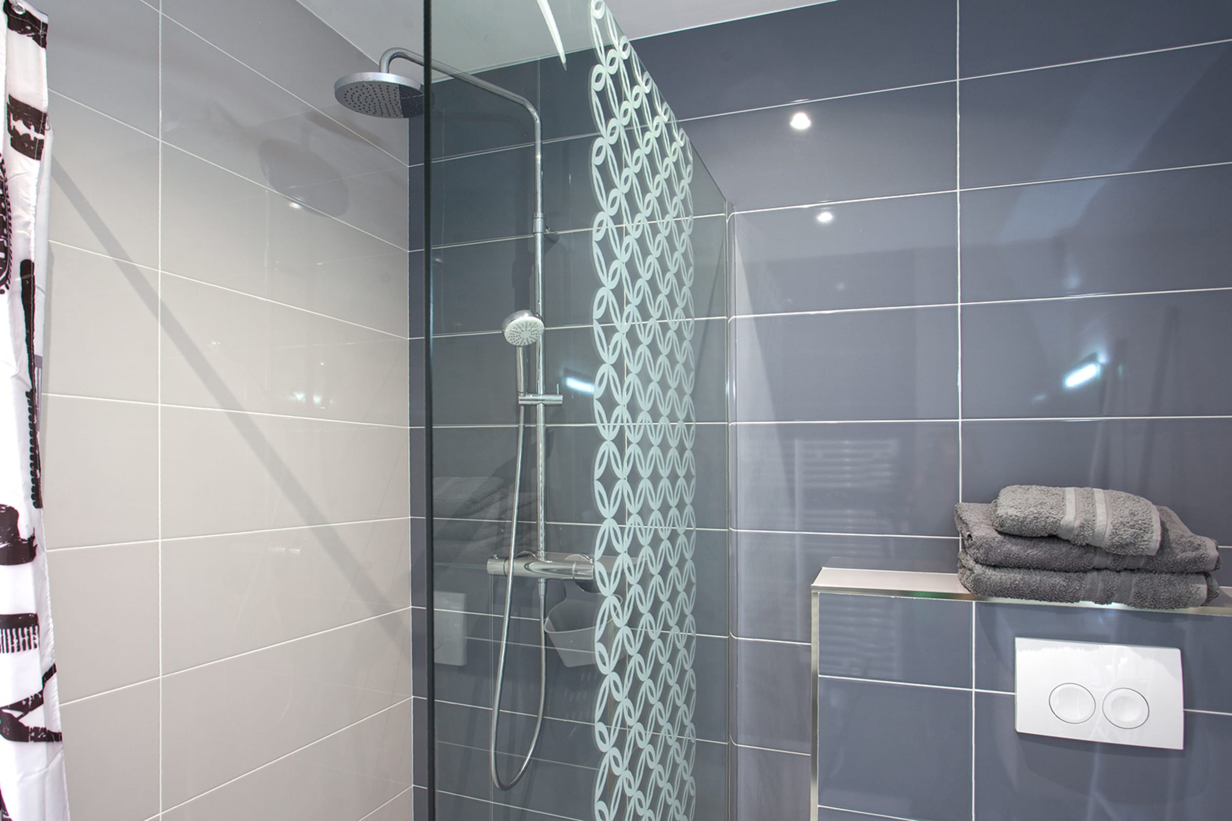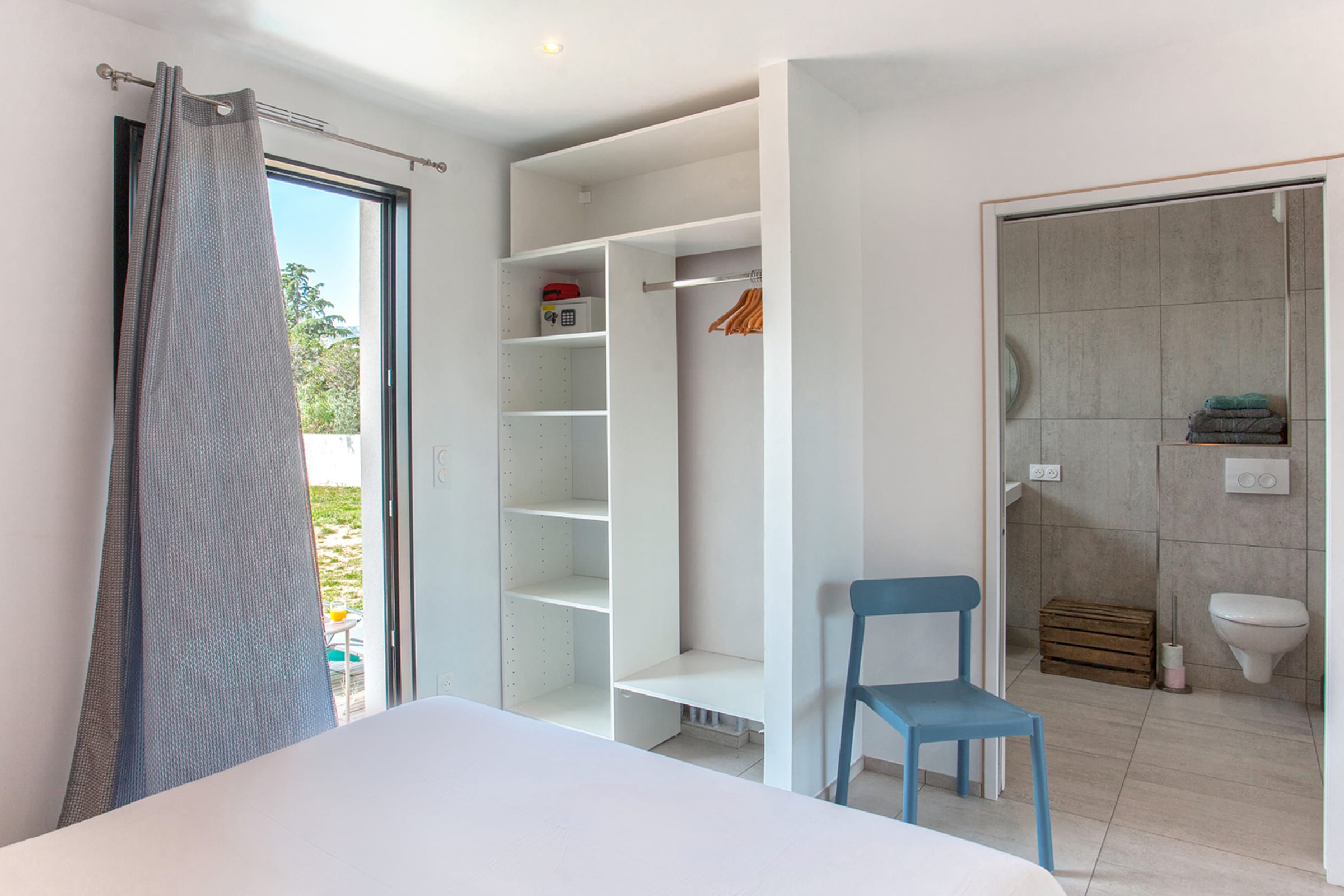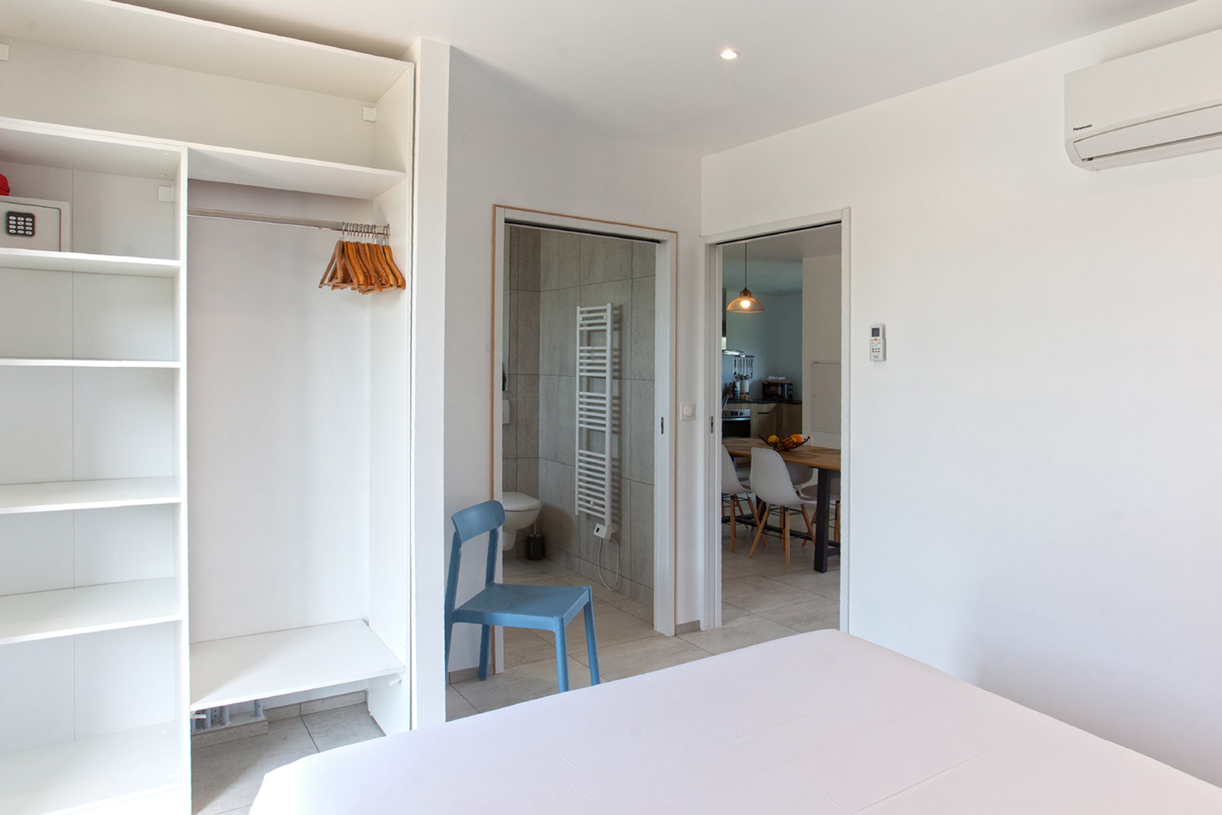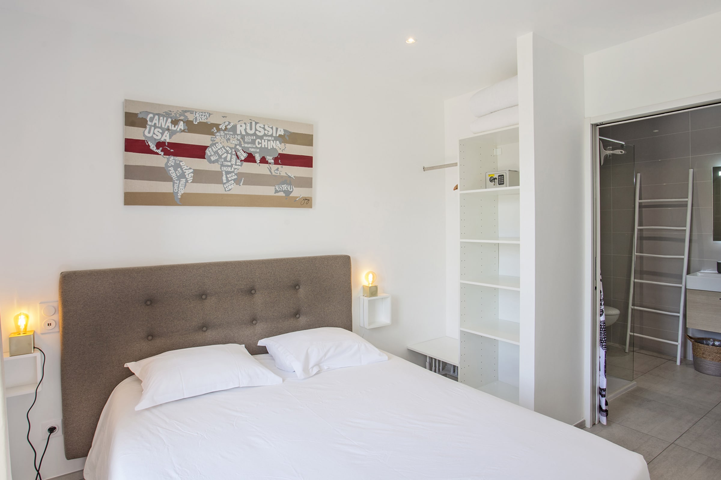 Bedroom N°1 : Queen size bed, cupboard, large bathroom with italian shower.