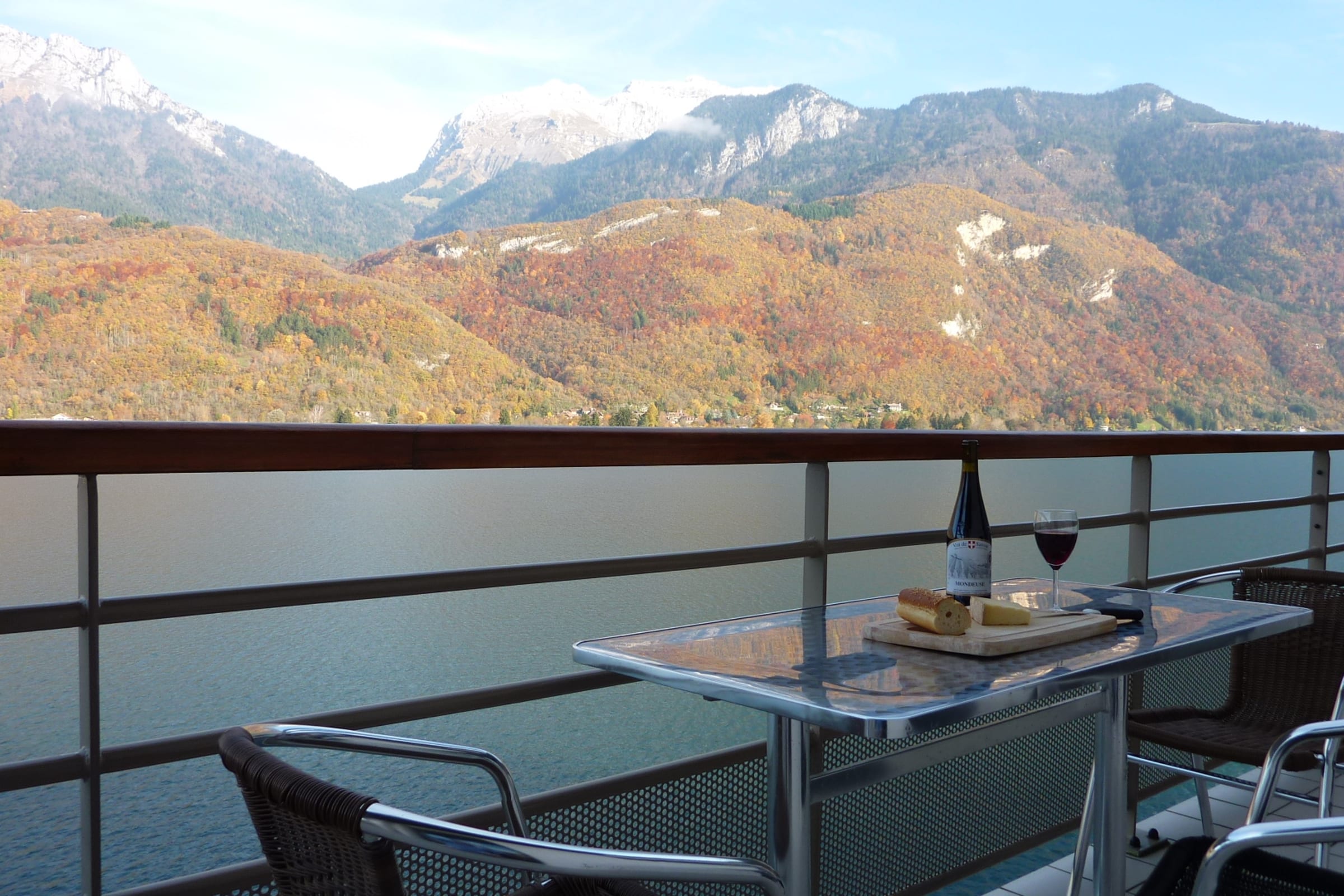 From the balcony you enjoy outstanding uninterrupted views of Lake Annecy, Duingt Chateau and the surrounding mountains.