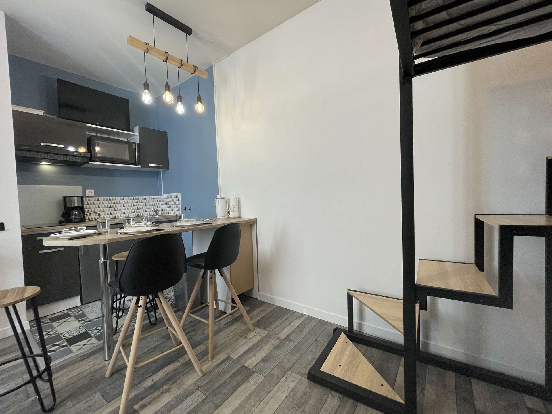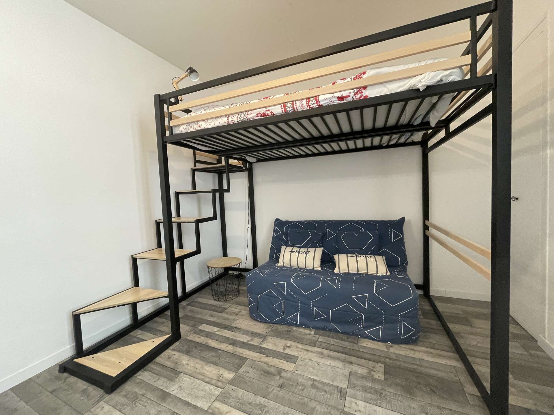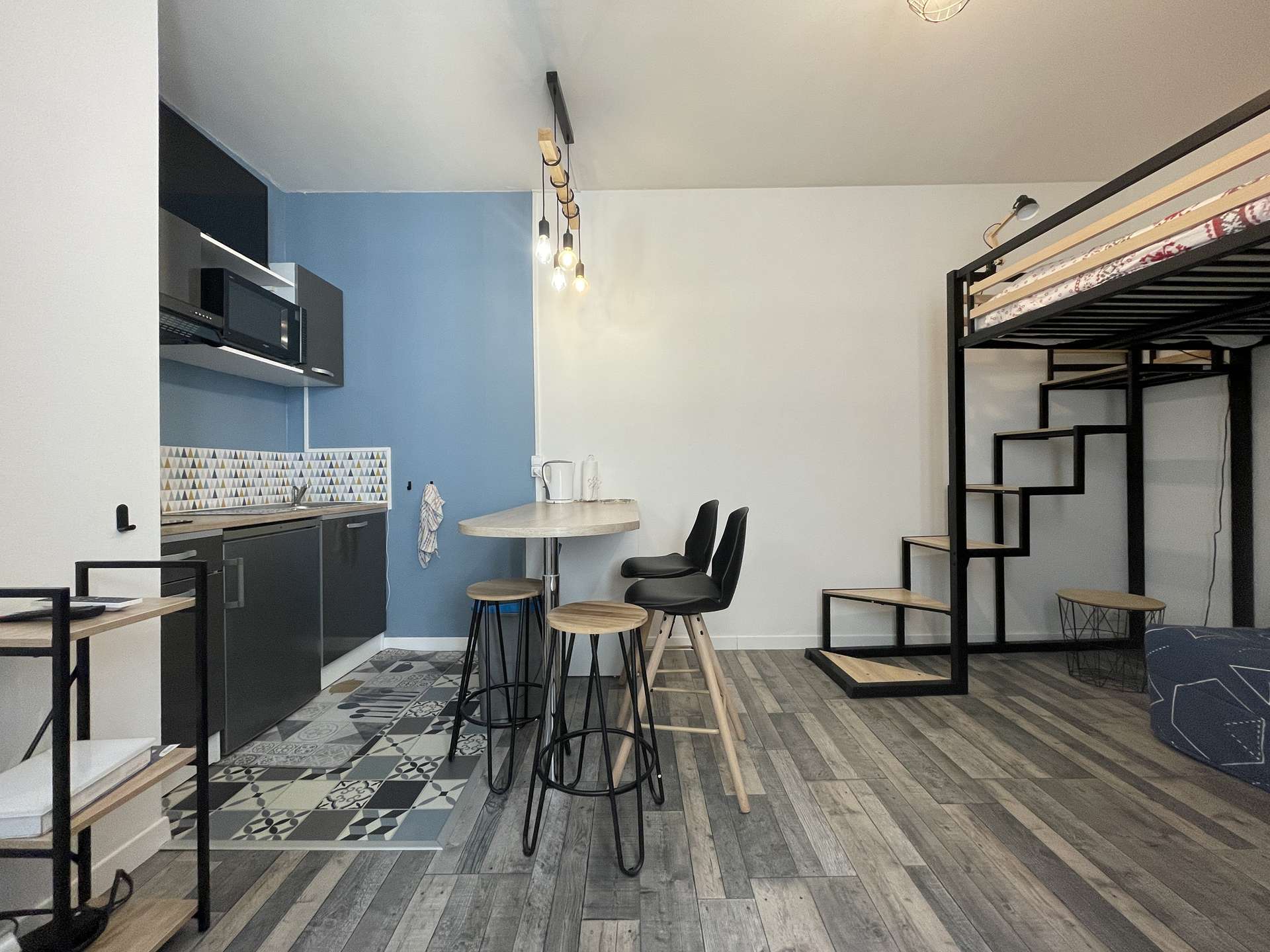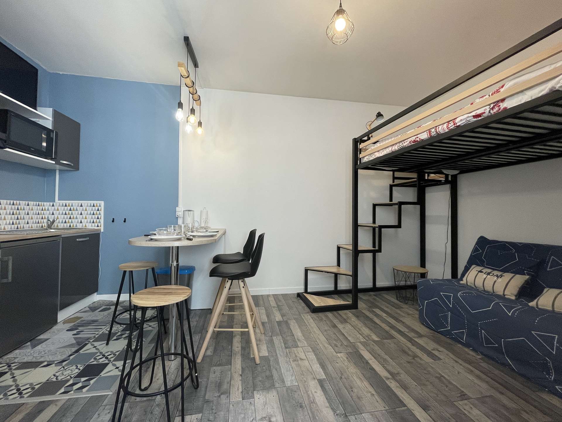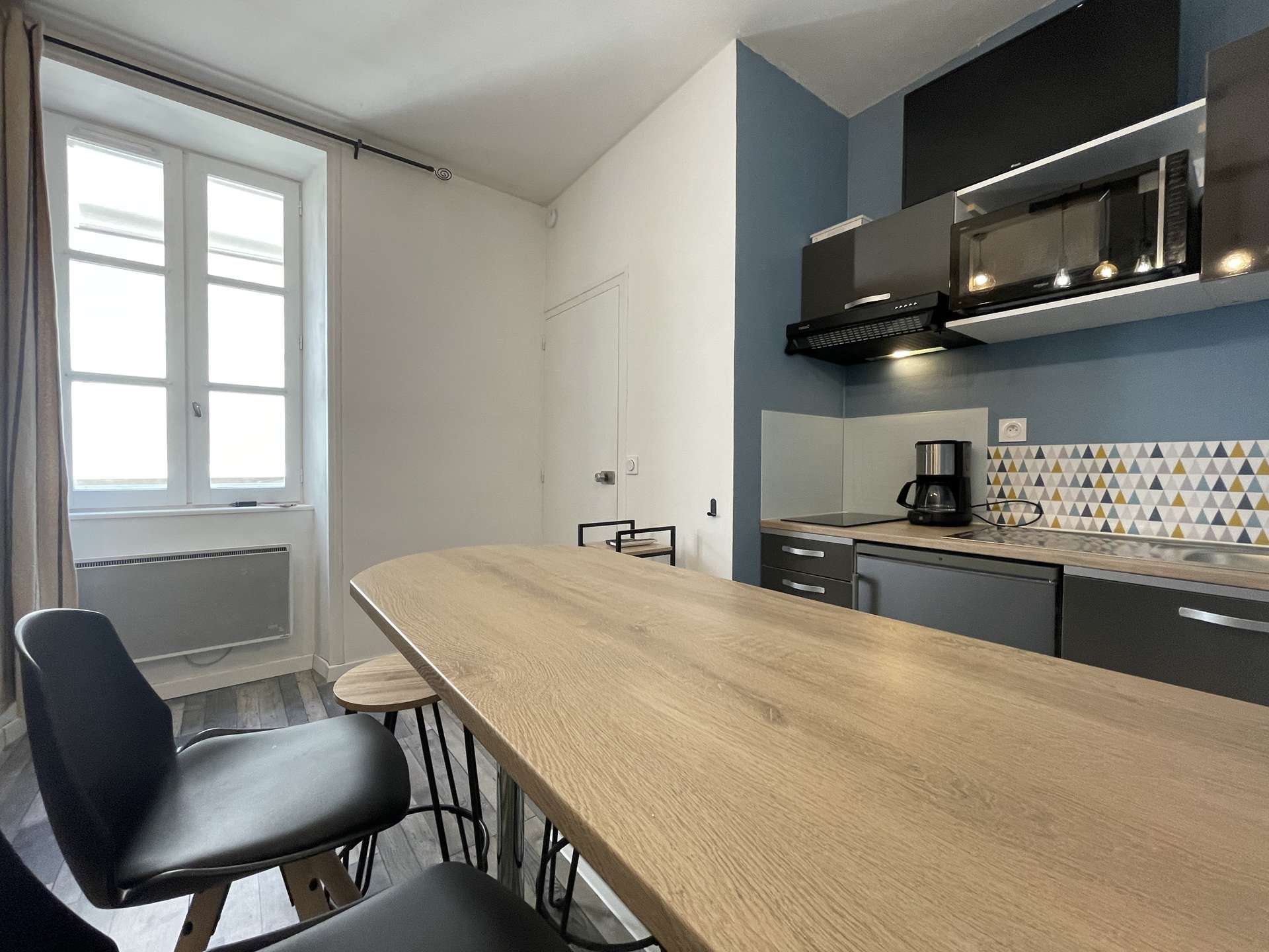 La Rochelle (17) - City center - rue de la cloche 1 room apartment - approx. 25 m² - up to 3 people Holiday apartment located in a historic building close to the prefecture and the big clock tower. It is located in the heart of the city of La Rochelle, close to all amenities. Ideally located, this apartment will allow you to enjoy the city of La Rochelle in the best conditions. It is on the floor, consists of a living room with an equipped kitchen area, hotplates, microwave, kettle, filter coffee maker and everything necessary to cook in the best conditions. Also a sleeping area with a 140cm loft bed for 2 people, below a 130cm sofa bed for 1 person. A very modern bathroom with shower and basin and a separate WC. Downstairs, in the courtyard of the building, a bicycle rack for those who wish. The advantages of this rental by the sea: Close to the market halls, old port, in the heart of the city center, close to shops and easy access to public transport. Cleaning with disinfection included.
