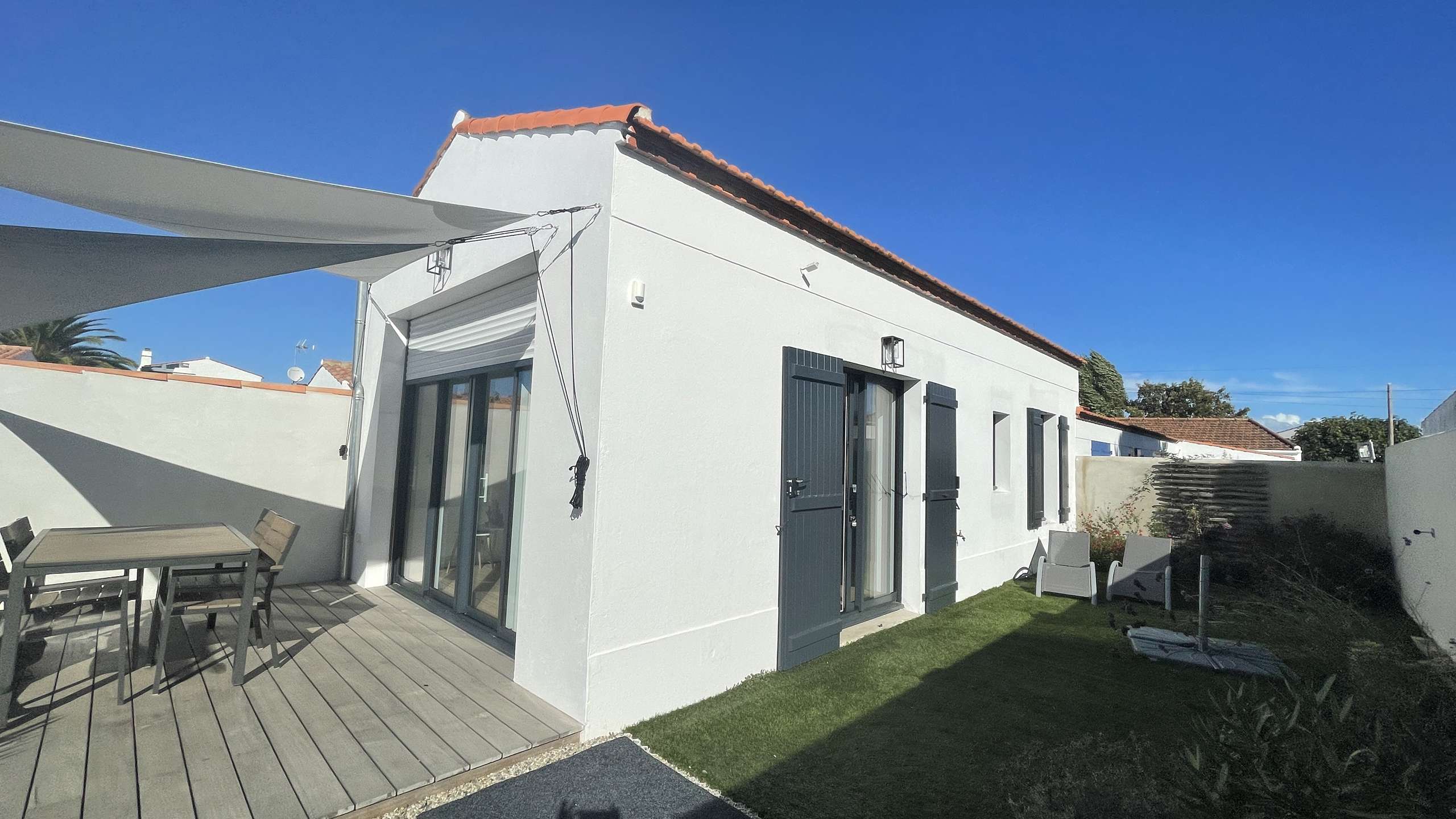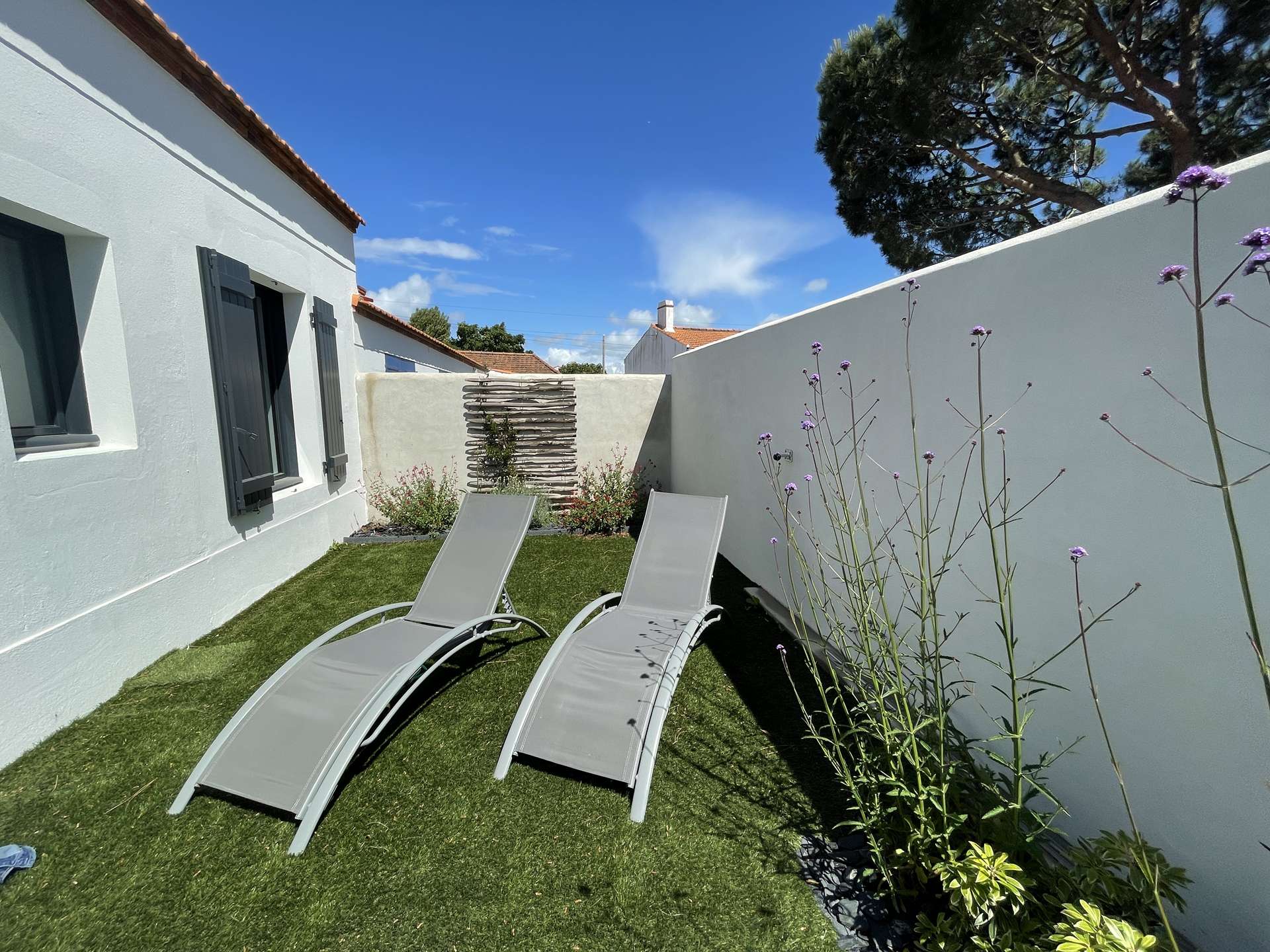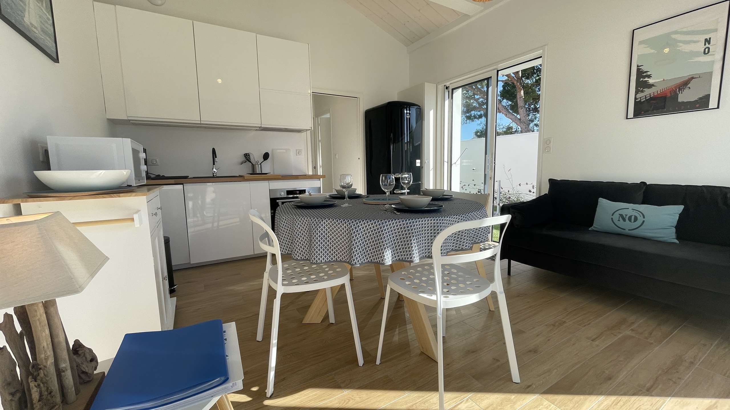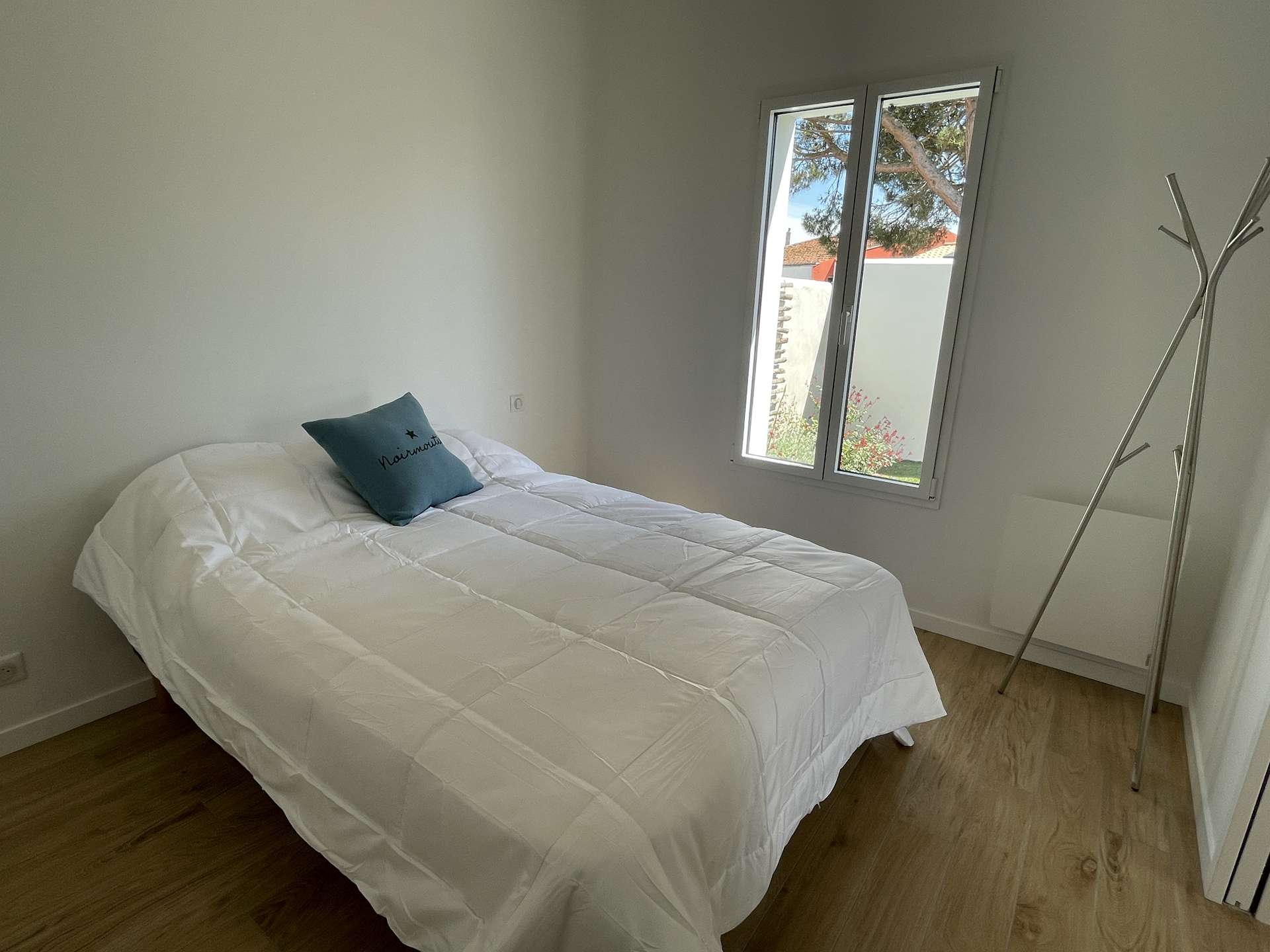 Noirmoutier en l'Ile (85) - Neighborhood near the city center 2-room house approx. 40 m² - up to 4 people maximum. Located 700 m from the shops and 1500 m from the beach of La Claire, this new house on one level consists of a pretty bright and bright living room opening onto a beautiful wooden terrace. A fully equipped kitchen area and a lounge area with a convertible sofa. A bedroom with a 140 cm bed and large cupboards, a bathroom with walk-in shower and separate wc. Parking is in the rental (possibility of entering 2 cars) with closure by secure gate. More of this house by the sea: You benefit from a terrace equipped with garden furniture and shade sails and a green space with deckchairs. You benefit from the proximity of shops, cinema, and summer entertainment. Cleaning with disinfection included.