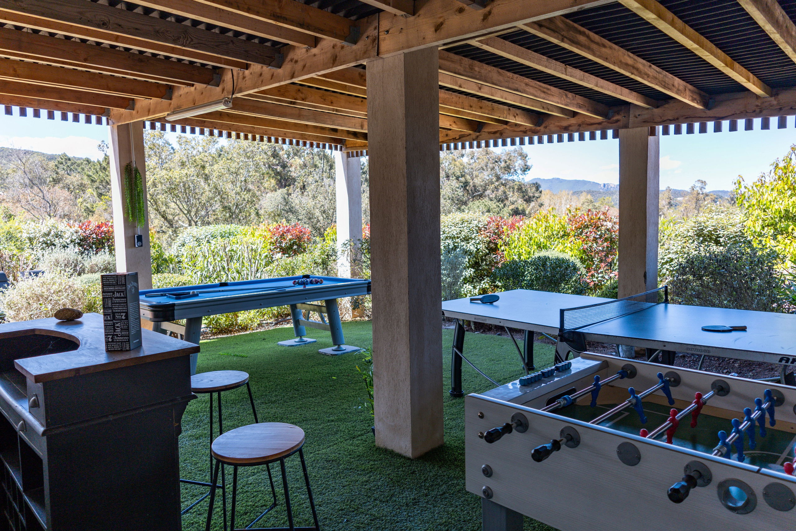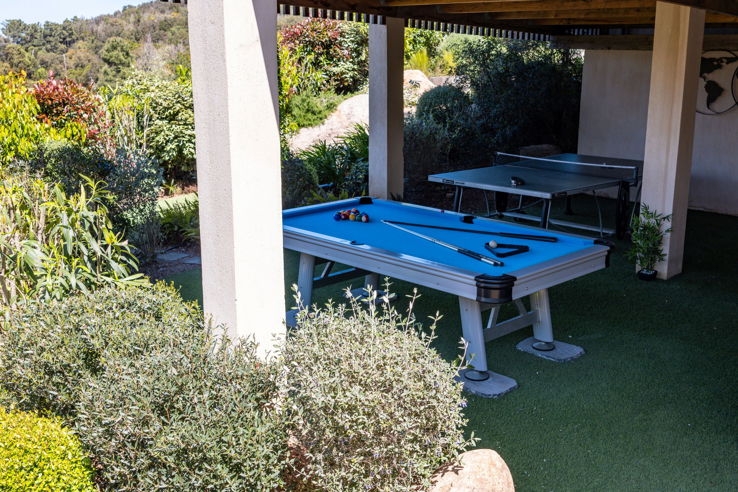 - Outdoor space with table soccer, billiards, ball field fully fenced.