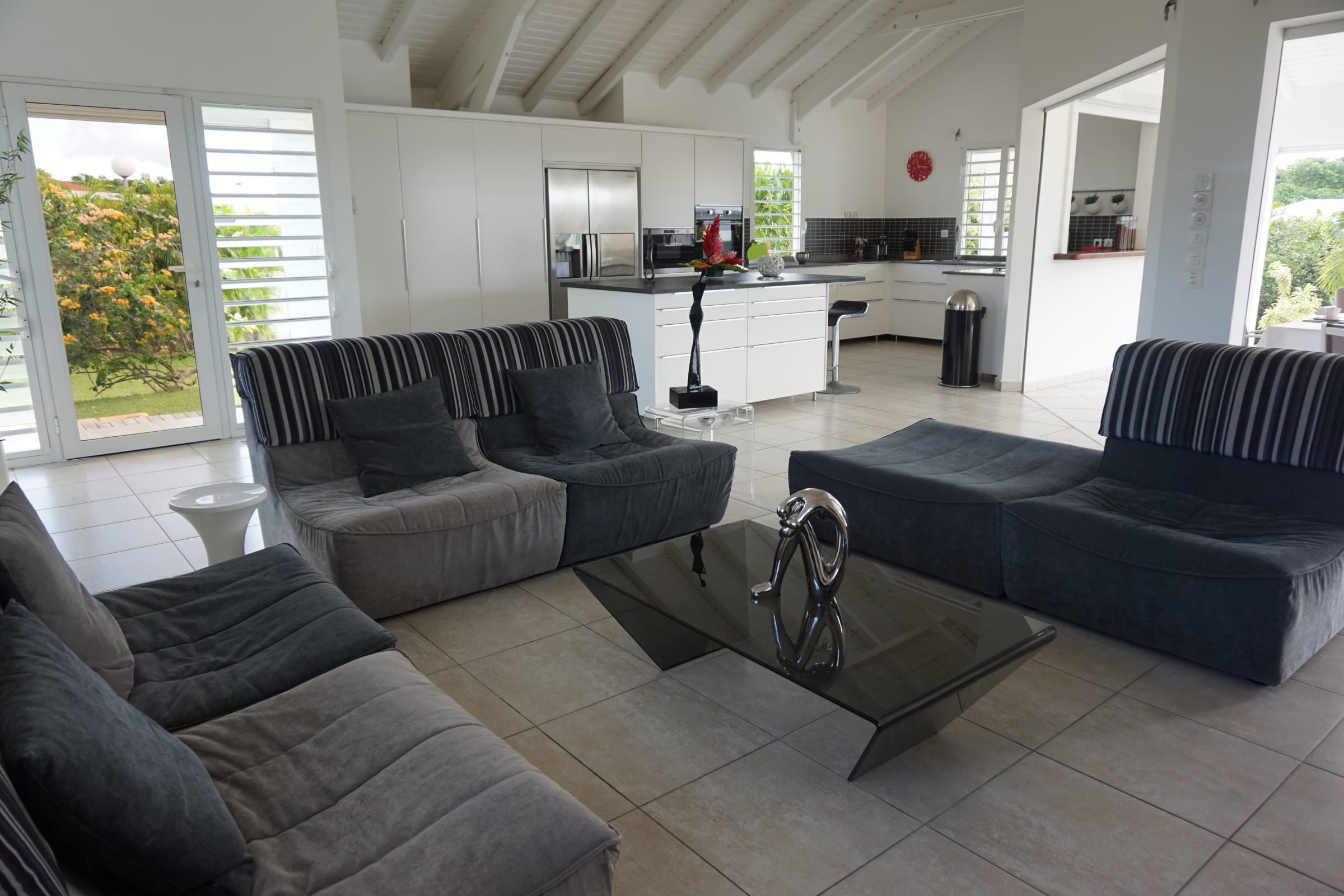The villa is located in the commune of Saint-François, on the eastern part of Guadeloupe called Grande-Terre. At 45 minutes drive from Pointe-à-Pitre airport, it will take you less than 5 minutes to reach the town of Saint-François and find all the conveniences: shopping area, supermarket, bakery, pharmacy, fish and spice market.