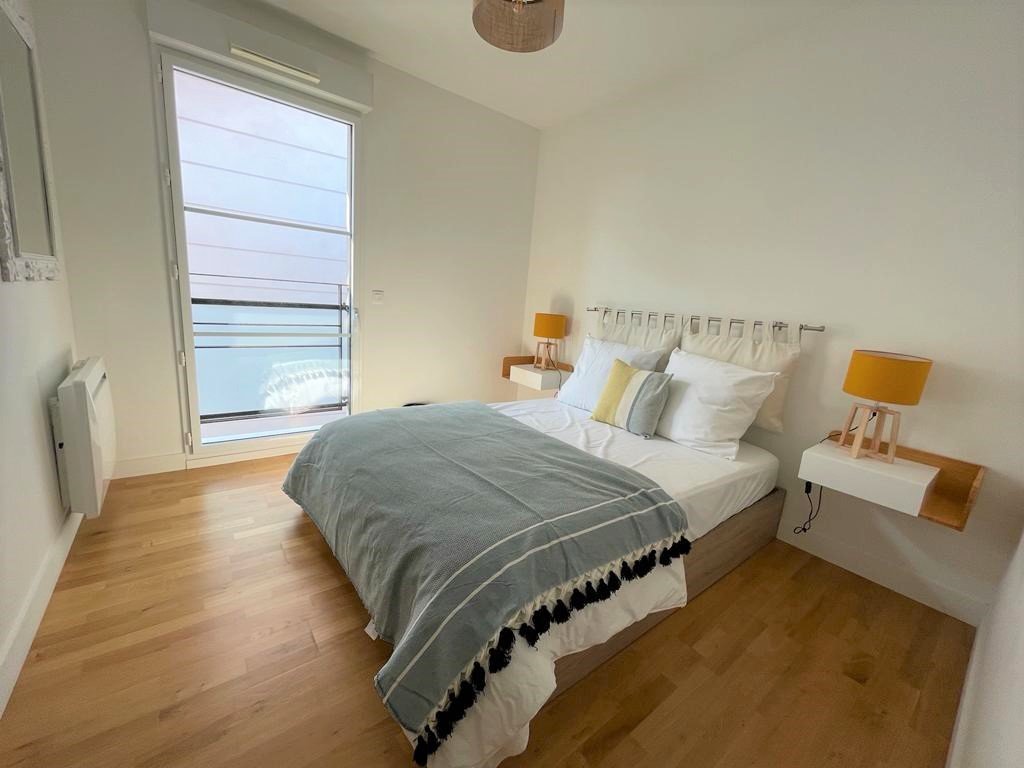 L'appartement bénéficie d'une situation idéale : à seulement 290 m de la plage, 700 m de la gare et 800 m du centre-ville avec toutes ses commodités. Un box fermé privatif et sécurisé est inclus avec le logement.