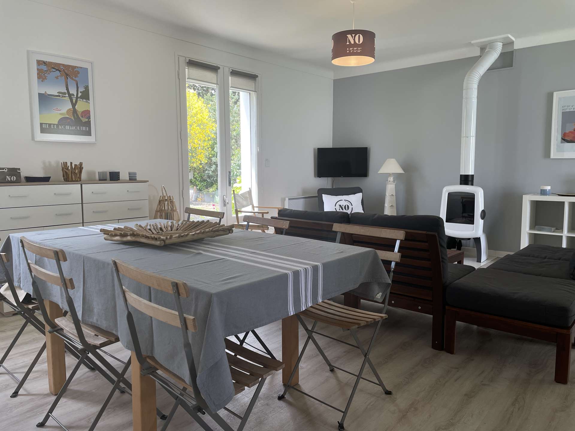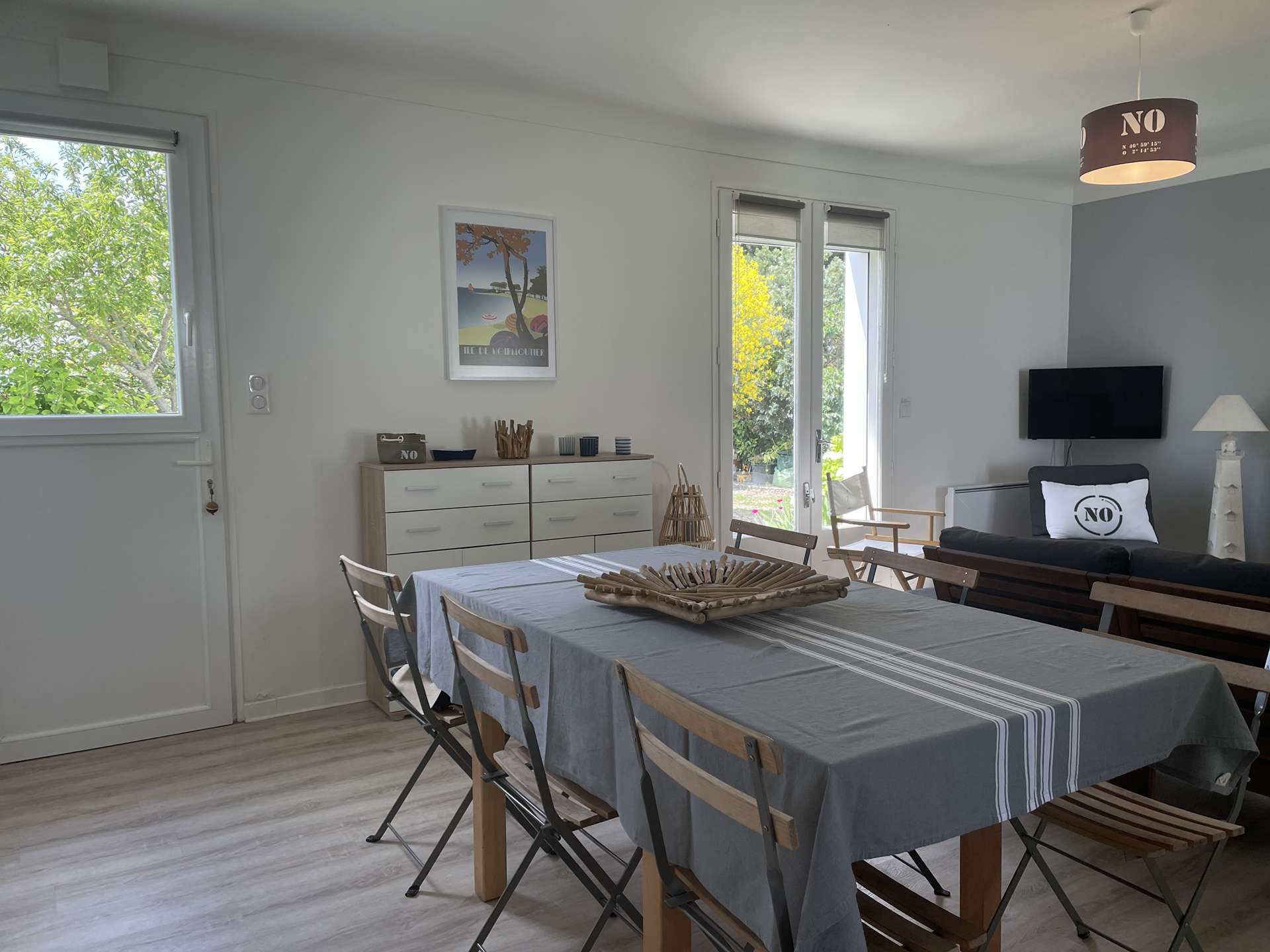 Noirmoutier en l'Ile (85) - Neighborhood Near the city center 4-room house - approximately 85 m² - up to 6 people Located 1700 m from the Mardi Gras beach in Le Vieil and 850 m from the shops, this comfortable house consists at the end of a beautiful living room with television, an open and fitted kitchen, a back kitchen, two bedrooms with double beds, a toilet, a bathroom, a shower room with toilet and a bedroom with two single beds . The advantages of this seaside rental: You benefit from a beautiful enclosed garden, barbecue, garden furniture and deckchairs. You will reach 5 minutes by bike from the city center and 10 minutes from the beaches and the Bois de la Chaise.