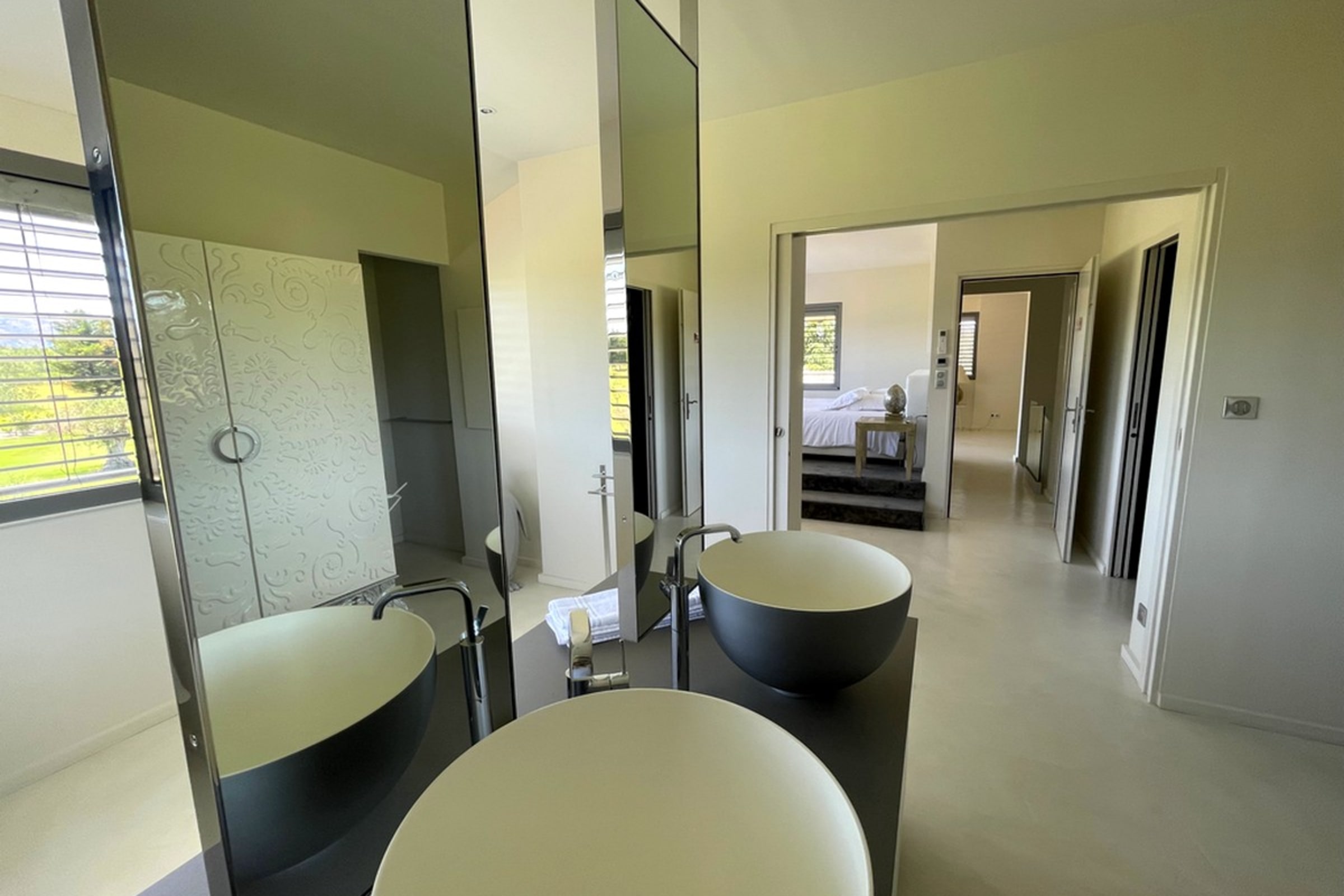 The villa offers a neat and friendly contemporary decoration, with five en-suite bedrooms including one dedicated to children. All air-conditioned.