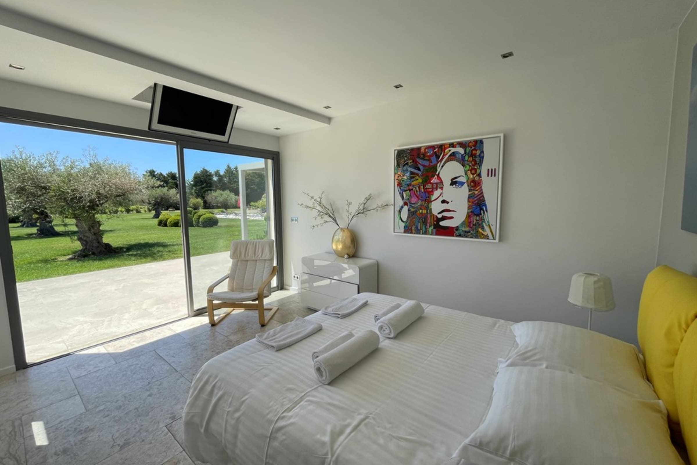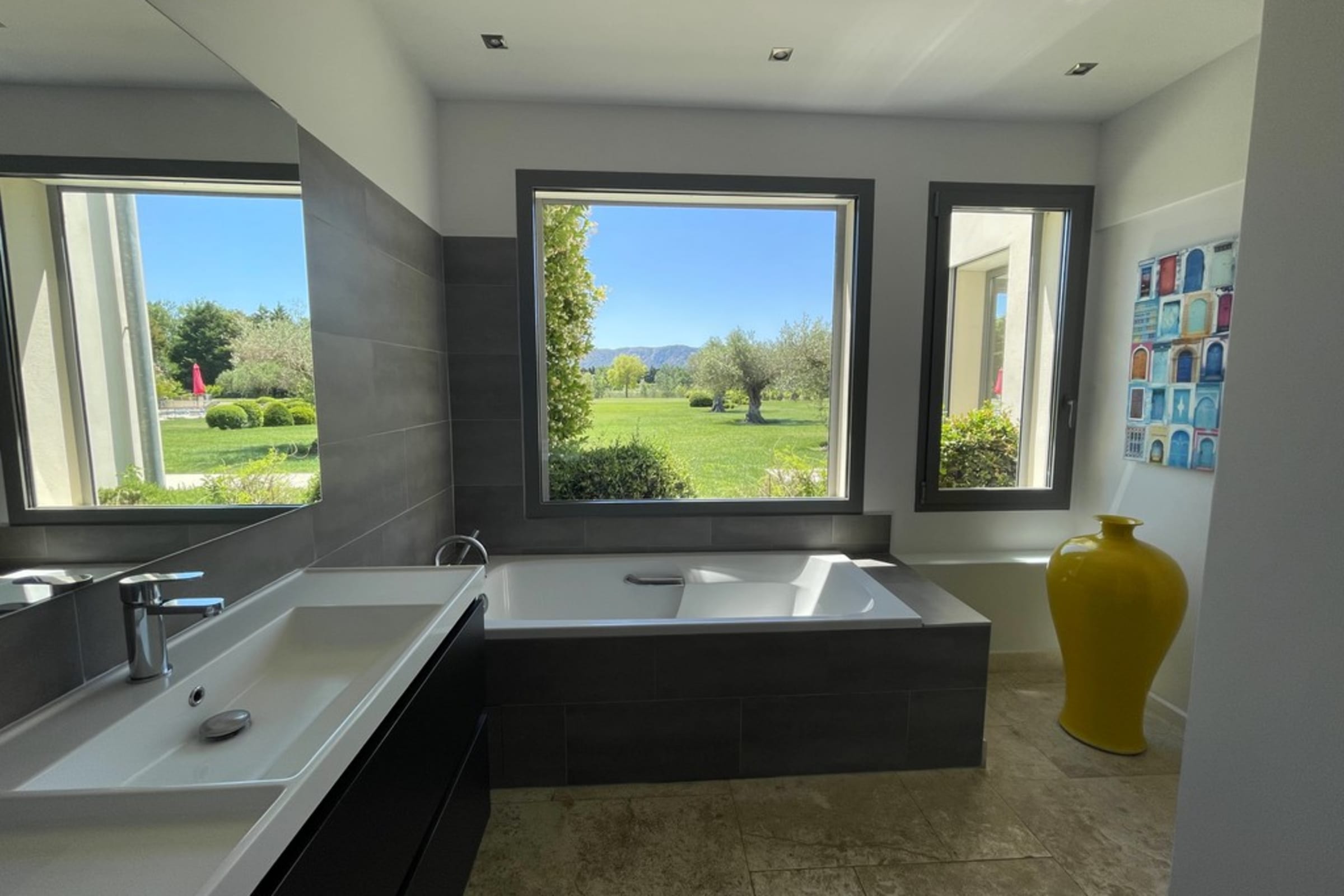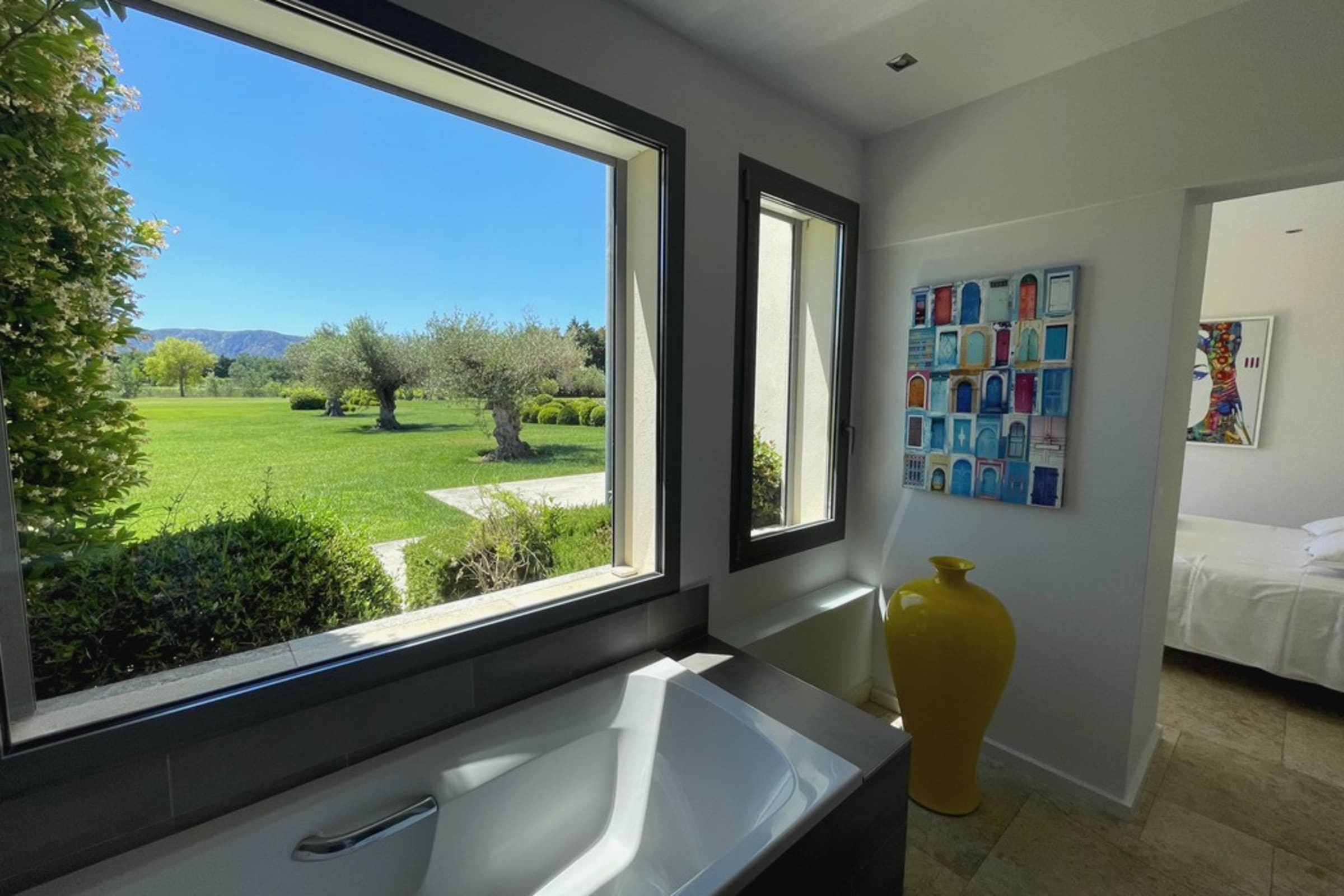 * Bedroom 5: 70m2 master suite, panoramic view of the Alpilles, bed of 180, private lounge/dressing room, bathroom en suite (shower and toilet) •Terrace with panoramic view of the Alpilles