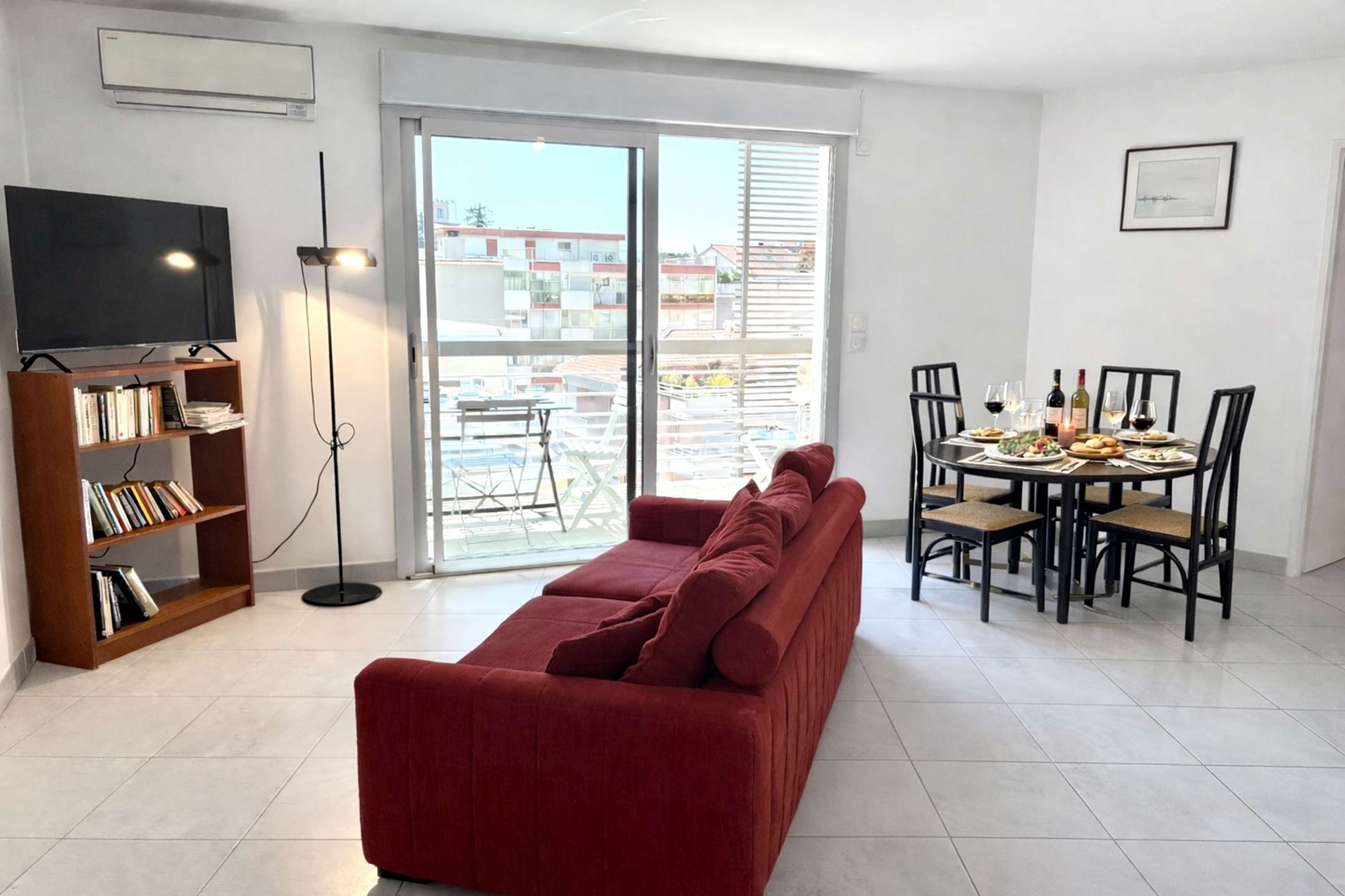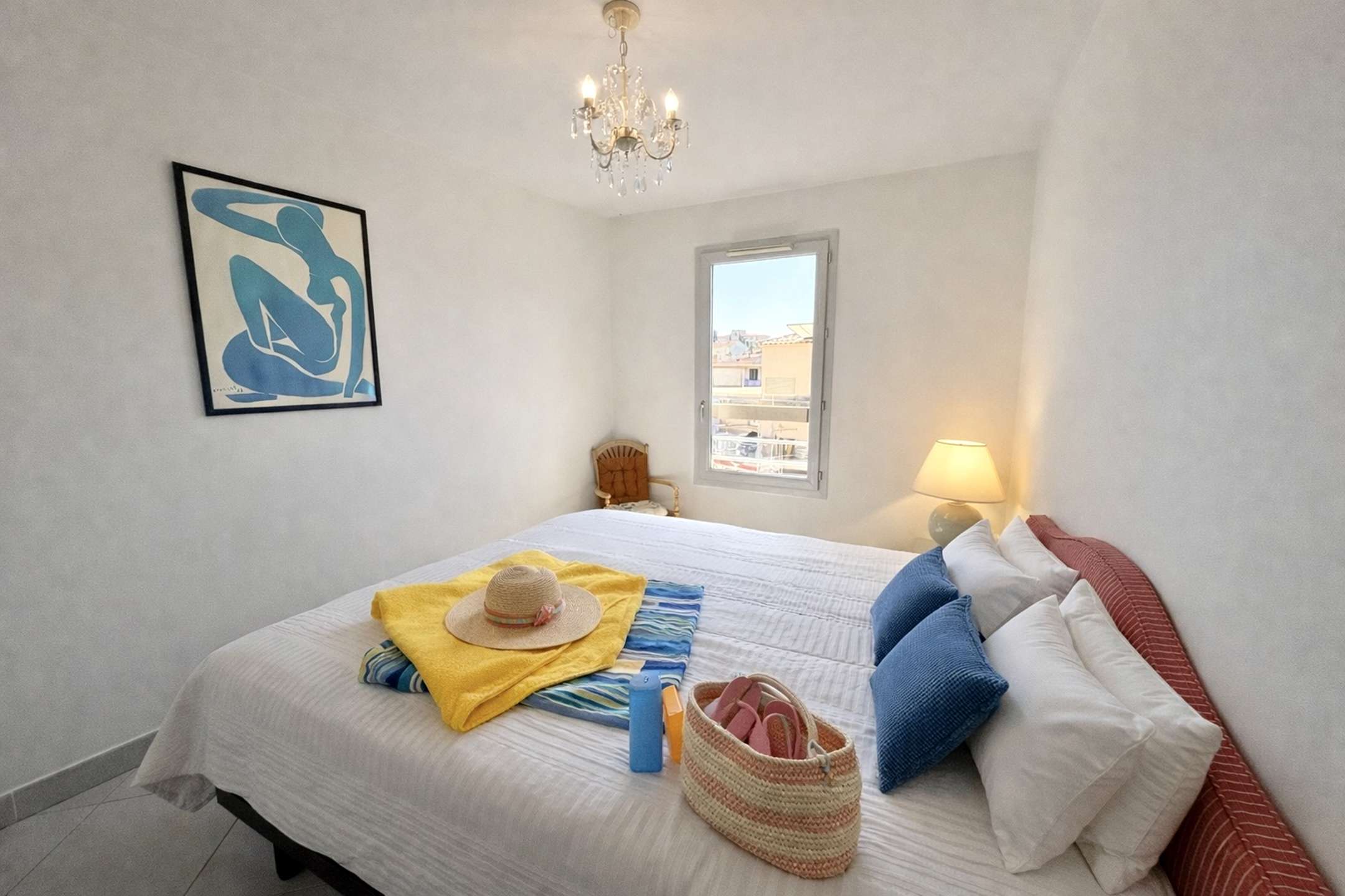 Saint Raphaël (83) - Center St Raphaël - Résidence Le Belvédère 3-room apartment - approx. 70 m² - up to 6 people in this spacious 3 room apartment. This holiday accommodation consists of an entrance, a living room opening onto a large terrace, an equipped and fitted kitchen, two bedrooms, a bathroom and a separate WC. The advantages of this holiday rental in Saint Raphaël: Private parking in the residence, Swimming pool on the roof, Air-conditioned apartment