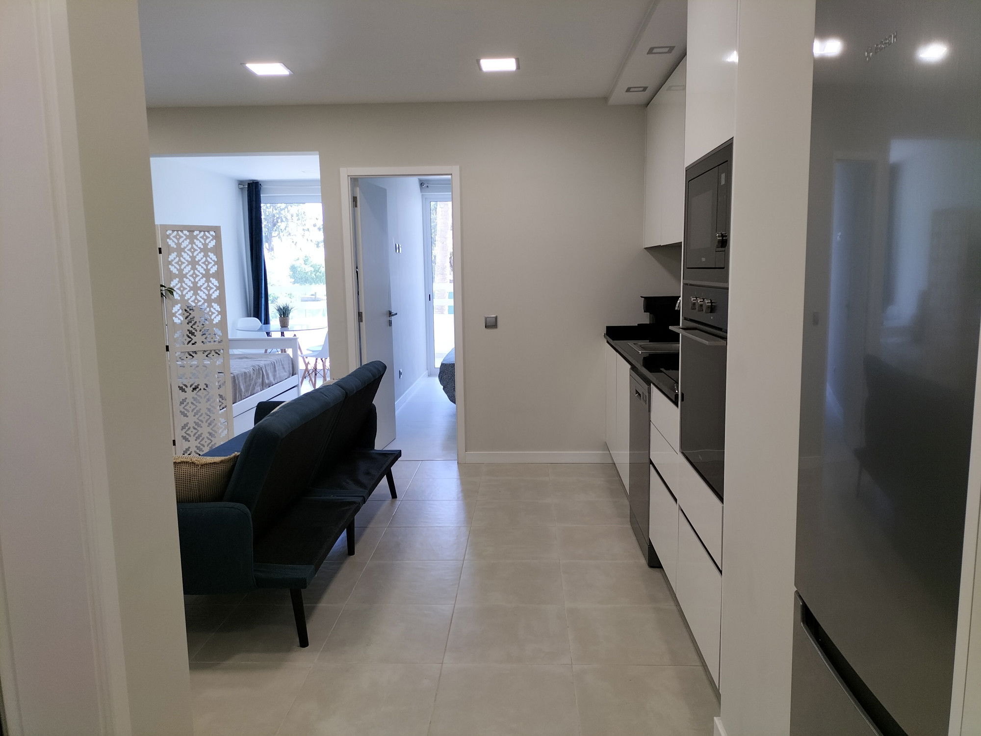 The apartment in Portimão has 1 bedrooms and has capacity for 5 people (max. 4 adults). The apartment is tastefully-furnished, is modern, and is 58 m². The property is located right next to the beach. It has views of the garden and the swimming pool. The property is located 0 m from the lake, 50 m from Mini Mercado supermarket, 150 m from SERVI-VAU from the restaurant, 200 m from Praia da Rocha sand beach, 650 m from Restaurante F €€€ from the restaurant, 5 km from Ribeirinha river, 6 km from Slide&Splash water park, 53 km from Aeroporto Faro airport. The house is situated in a quiet neighborhood next to the sea.The accommodation is equipped with the following items: lift, garden, garden furniture, fenced garden, 5 m² terrace, washing machine, internet (Wi-Fi), hair dryer, balcony, tennis court, central heating, air-conditioned, communal+children's swimming pool, open-air parking the same building, 1 TV.In the hotplate of glass ceramics open plan kitchen, refrigerator, microwave, oven, freezer, dishwasher, dishes/cutlery, kitchen utensils, coffee machine and toaster are provided.
