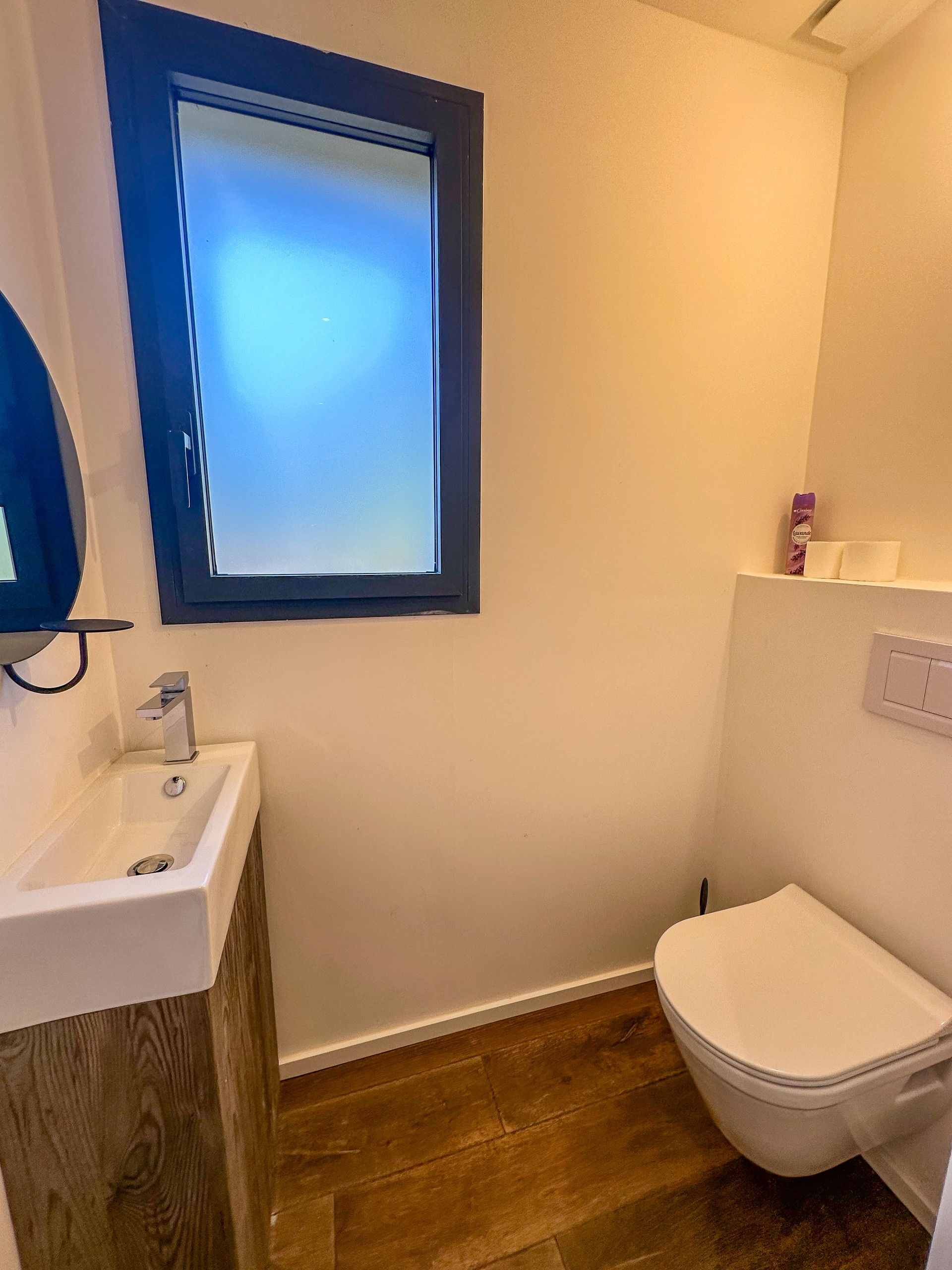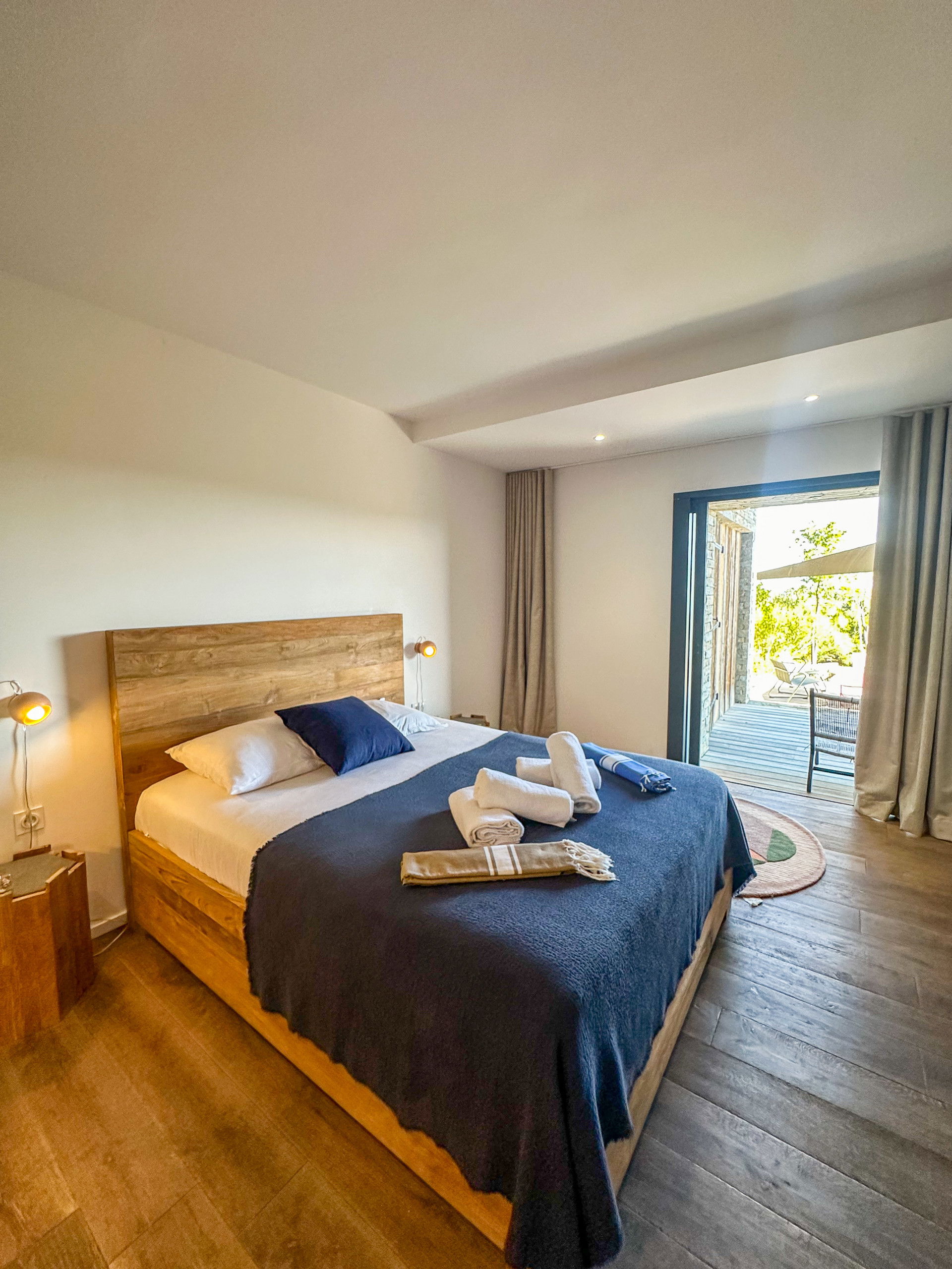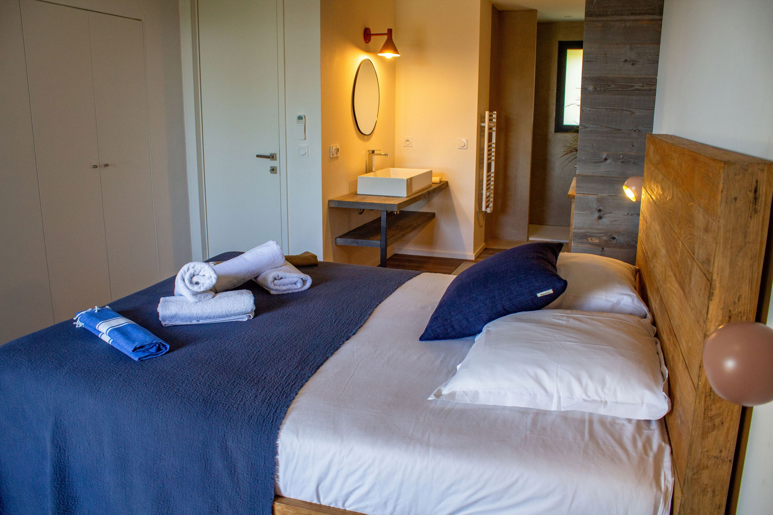Finally, outside, a fourth independent room with two beds 90*200 with private access shower room, closet and small wooden terrace.