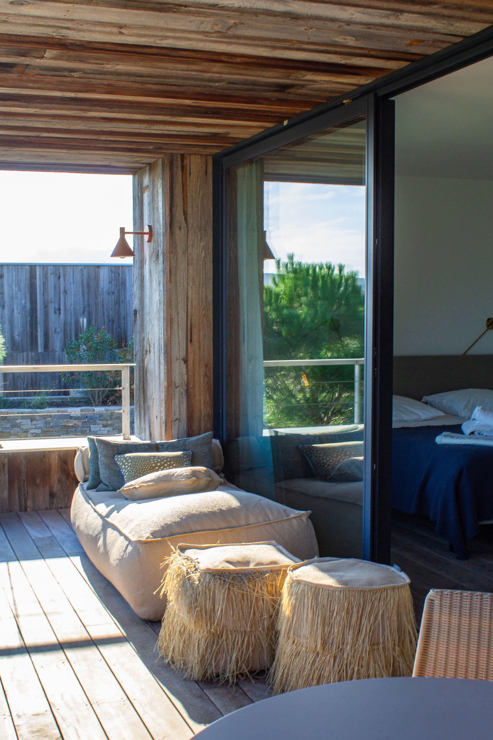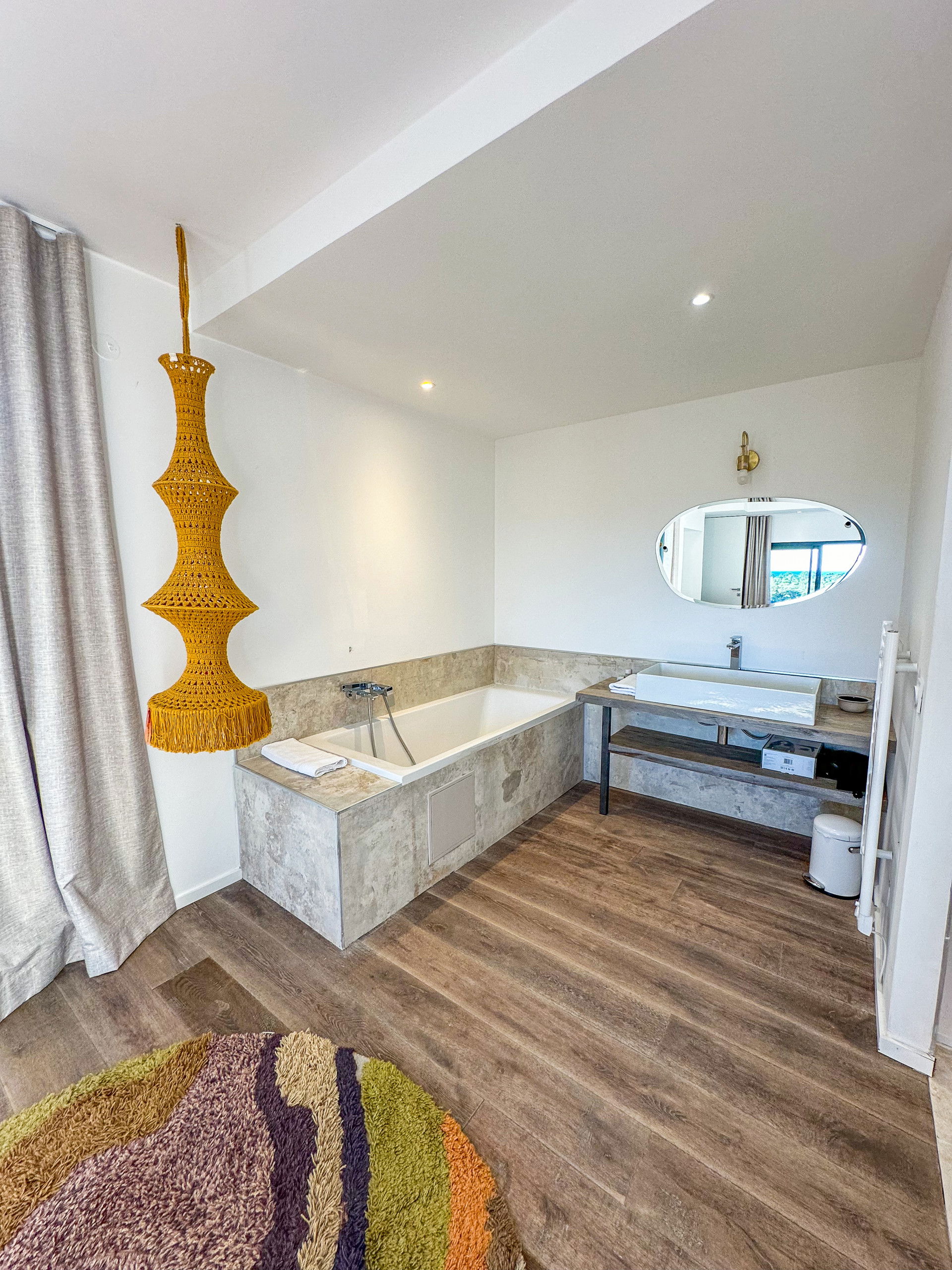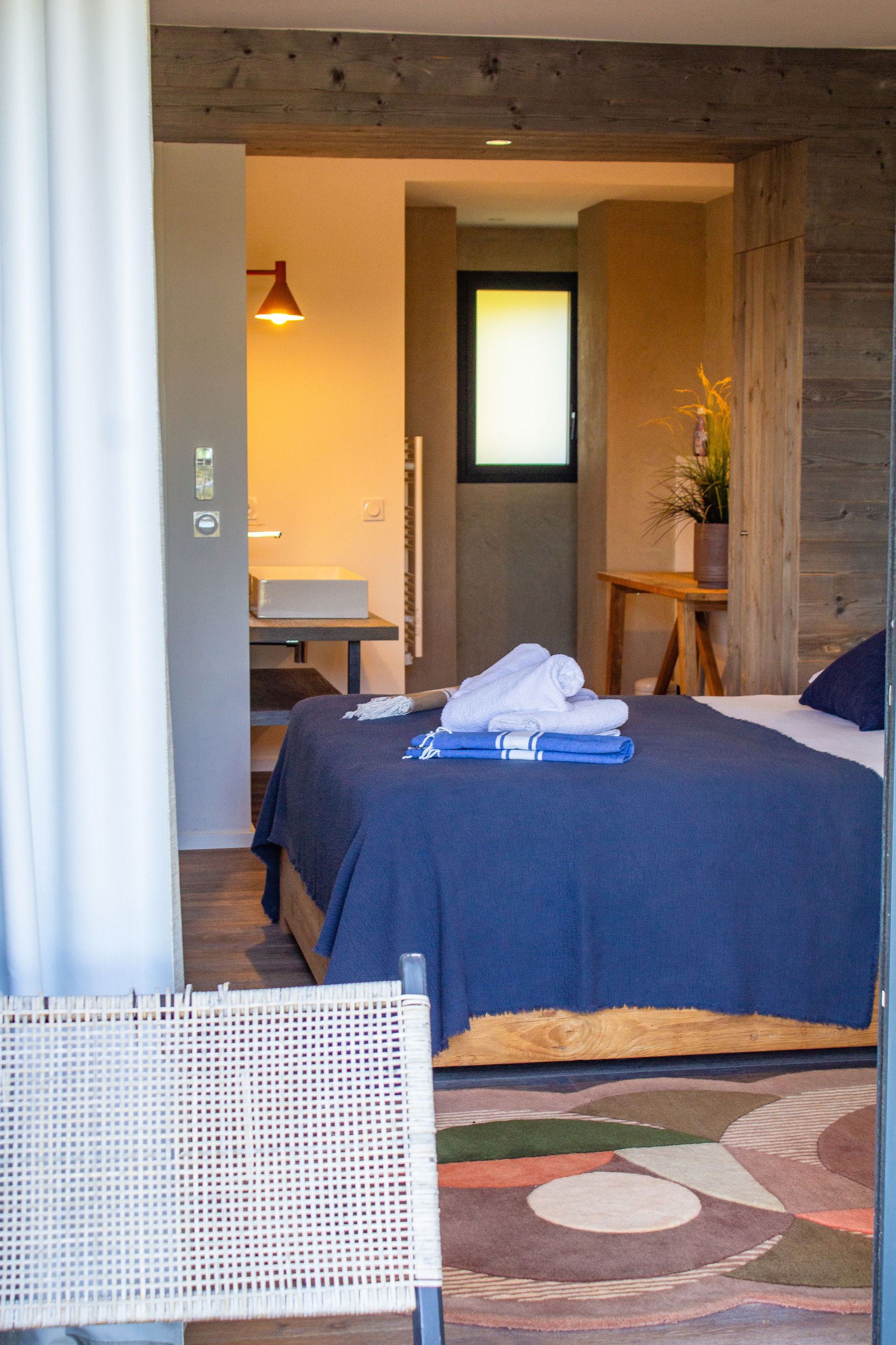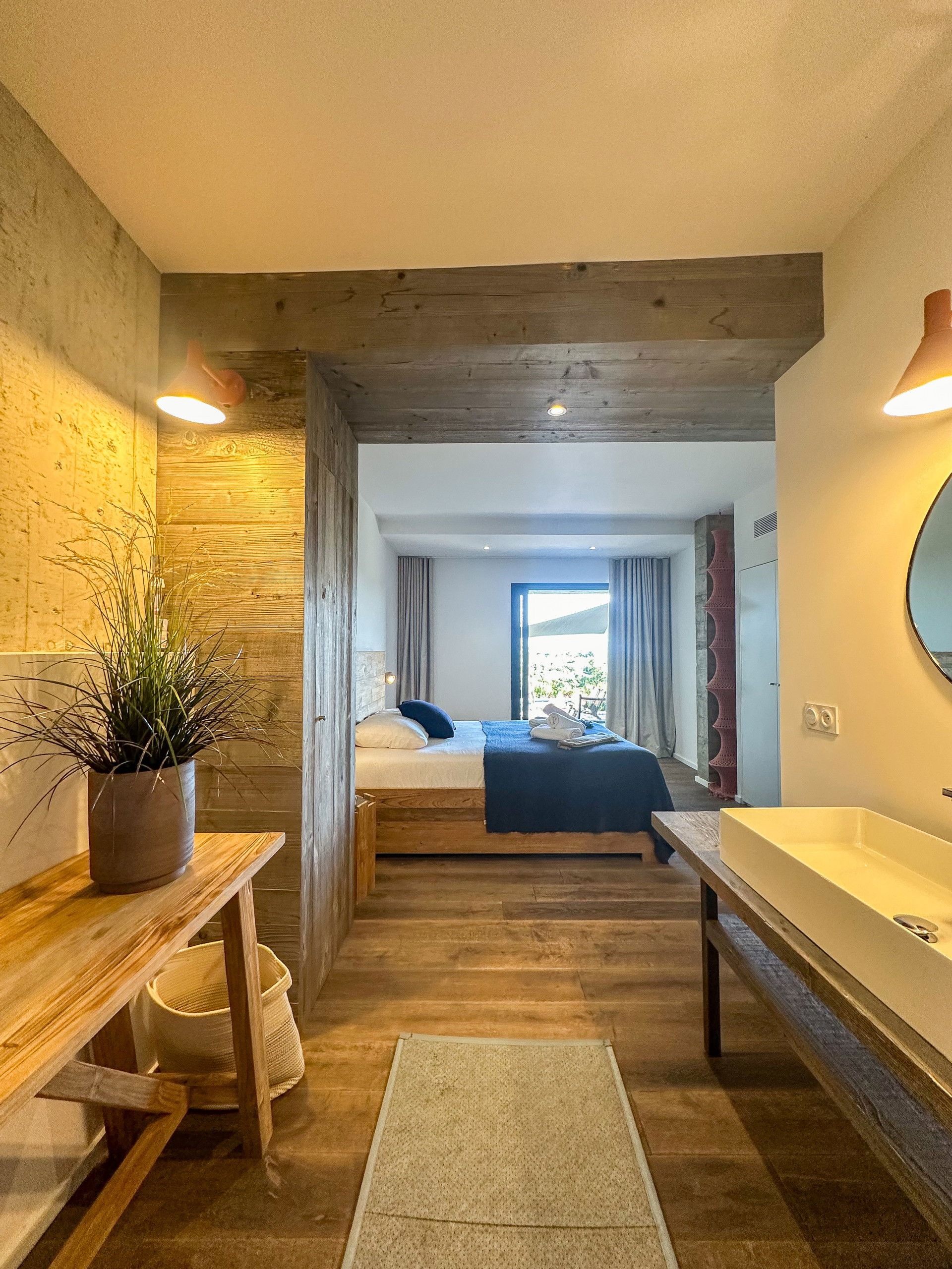 Finally, outside, a fourth independent room with two beds 90*200 with private access shower room, closet and small wooden terrace.