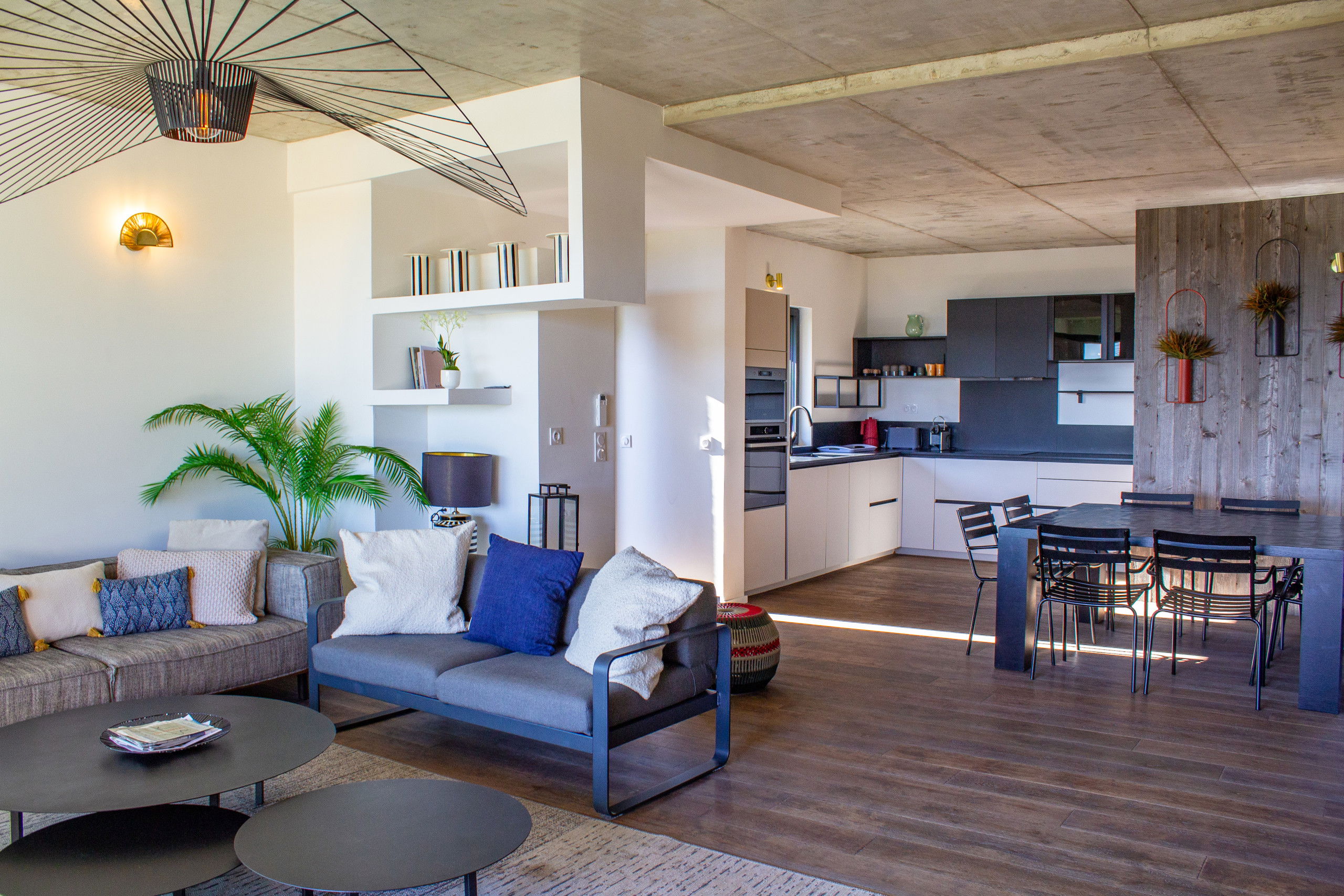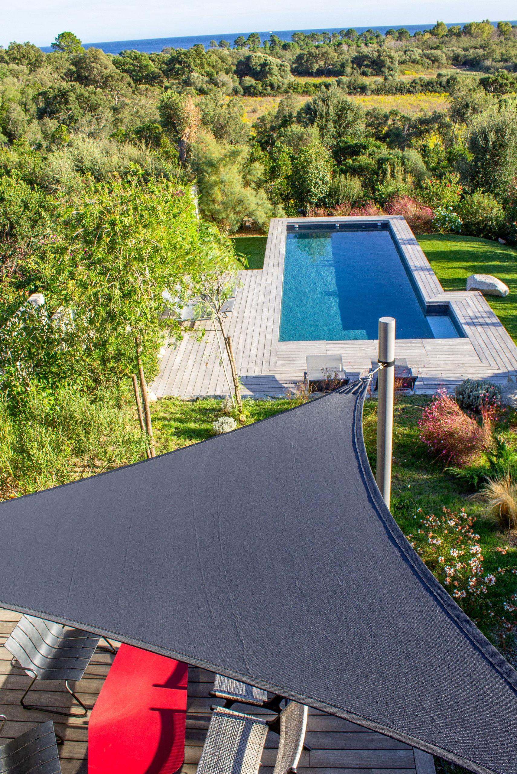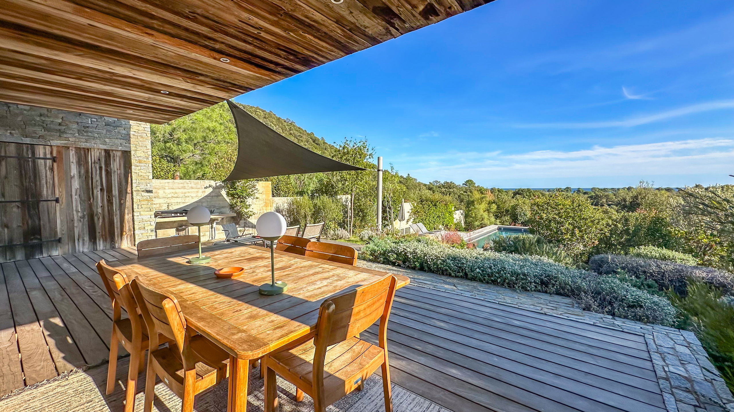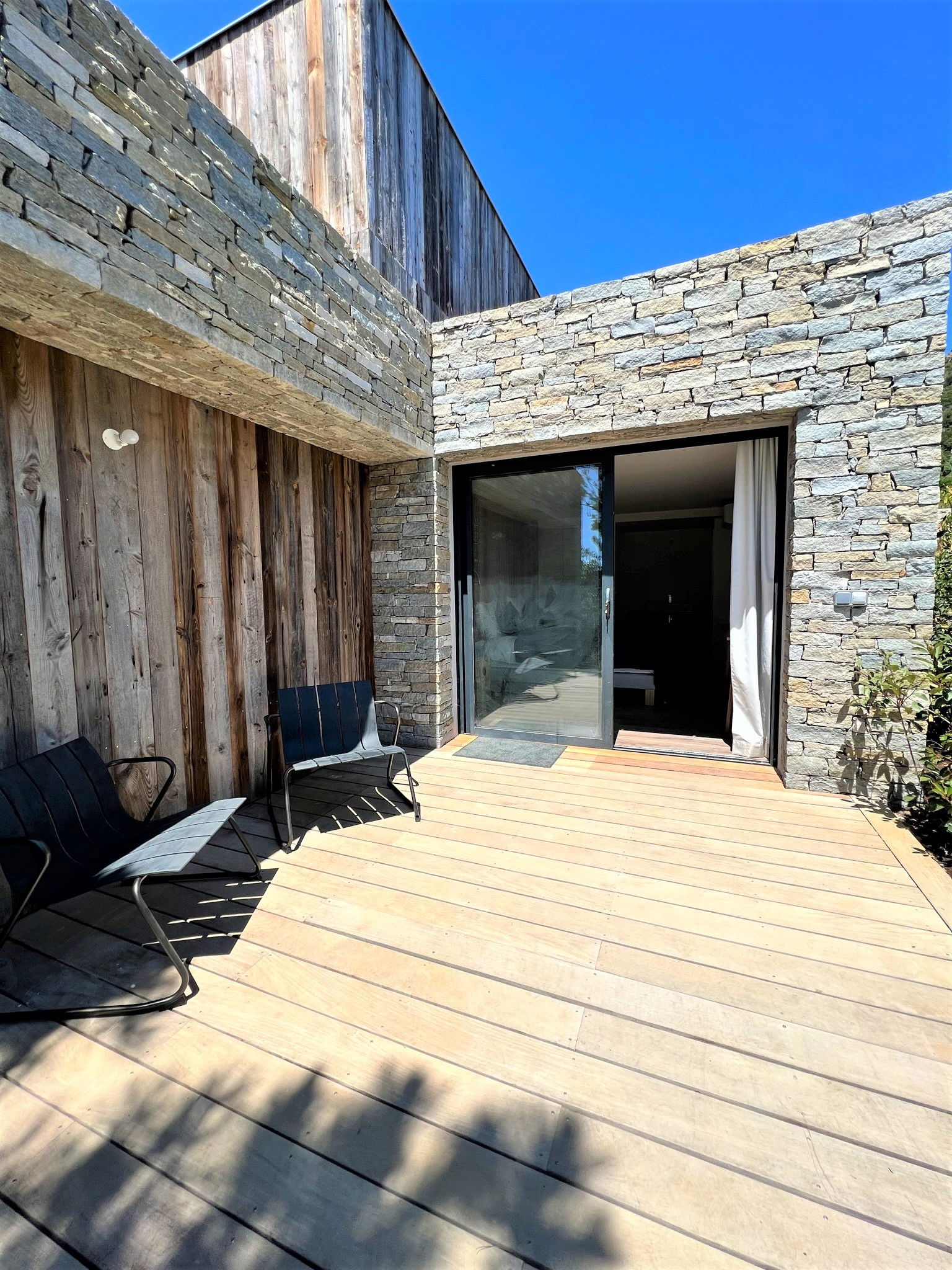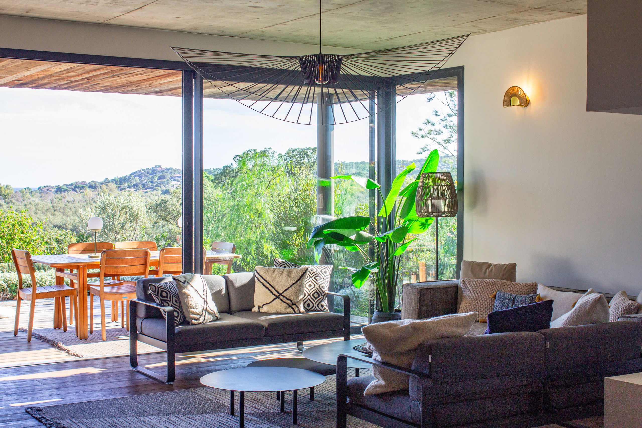 Facing east, the villa combines comfort and authenticity, a few minutes walk from the beaches of Fautea with even a private access. The contemporary architectural style is rigorously blended into the natural setting.