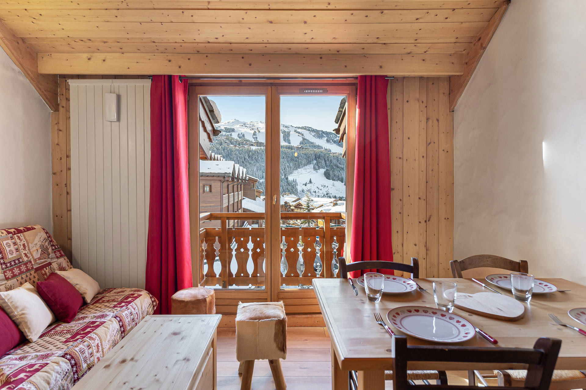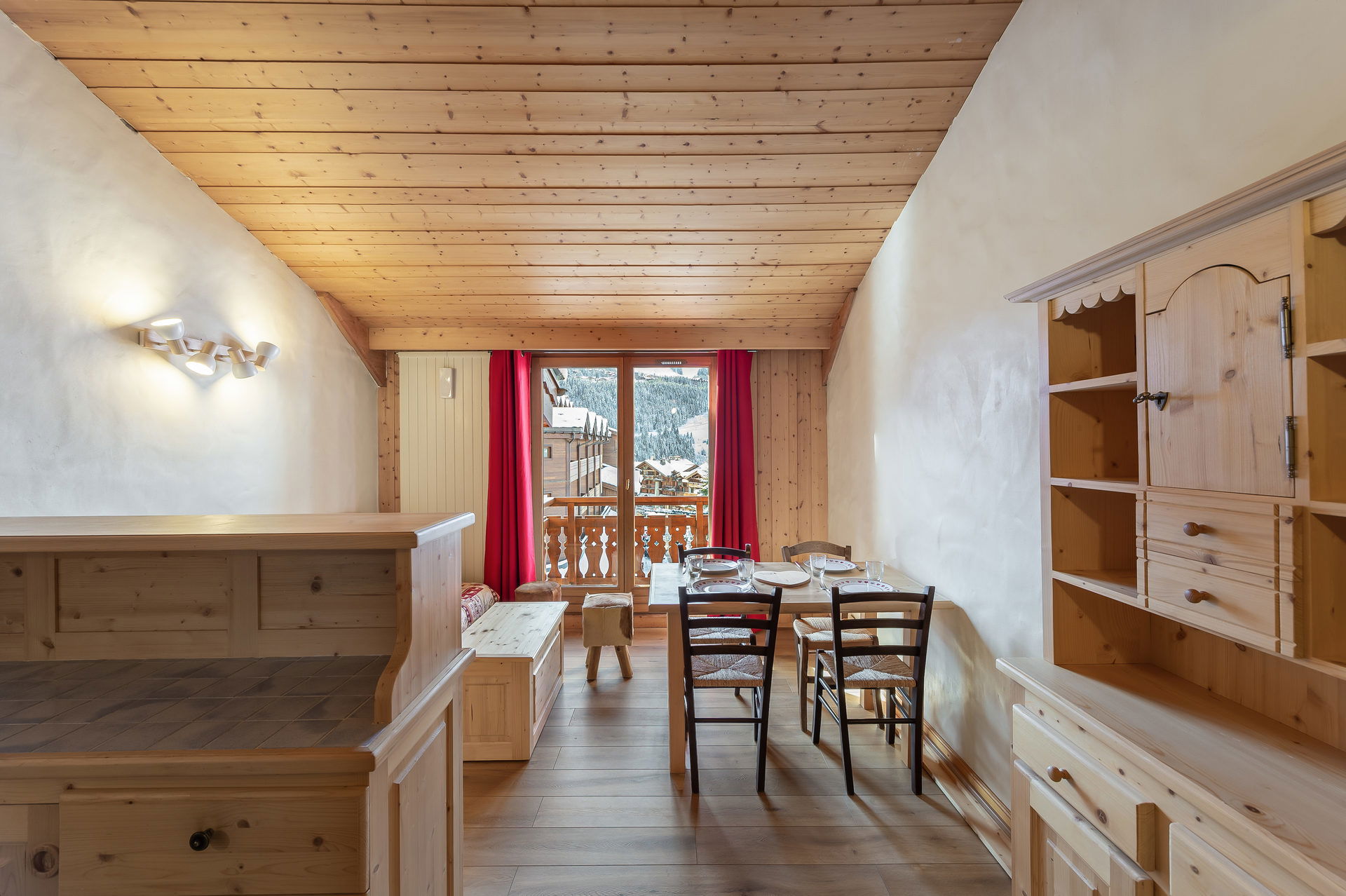Studio with mezzanine of 28sqm, for 4 persons, located on the 3rd floor of the residence LE MARQUIS. This studio near the snow front, has a splendid view on the mountains and Courchevel 1850.