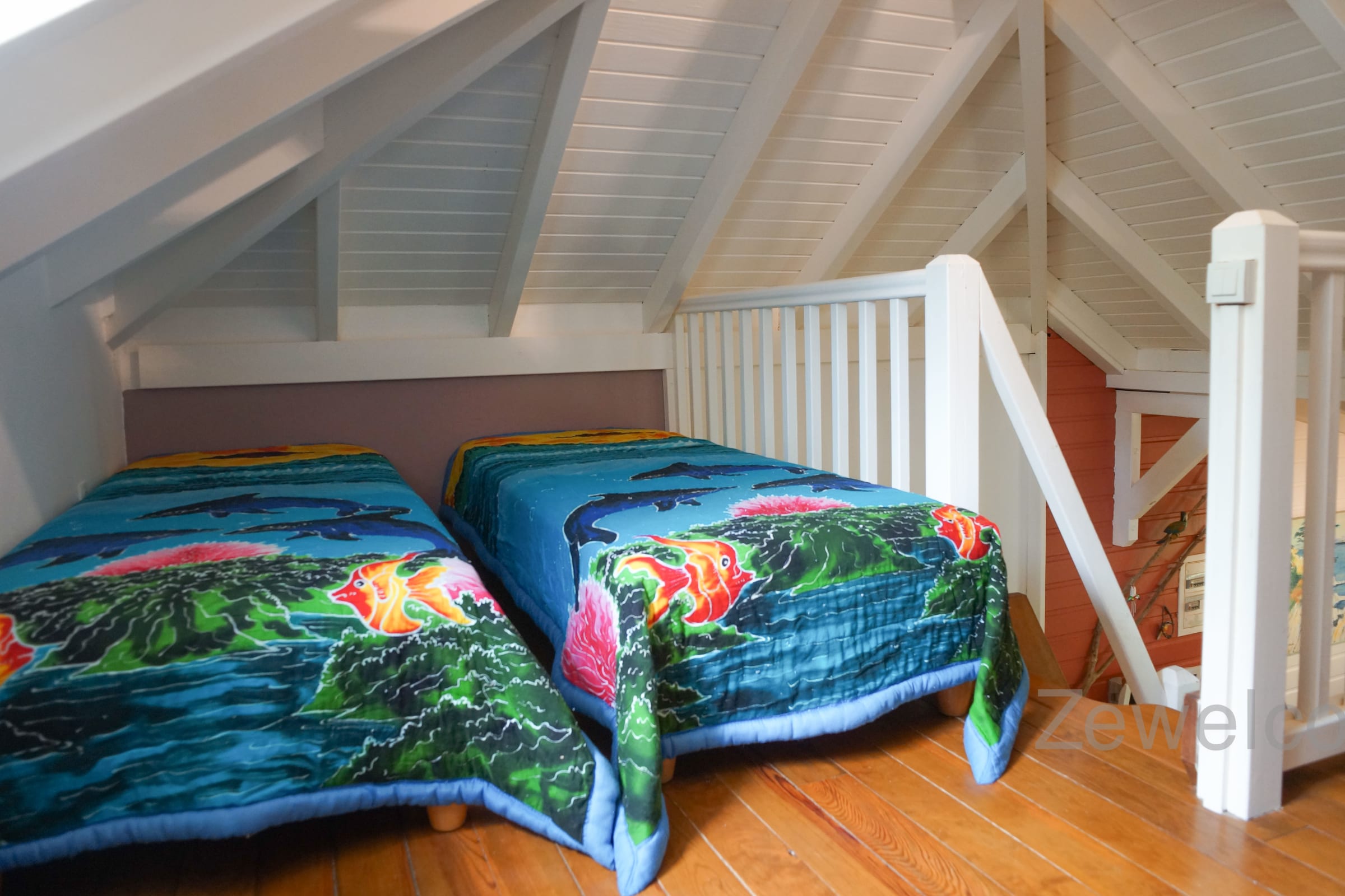 One bedroom with 2 double beds on the mezzanine and sofa bed in the living room.