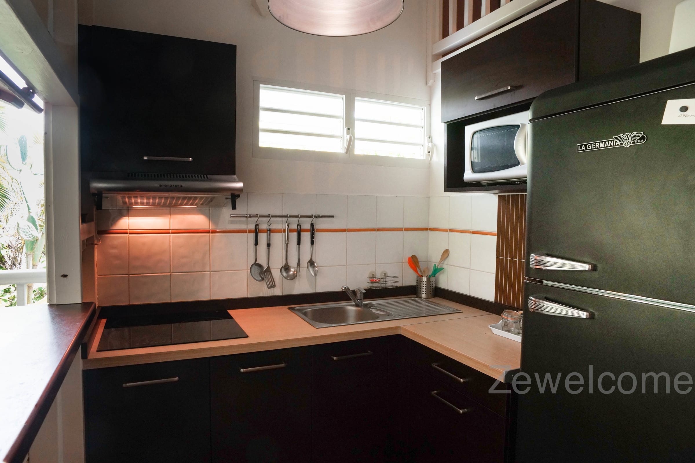 The kitchen is fully equipped. A flat pass will allow you to follow your meal from the kitchen directly to the terrace with a table and chairs,