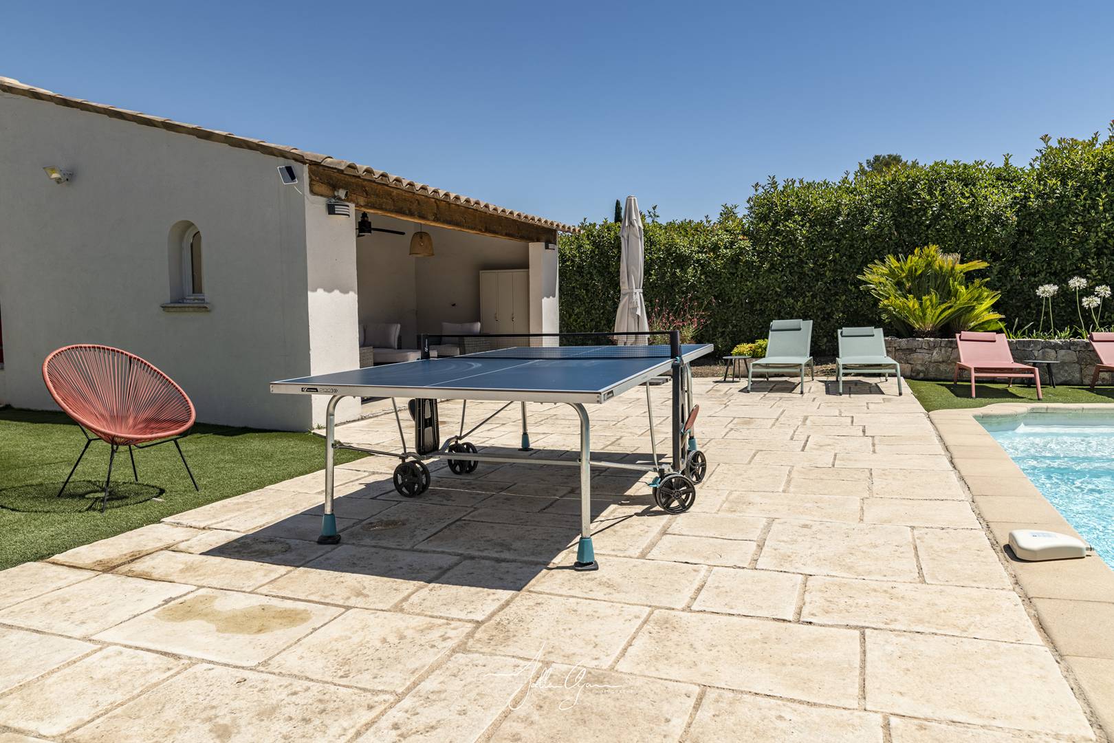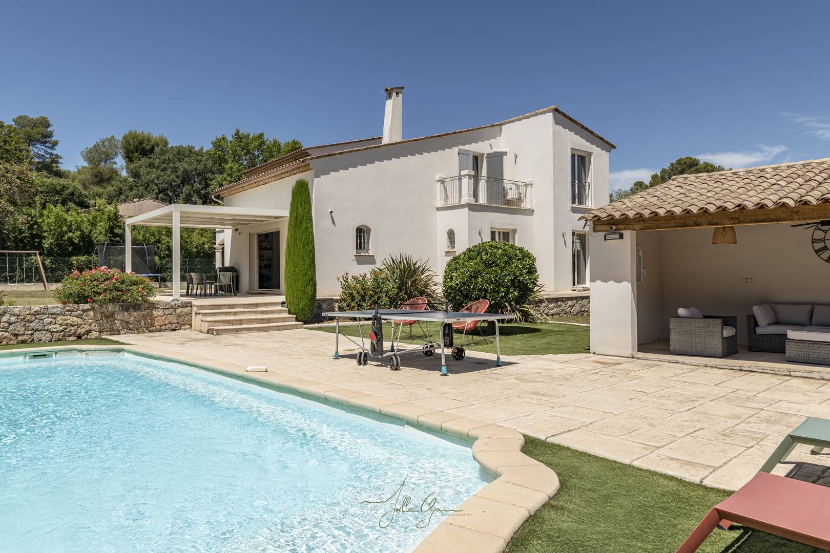 Contemporary villa (6-bedroom, 260 m², 2500m² of land) recently renovated and fully equipped - air conditioning, high-speed internet, new bedding and appliances, heated pool (April to October), trampoline, children's games.