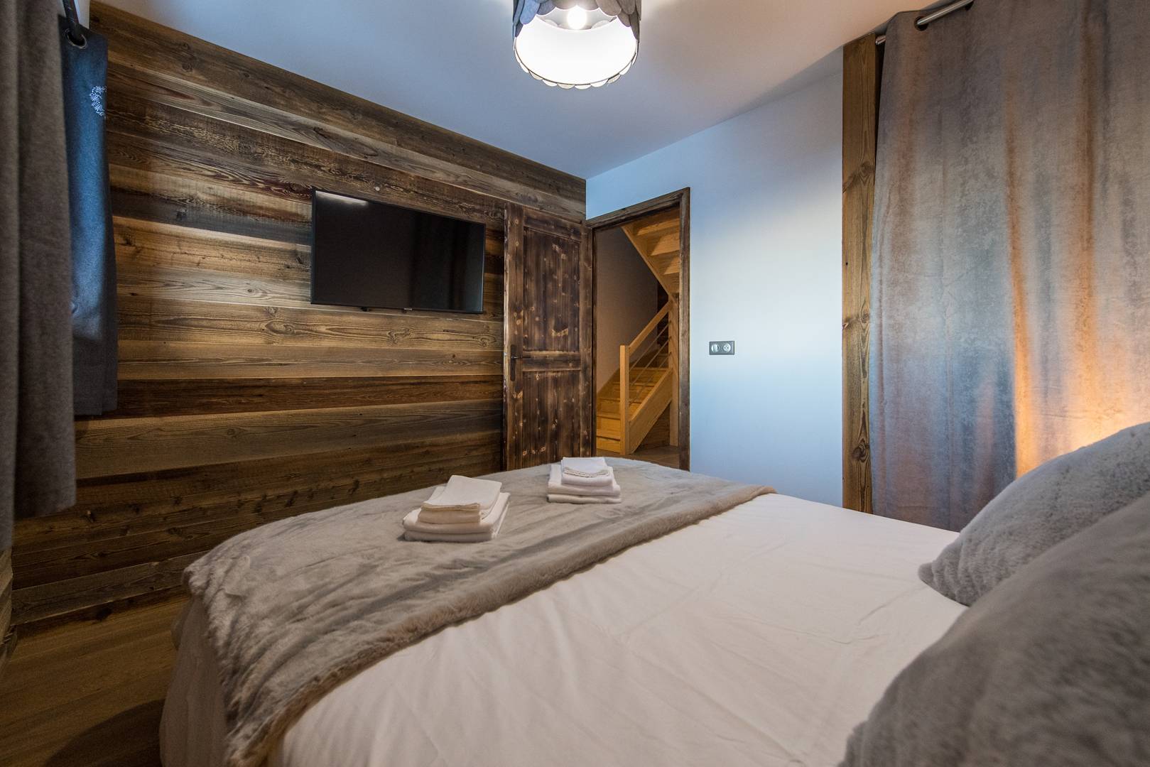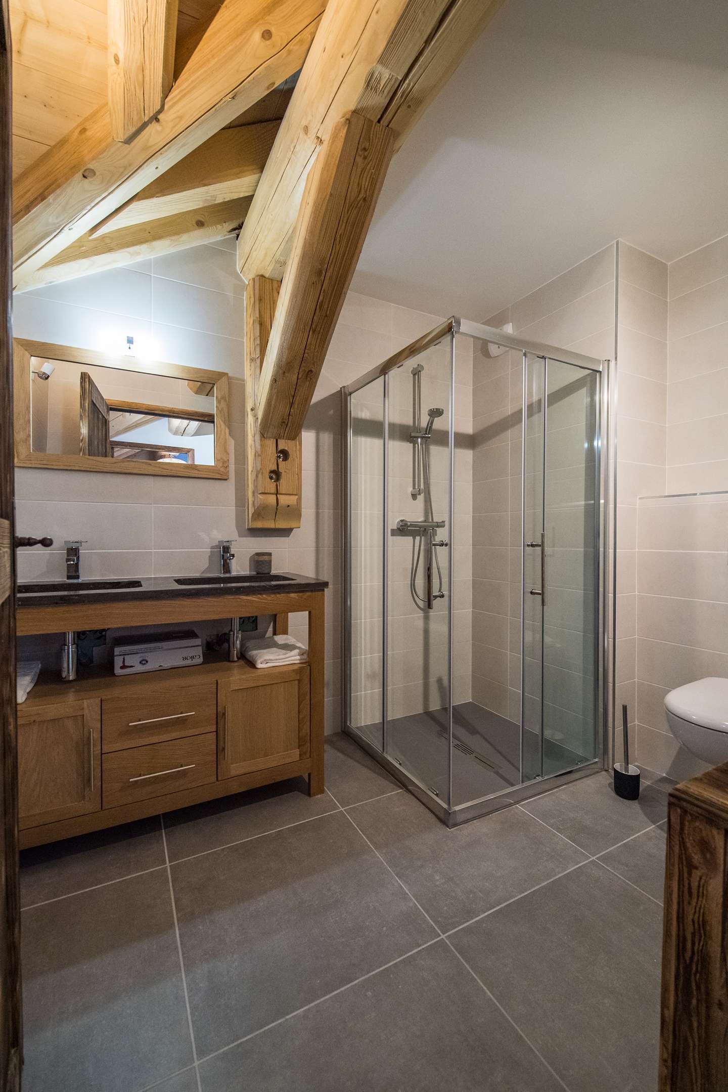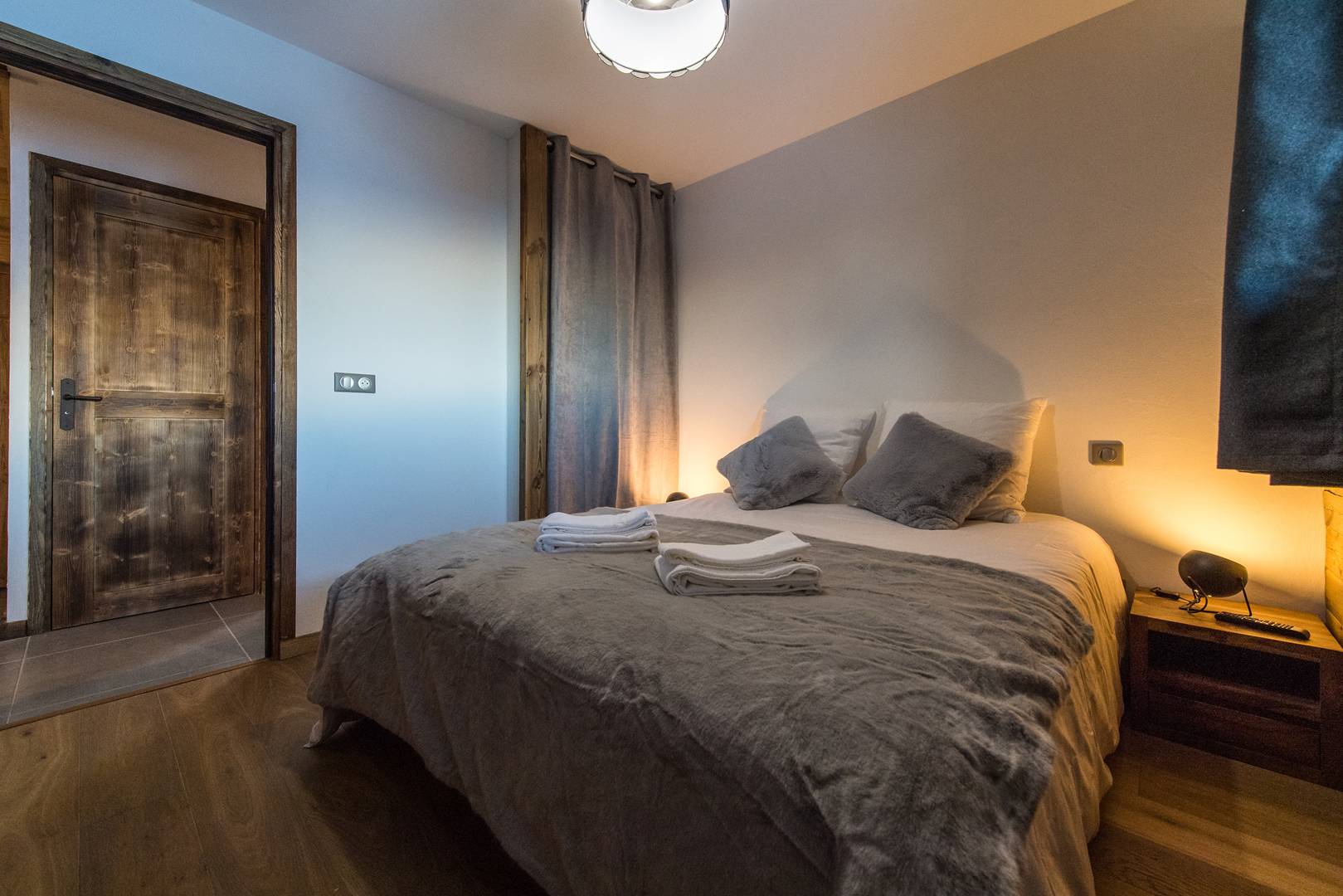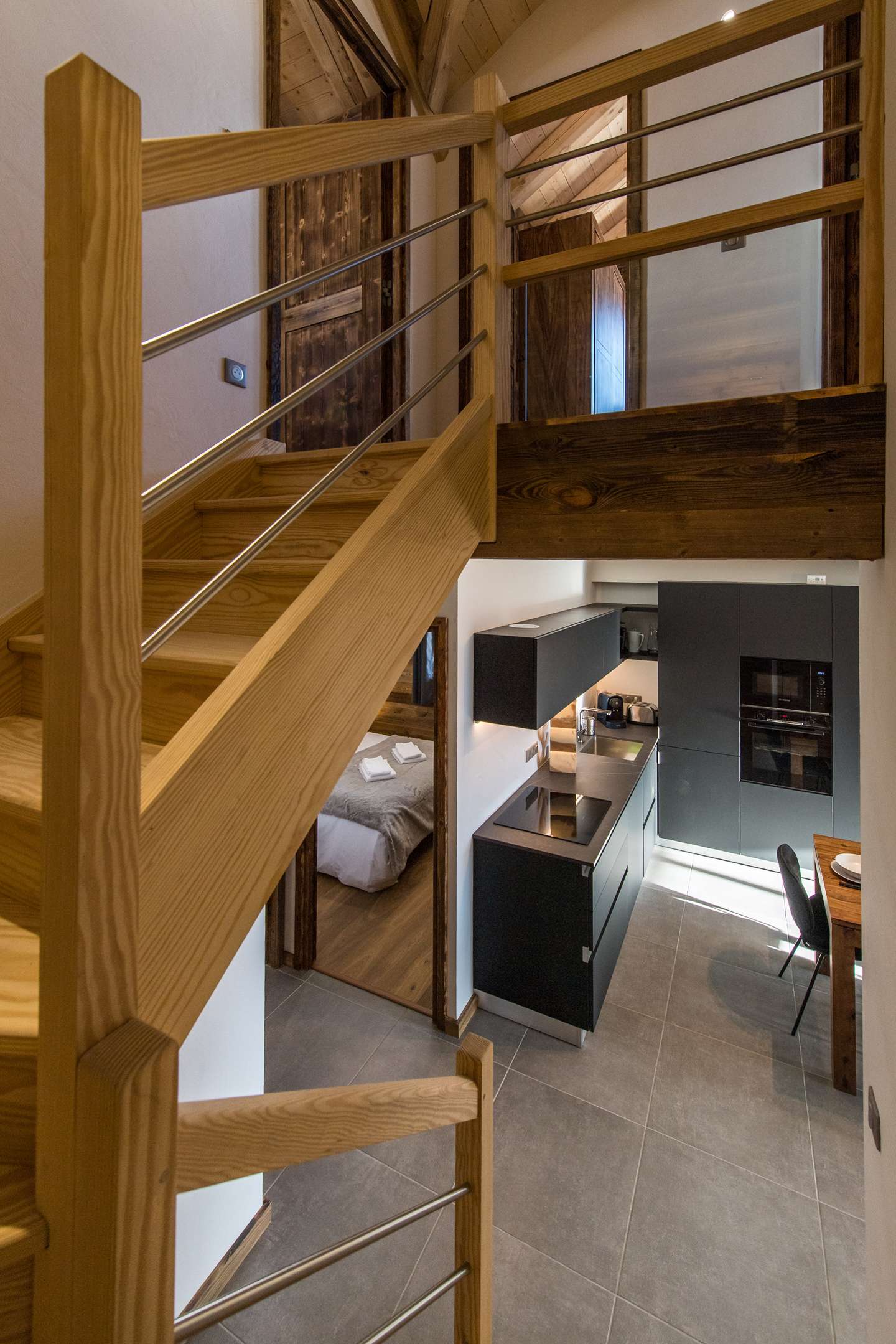 This 88m² ground floor offers a warm decoration in old wood and stone. The apartment is particularly luminous due to its southern exposure.