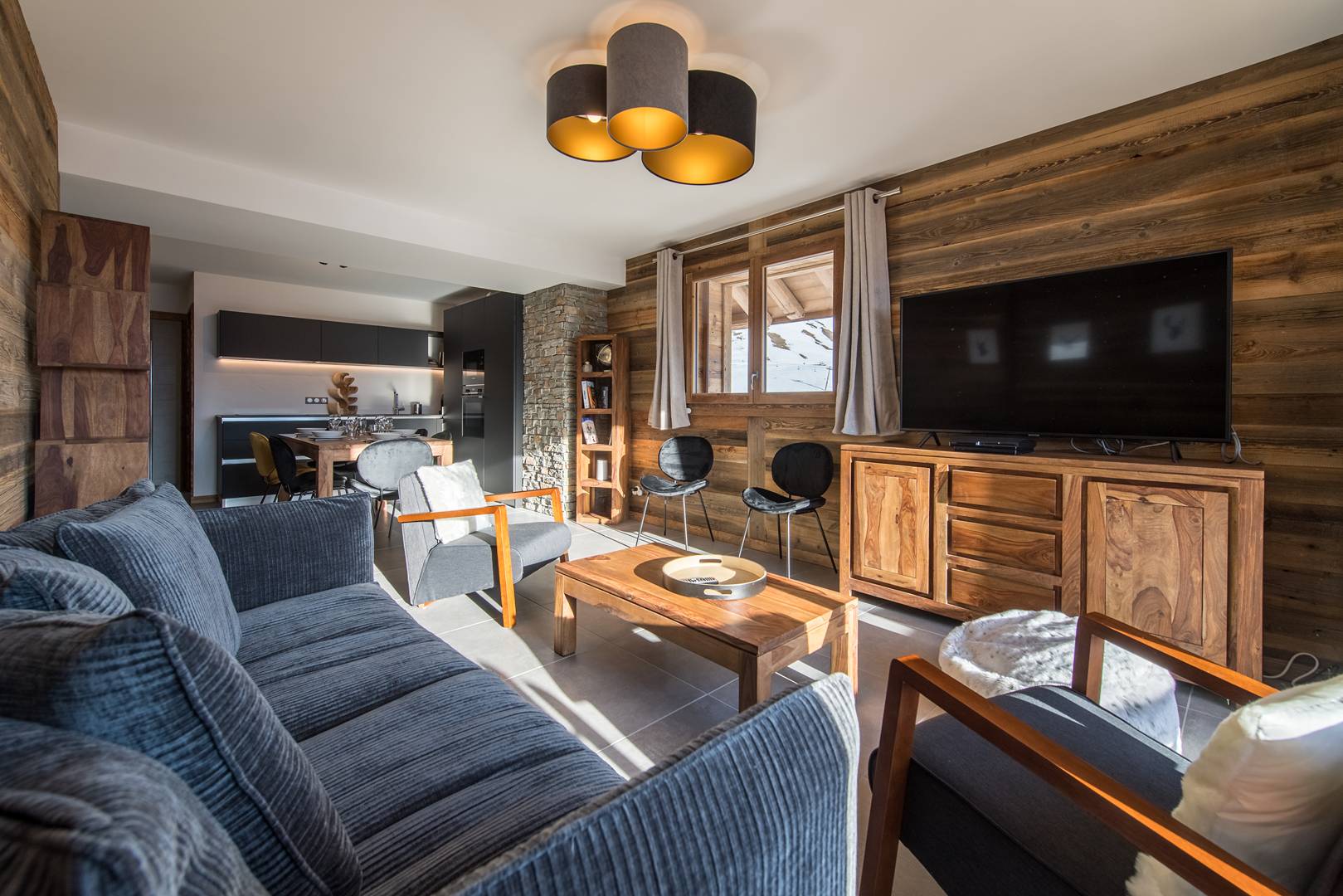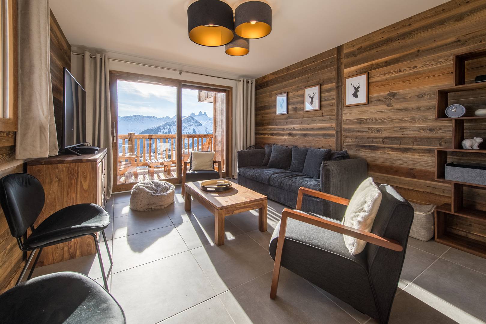 The apartment consists of a living room opening onto a balcony and the sublime view of the Aiguilles d'Arves. The living room offers a lounge - dining area and an equipped kitchen.