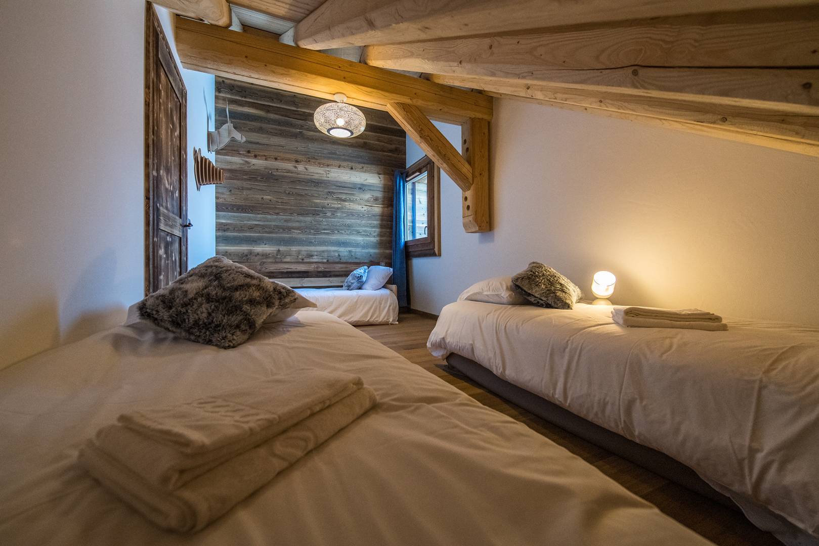 Upstairs, the second bedroom has 3 single beds and a pull-out bed.