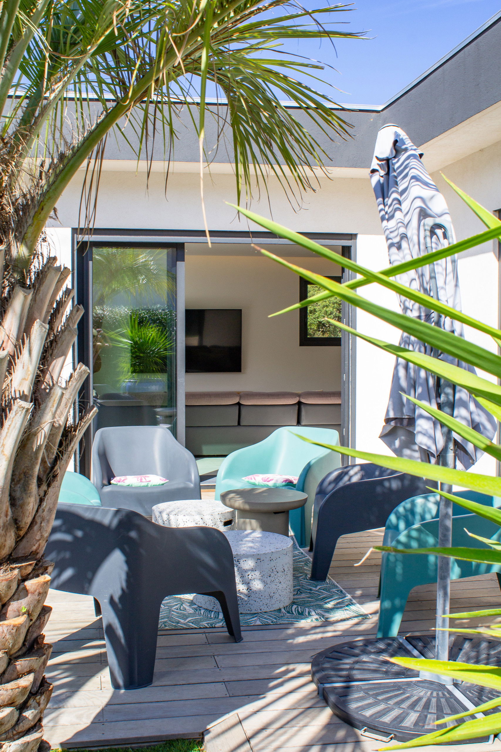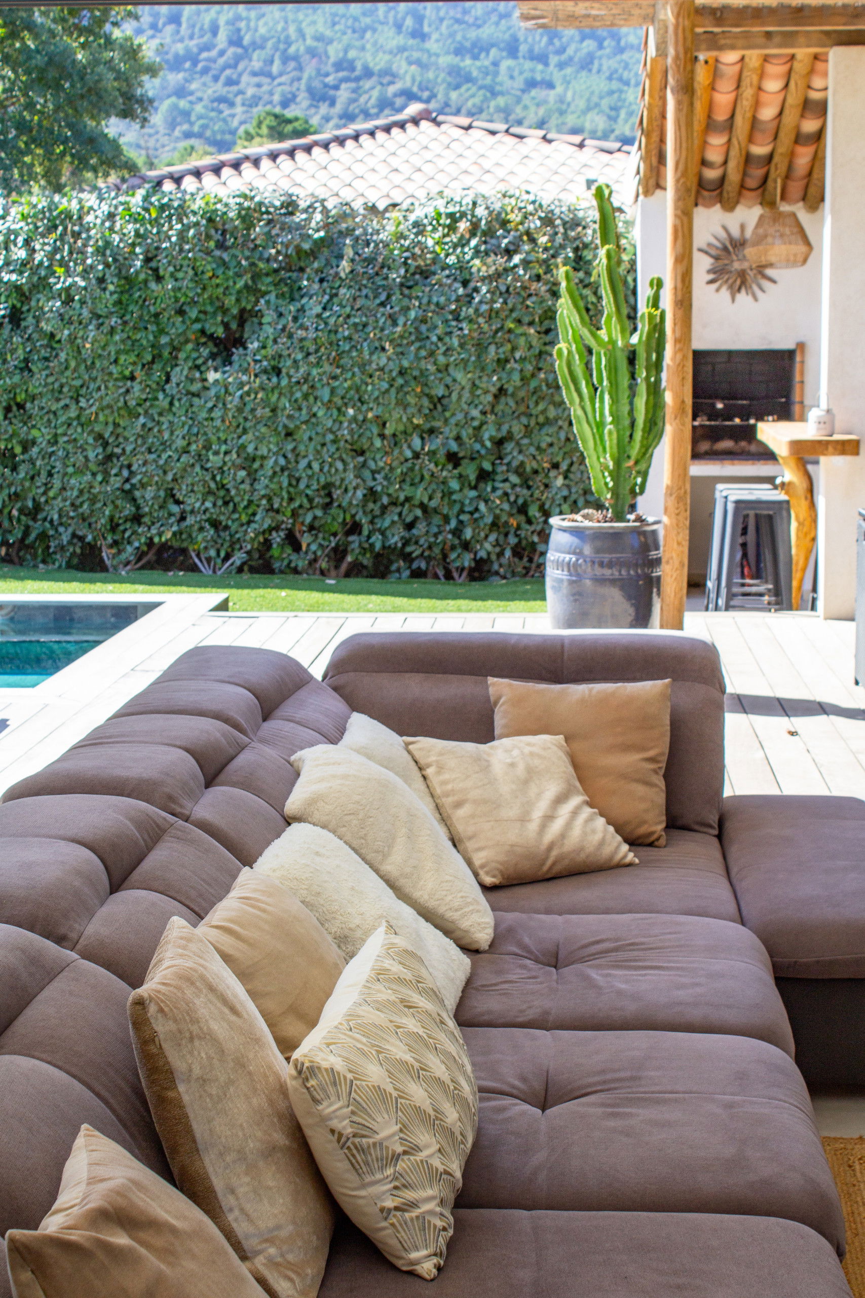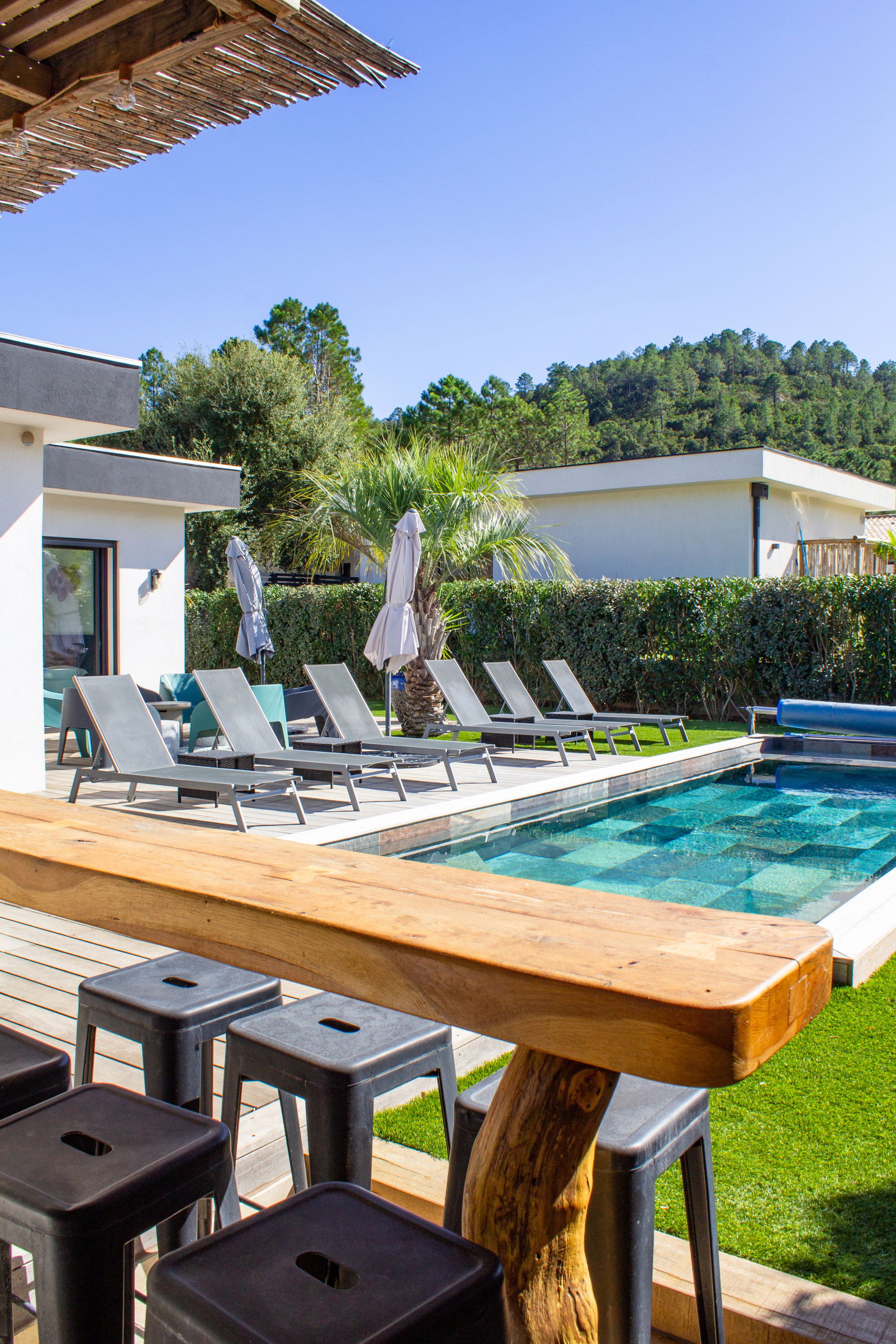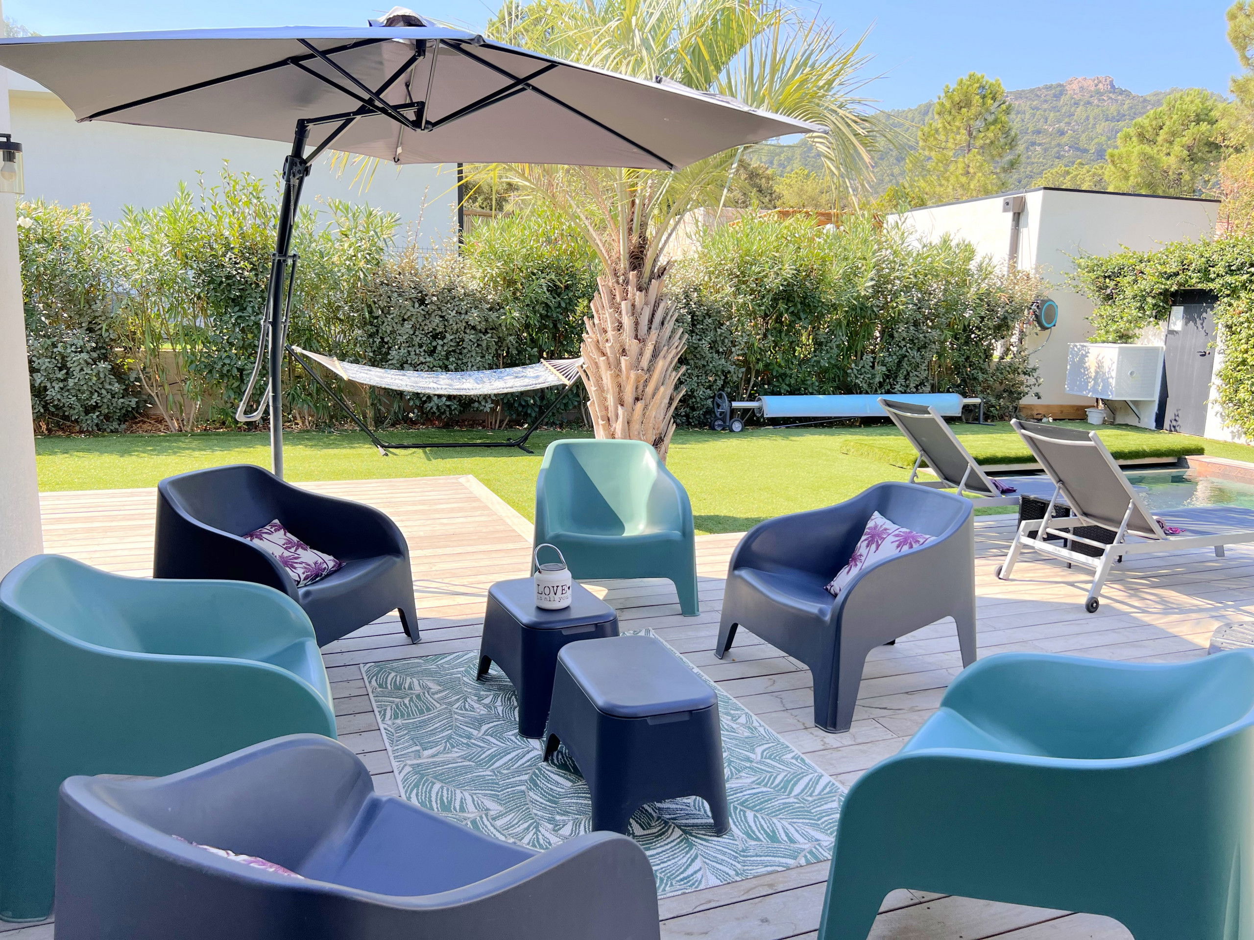 - A dining area sheltered from the sun in order to share a lunch or a dinner outdoors, facing the swimming pool