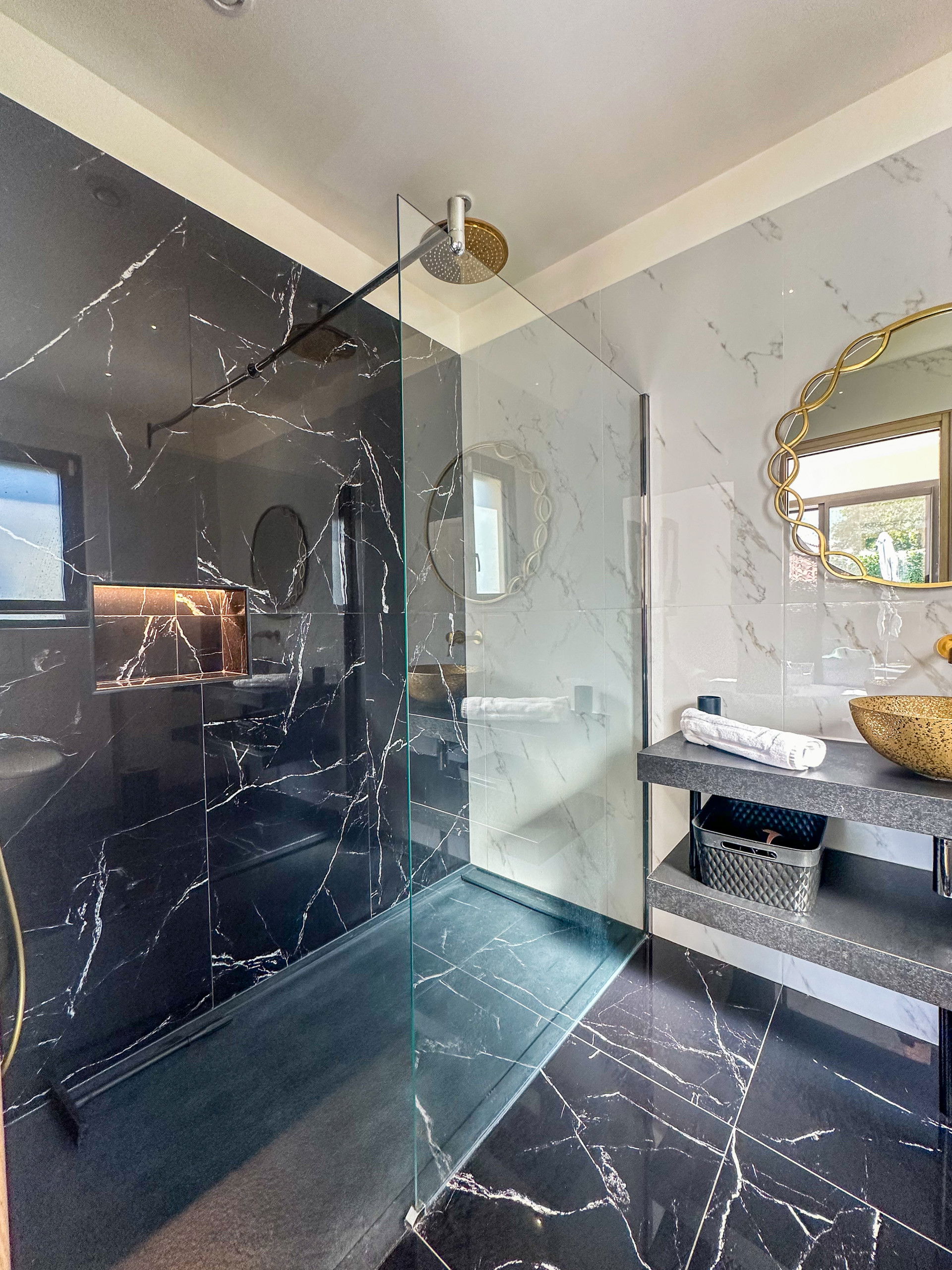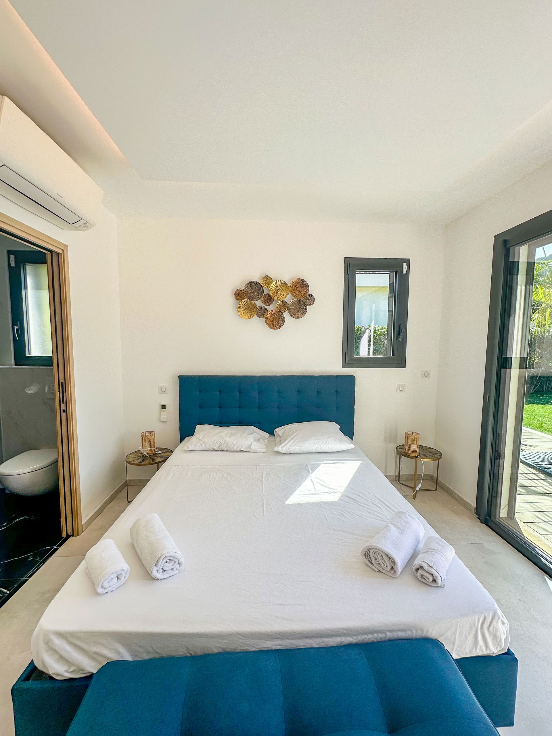 The 3 master suites are equipped with a large walk-in shower each and have direct access to the terrace and the swimming pool.