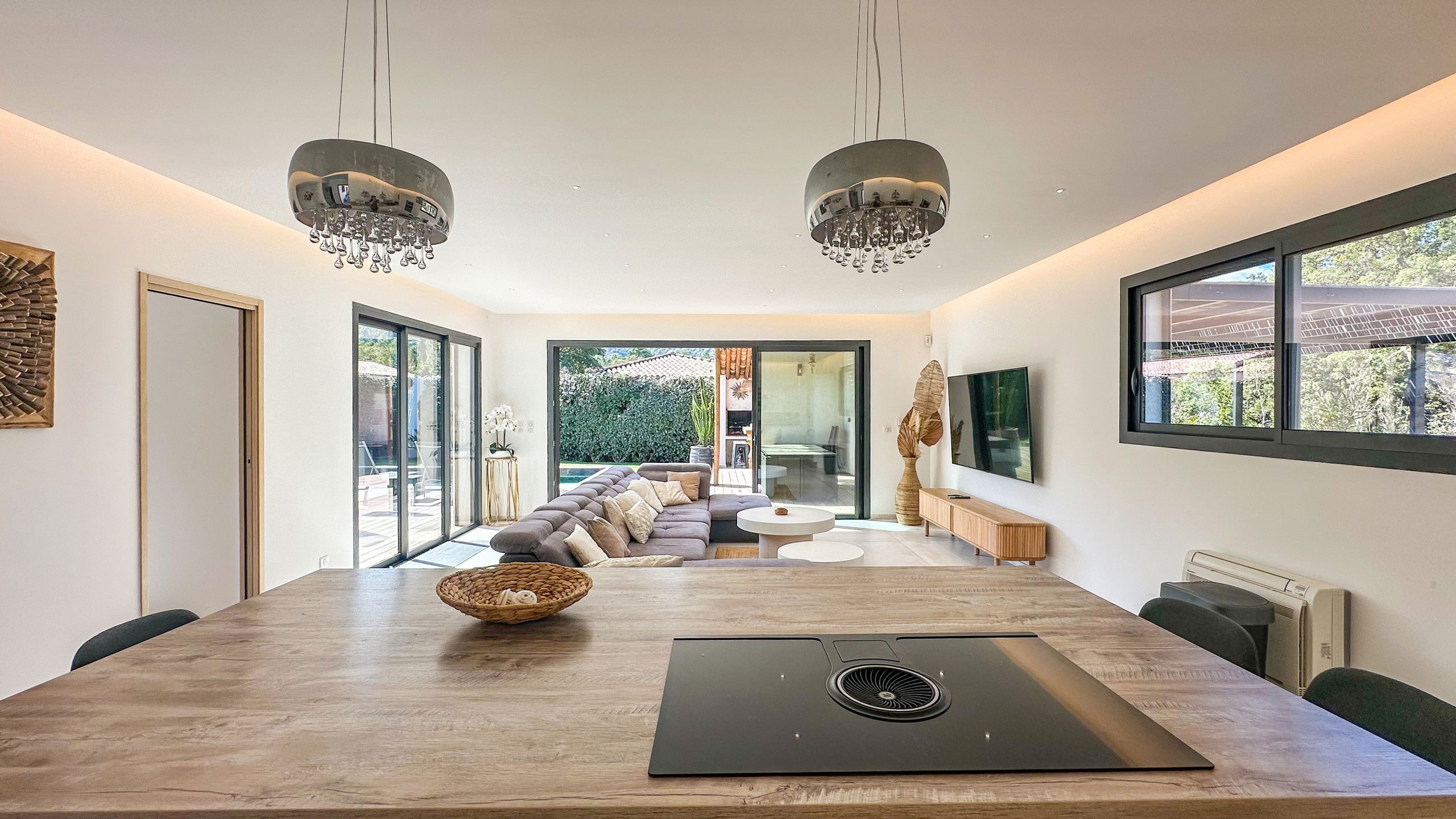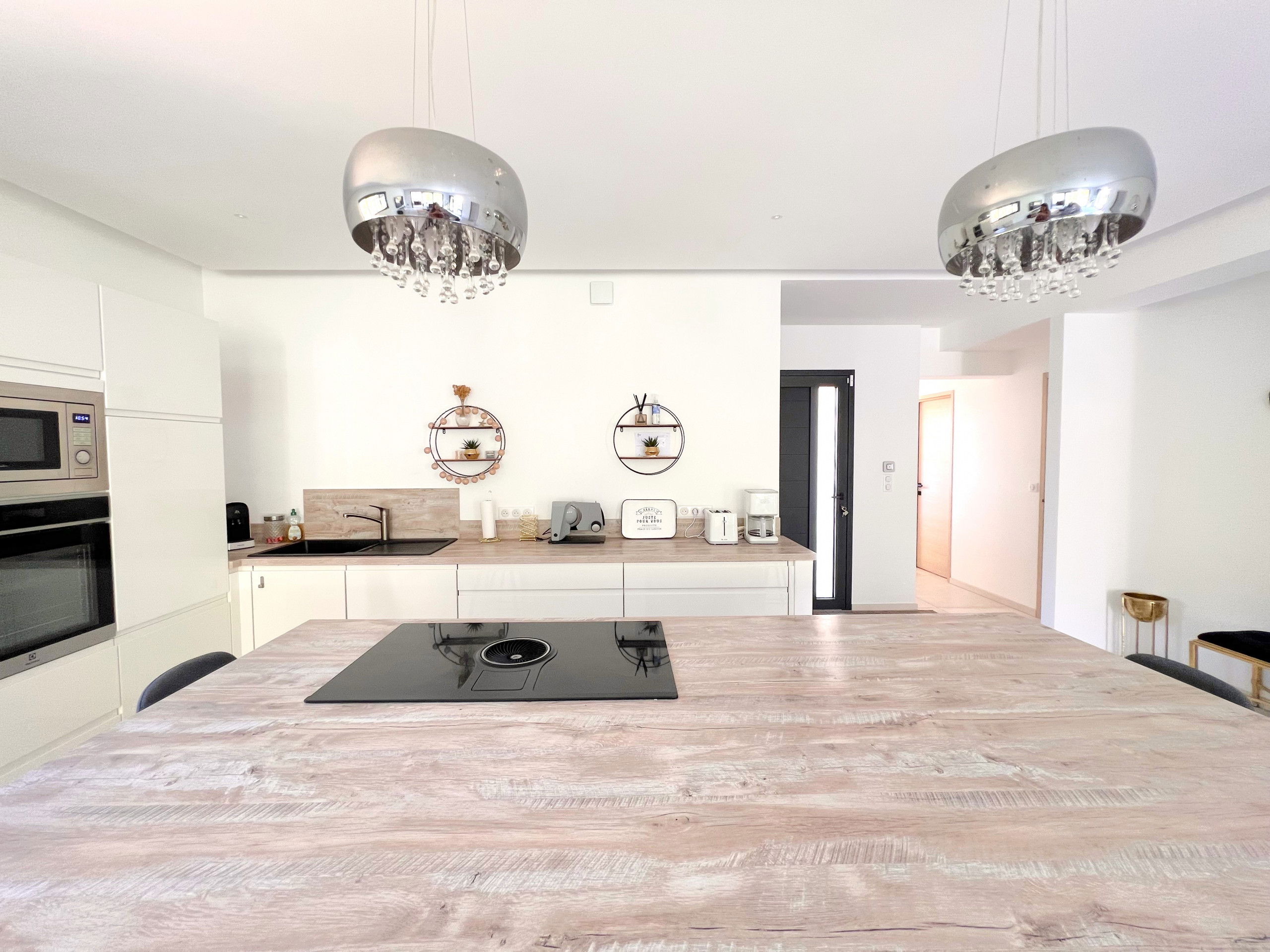 - A large kitchen equipped with oven, microwave, induction hob, fridge, freezer, dishwasher, Nespresso coffee machine, kettle, toaster…