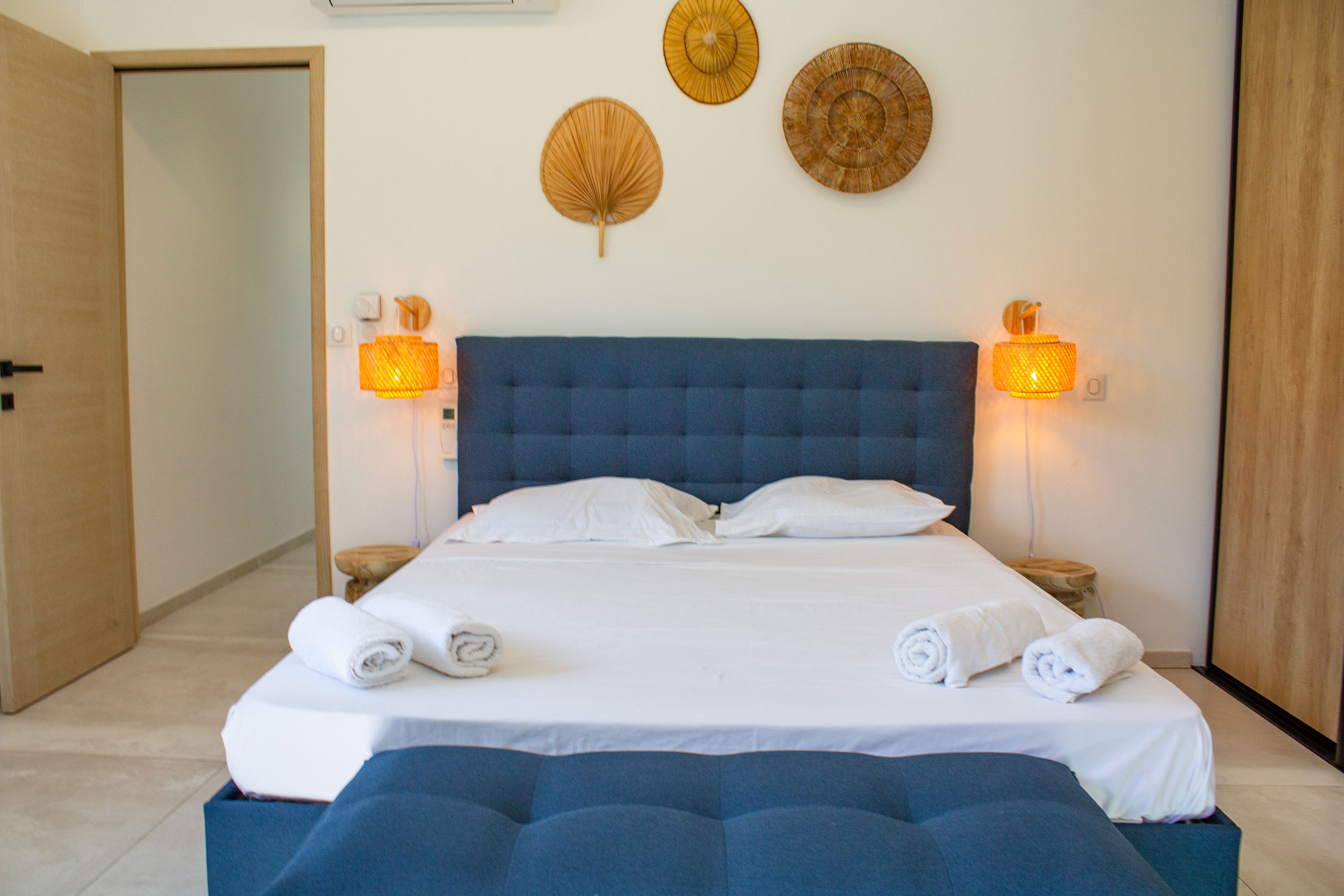 - Bedroom 1: master suite with Queen Size bed (160 * 200) with private shower room, toilet, closet