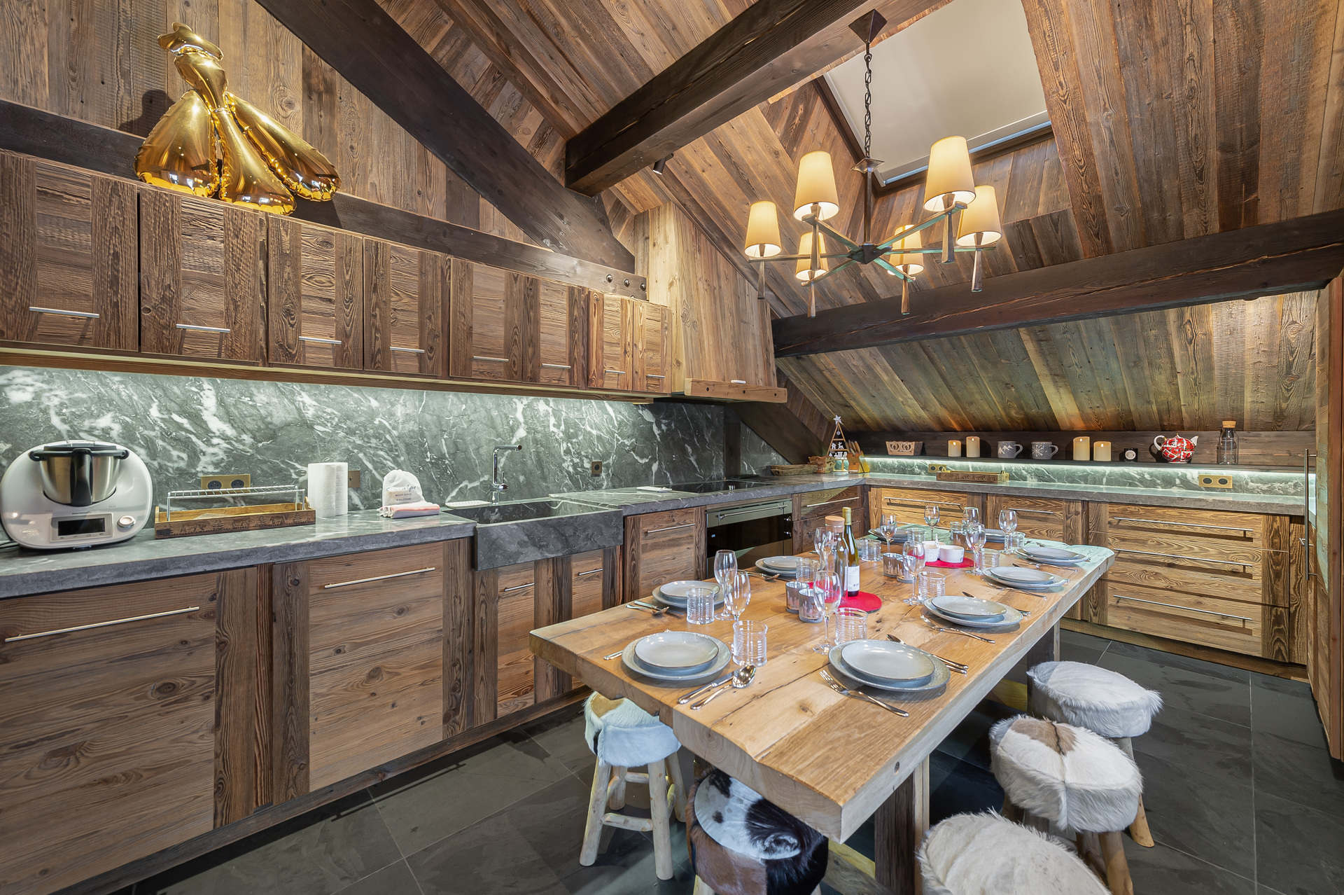 - Closed fitted kitchen with large dining table: