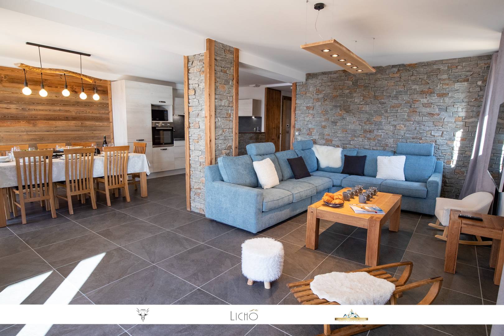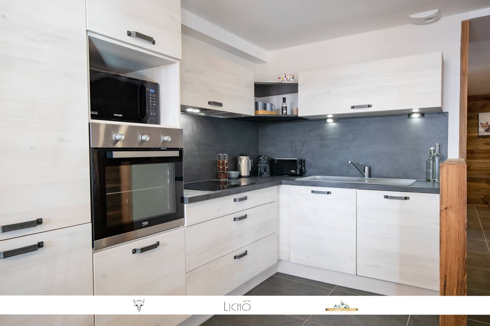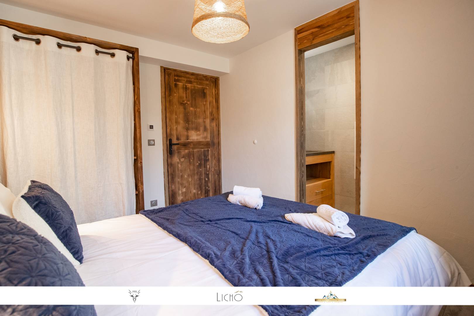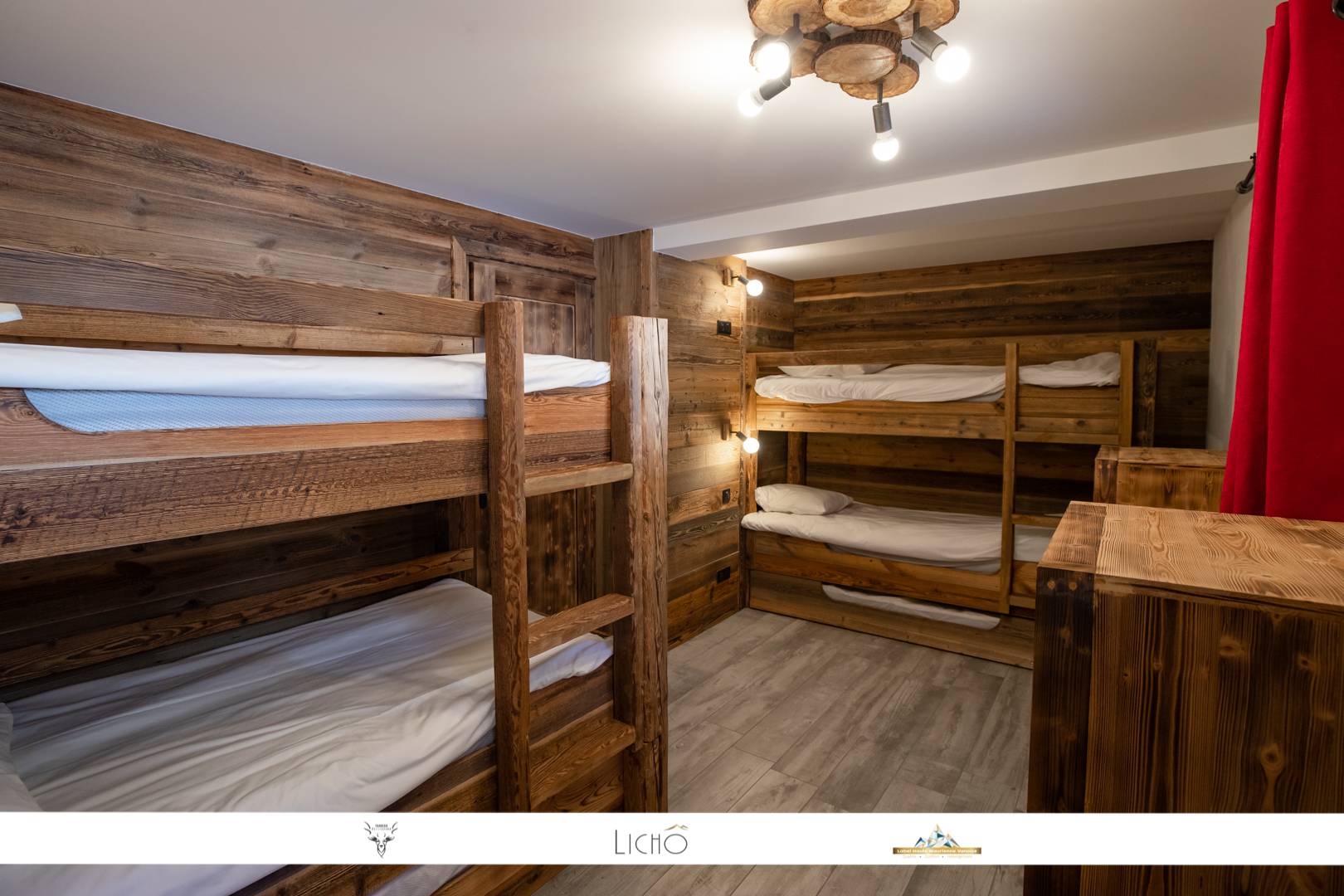 The apartment consists of a large living room opening onto a balcony facing south and offering a sublime view of the surrounding nature and the slopes. This room offers a lounge area, a dining room and a fully equipped kitchen. The kitchen is equipped with all the necessary comforts (dishwasher, induction hob, oven, microwave, Nespresso ...)