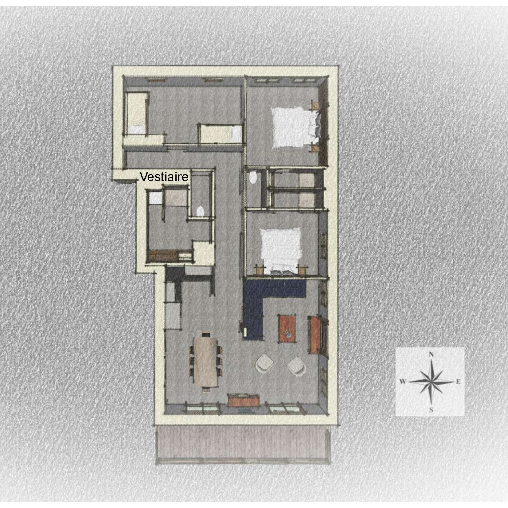 This apartment offers a modern and warm decoration and high quality equipment. The triple exposure South, East and North allows to benefit from a great luminosity and a varied panorama.
