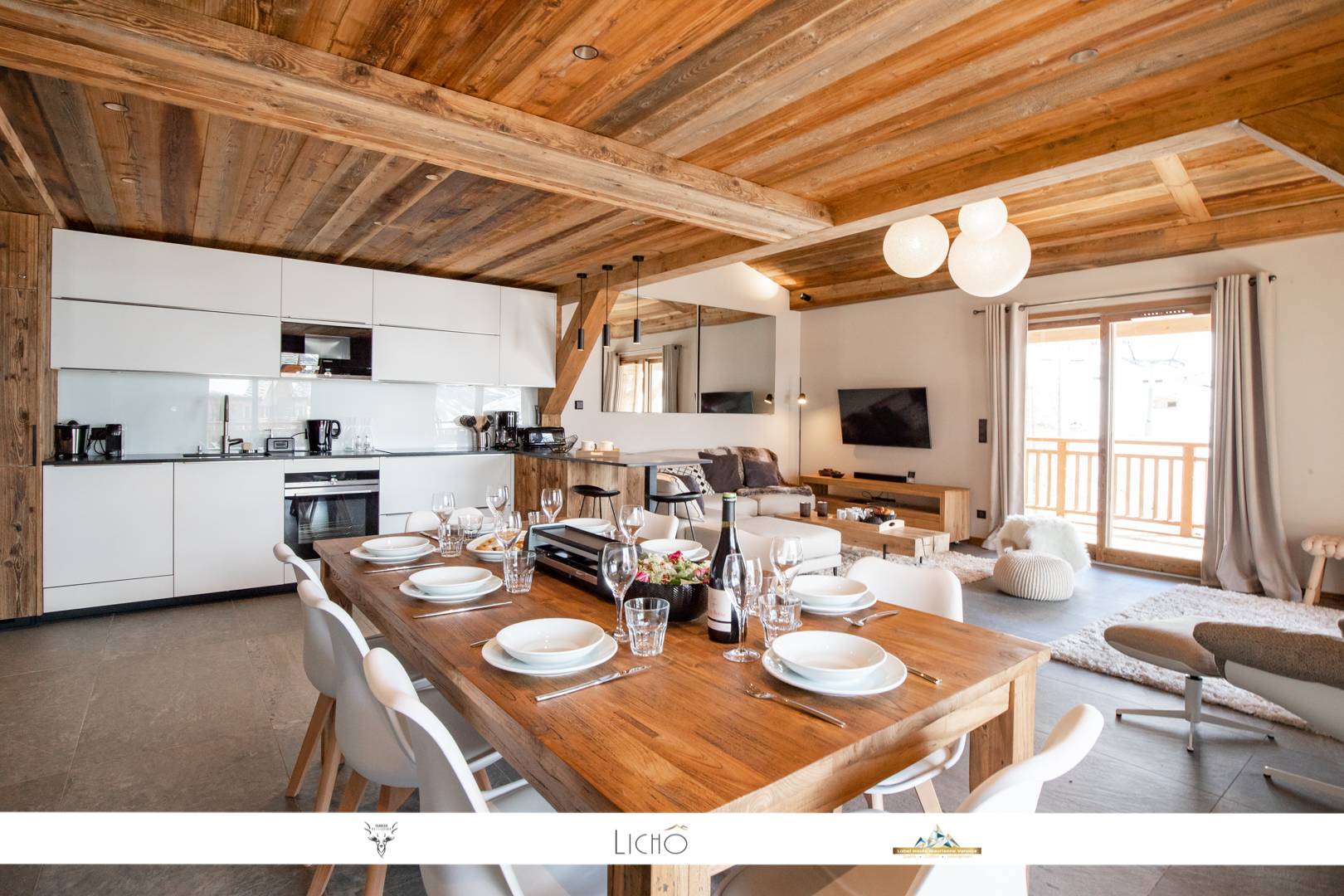 - The kitchen is equipped with an induction hob, extractor hood, oven, refrigerator, dishwasher, and small appliances: kettle, toaster, Nespresso coffee machine, electric citrus press, raclette machine, fondue machine ... dishes and kitchen accessories: wine glasses, champagne flutes ...
