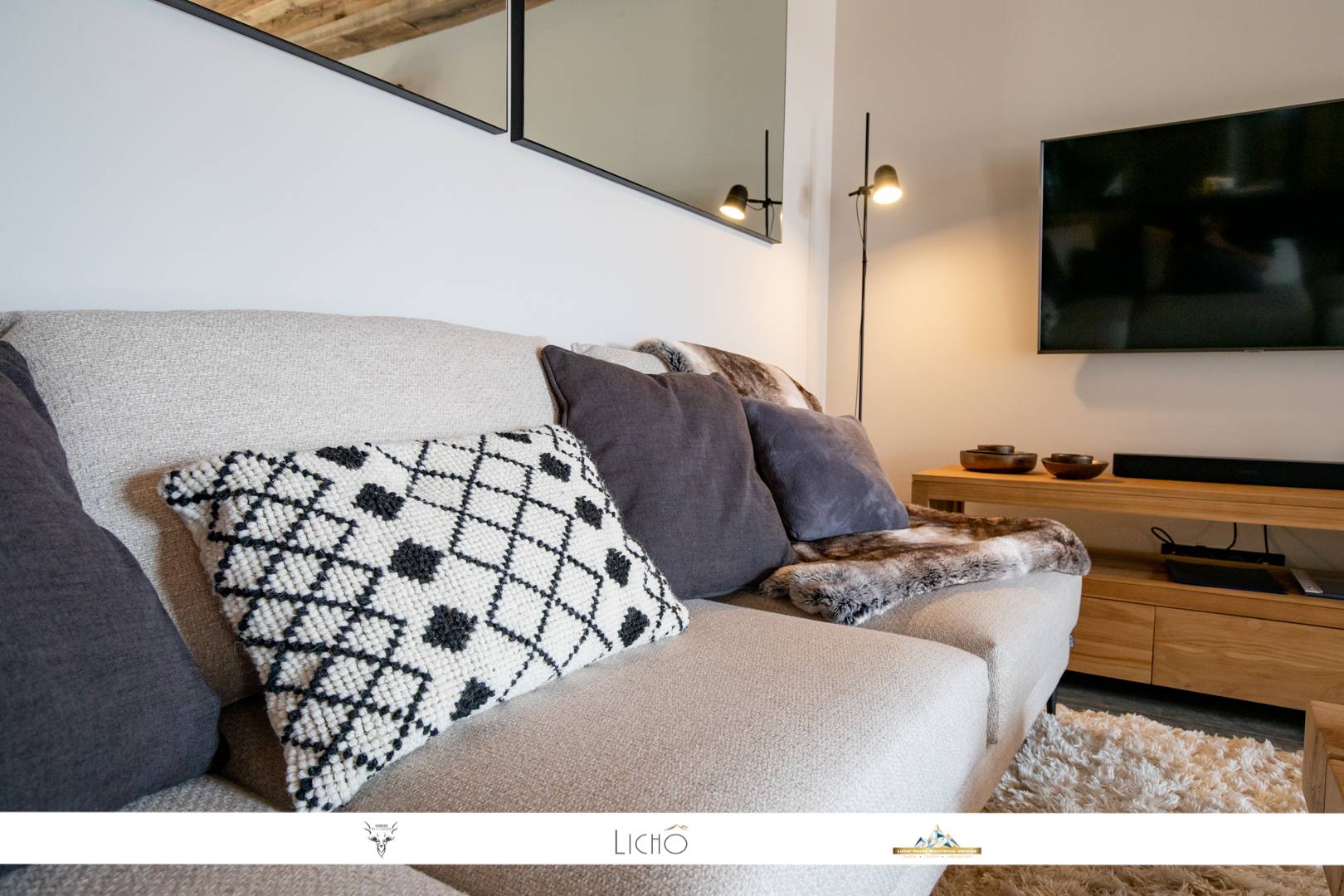 - A large attic living space offers a generous volume. It is very bright thanks to a double exposure with direct access to the balcony. It is equipped with sofas and armchairs furnished with cushions and throws, a Smart TV with sound bar and wifi speaker. Coming up a wood stove to spend the winter evenings.