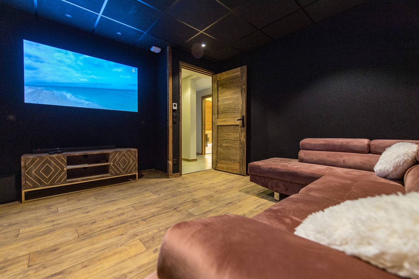 This space also accommodates a toilet as well as a sauna and a laundry room. And for cinephiles or even those who want to occupy the children at the time of the aperitif: a home cinema !!!