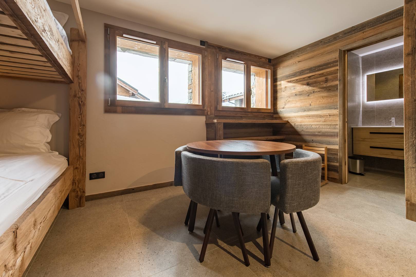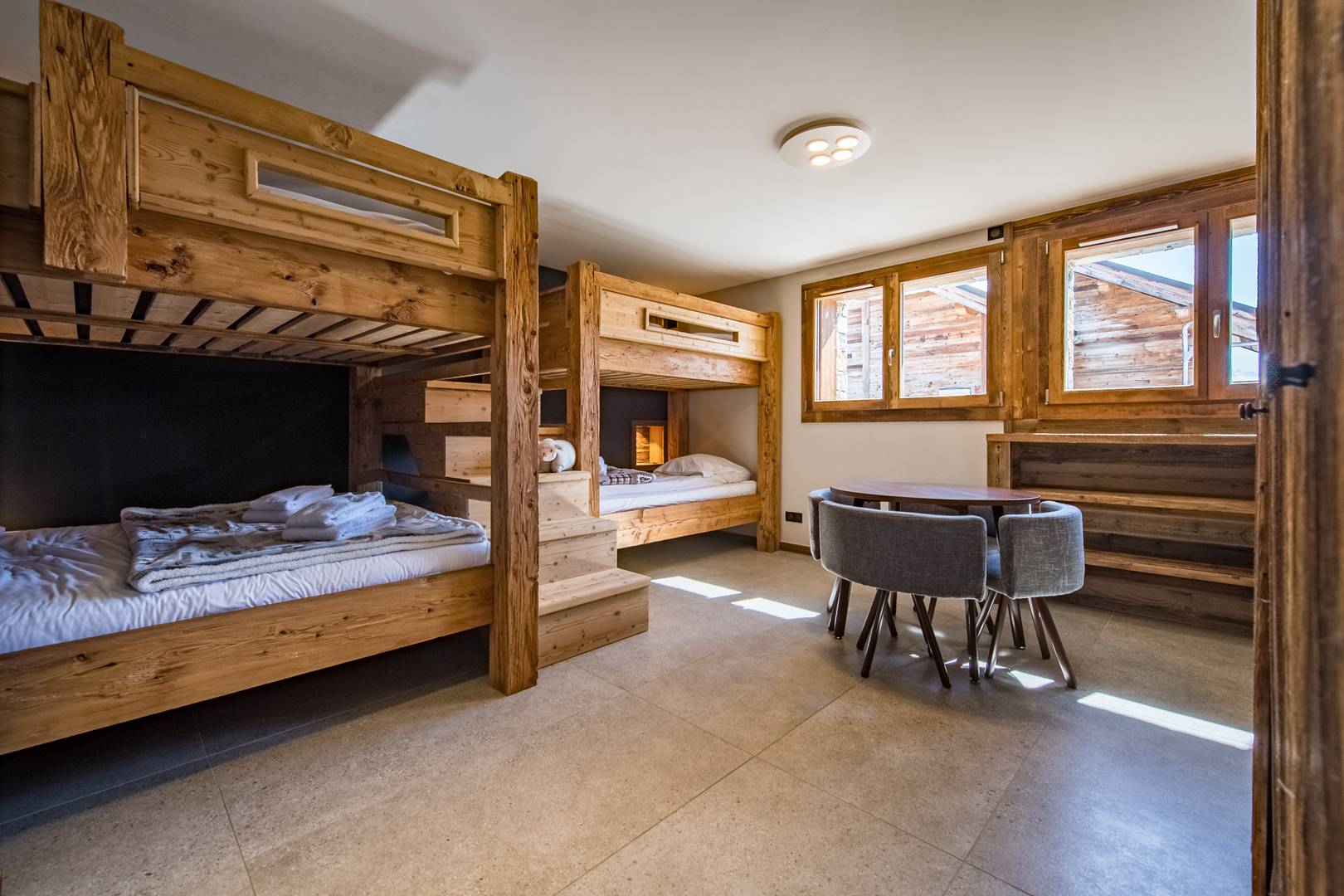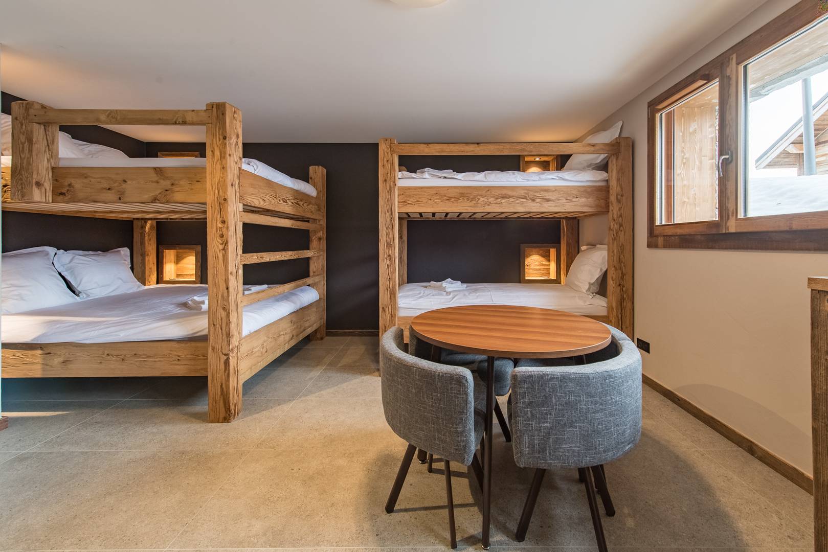 The dormitory offers 4 bunk beds up to 6: 2 90x200 beds and 2 160x200 beds, ideal for small and large children.