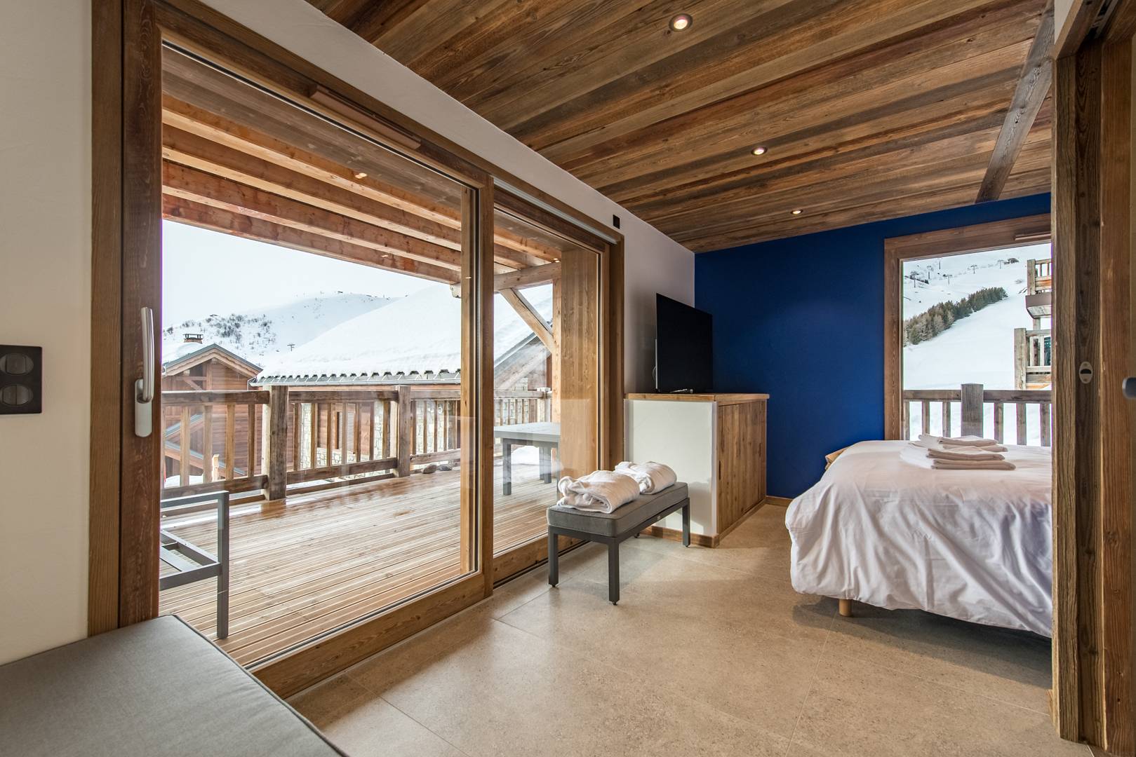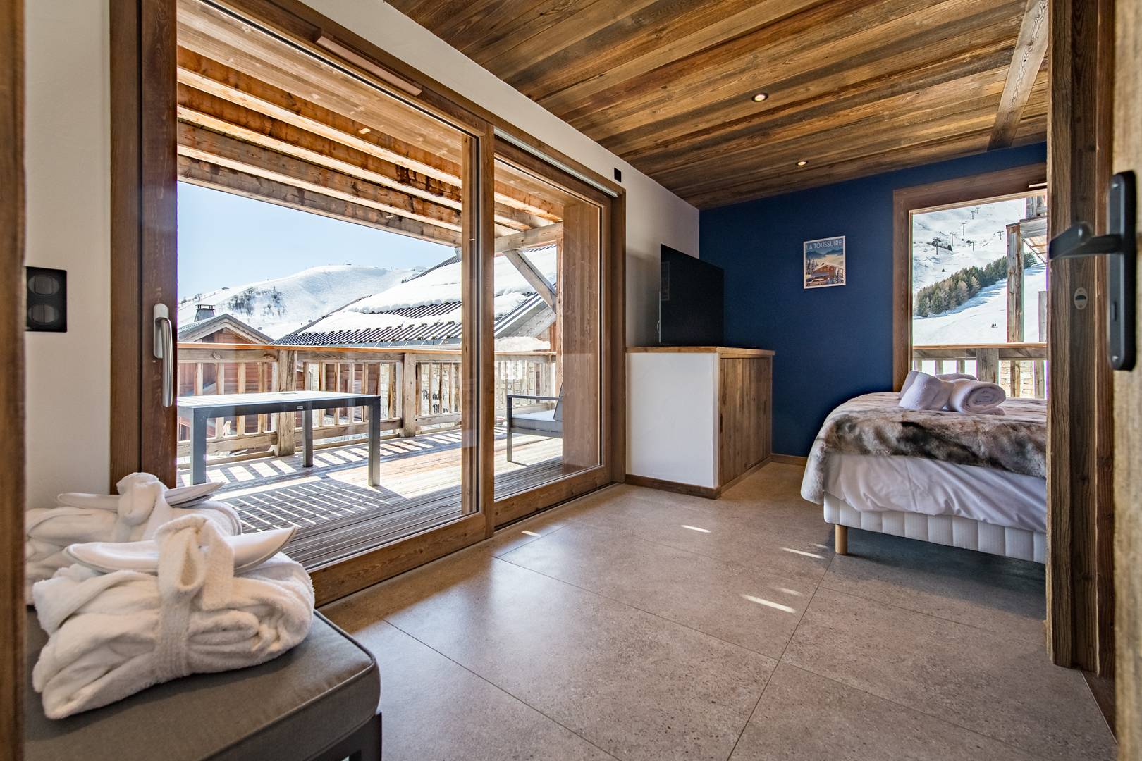 In each of them, you will find personalized decoration as well as the following comfort equipment: TV, towel dryer and storage. Two bedrooms are south facing and one has a terrace.