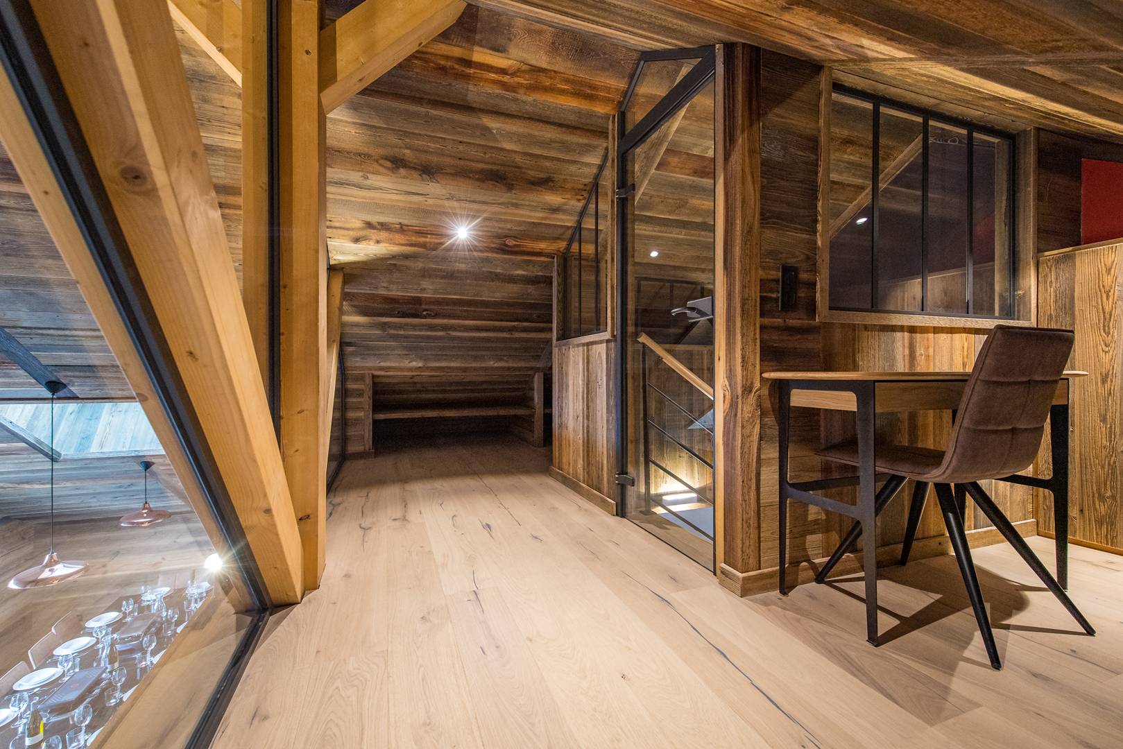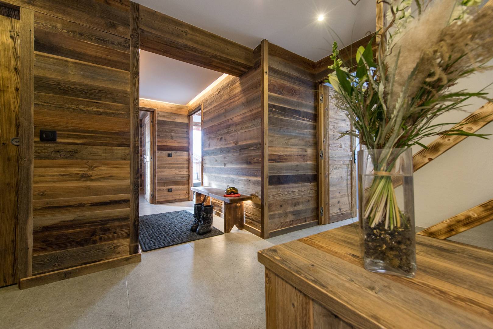 You can enter the chalet either through the main entrance or through the ski room to store ski equipment warm and safe.