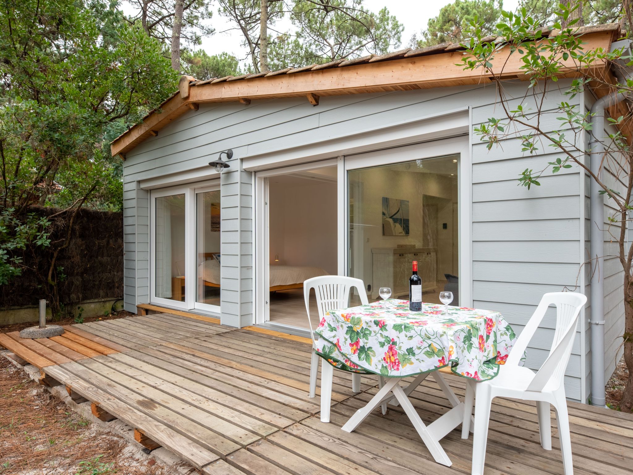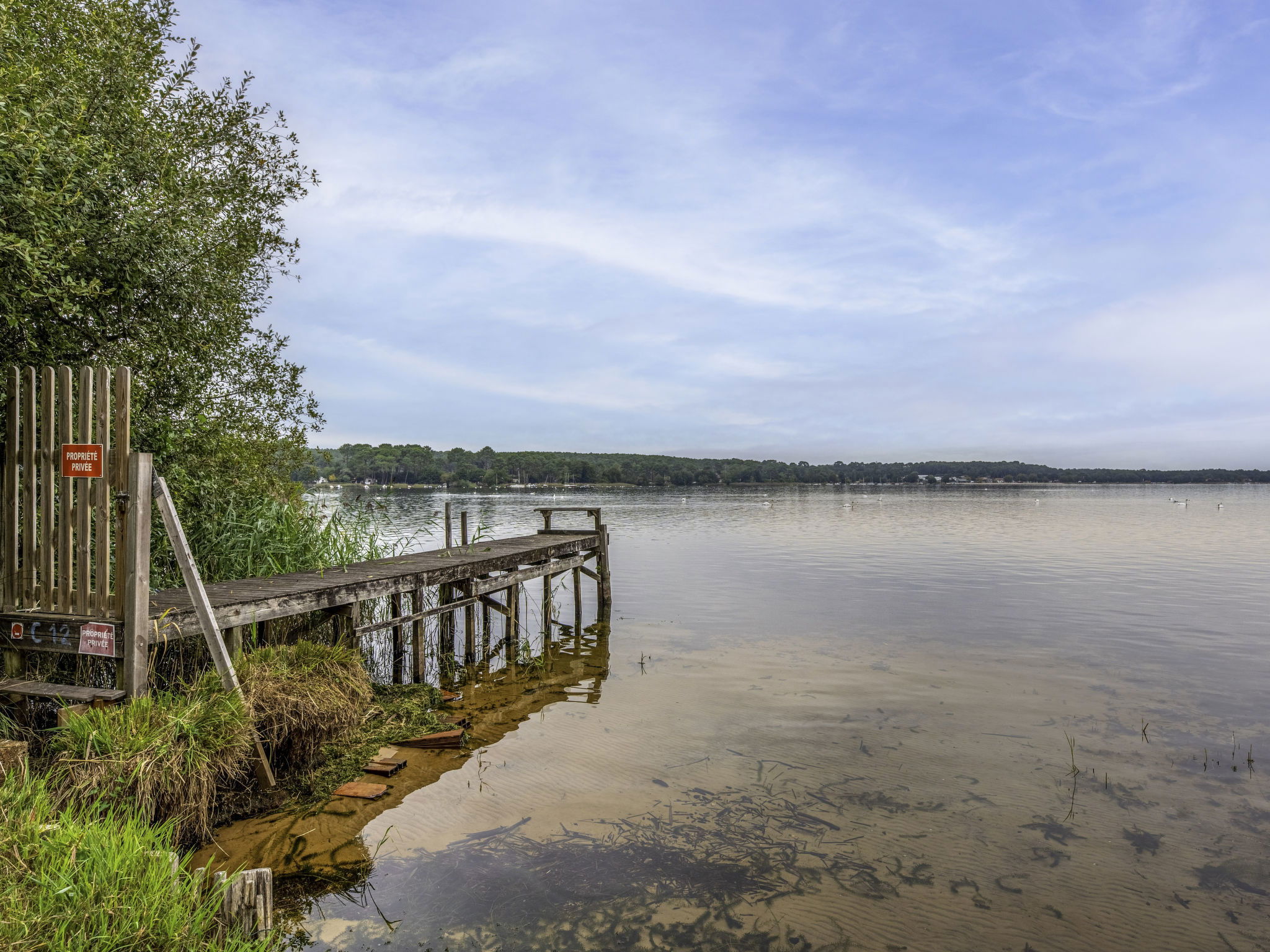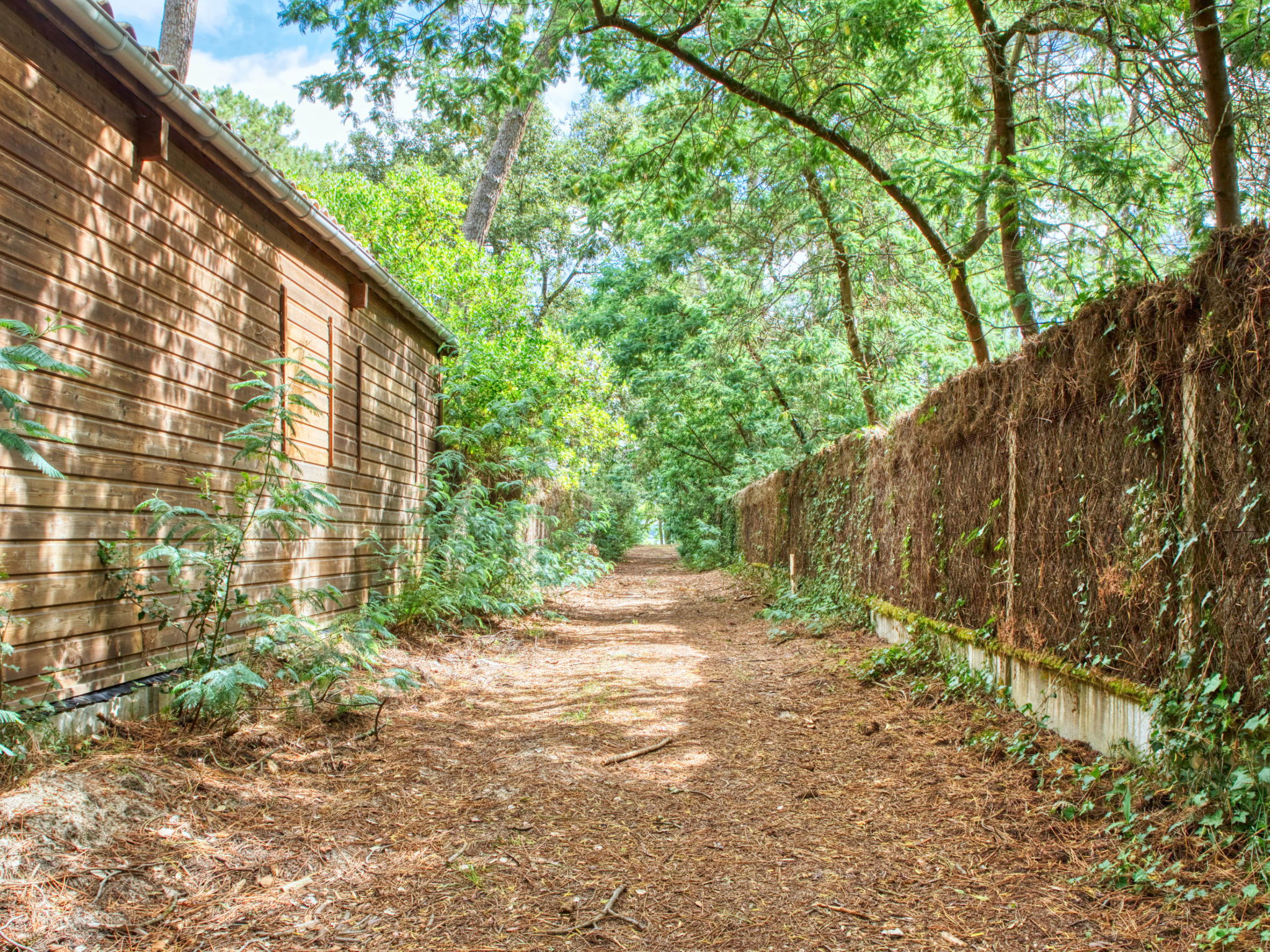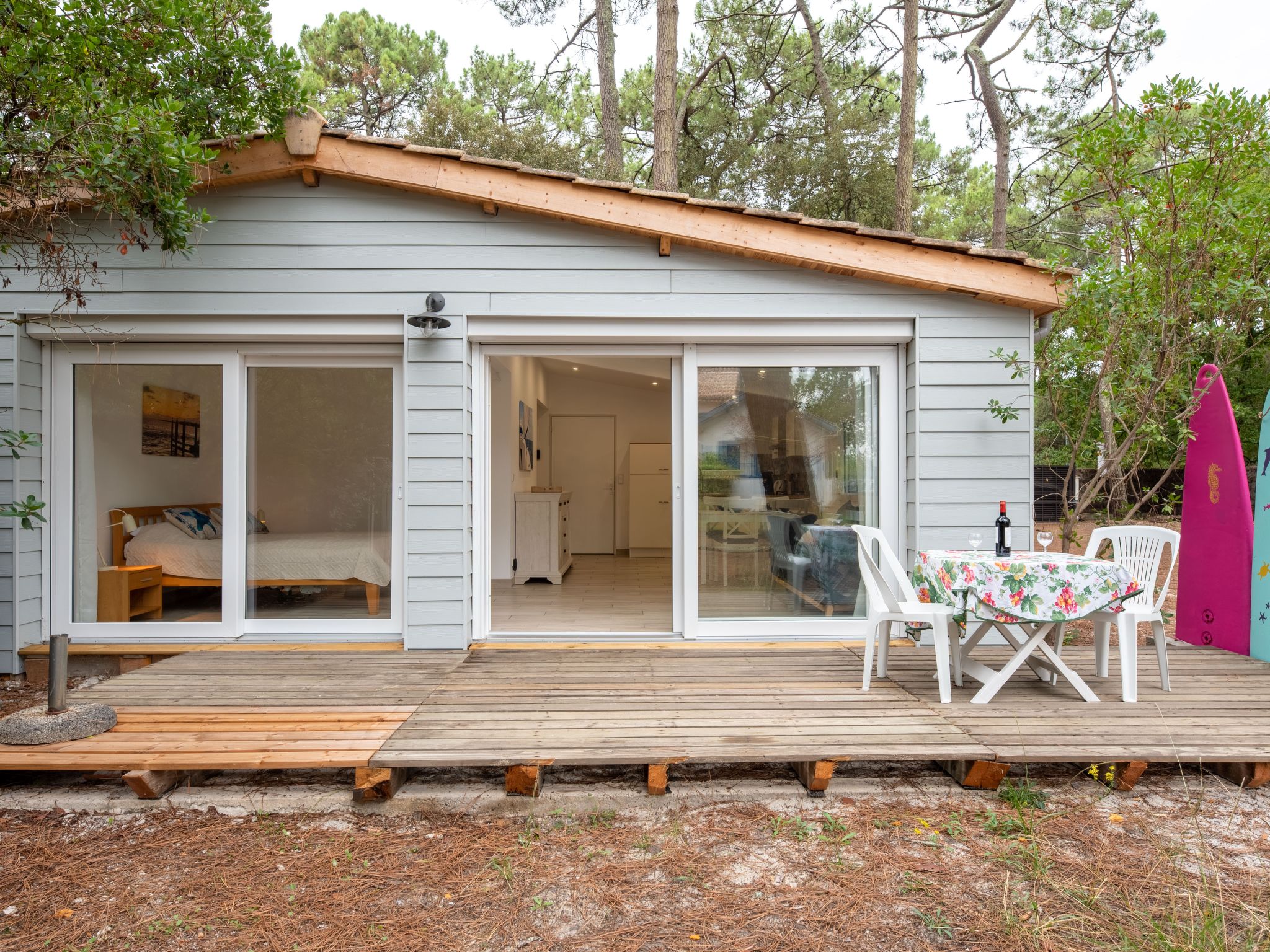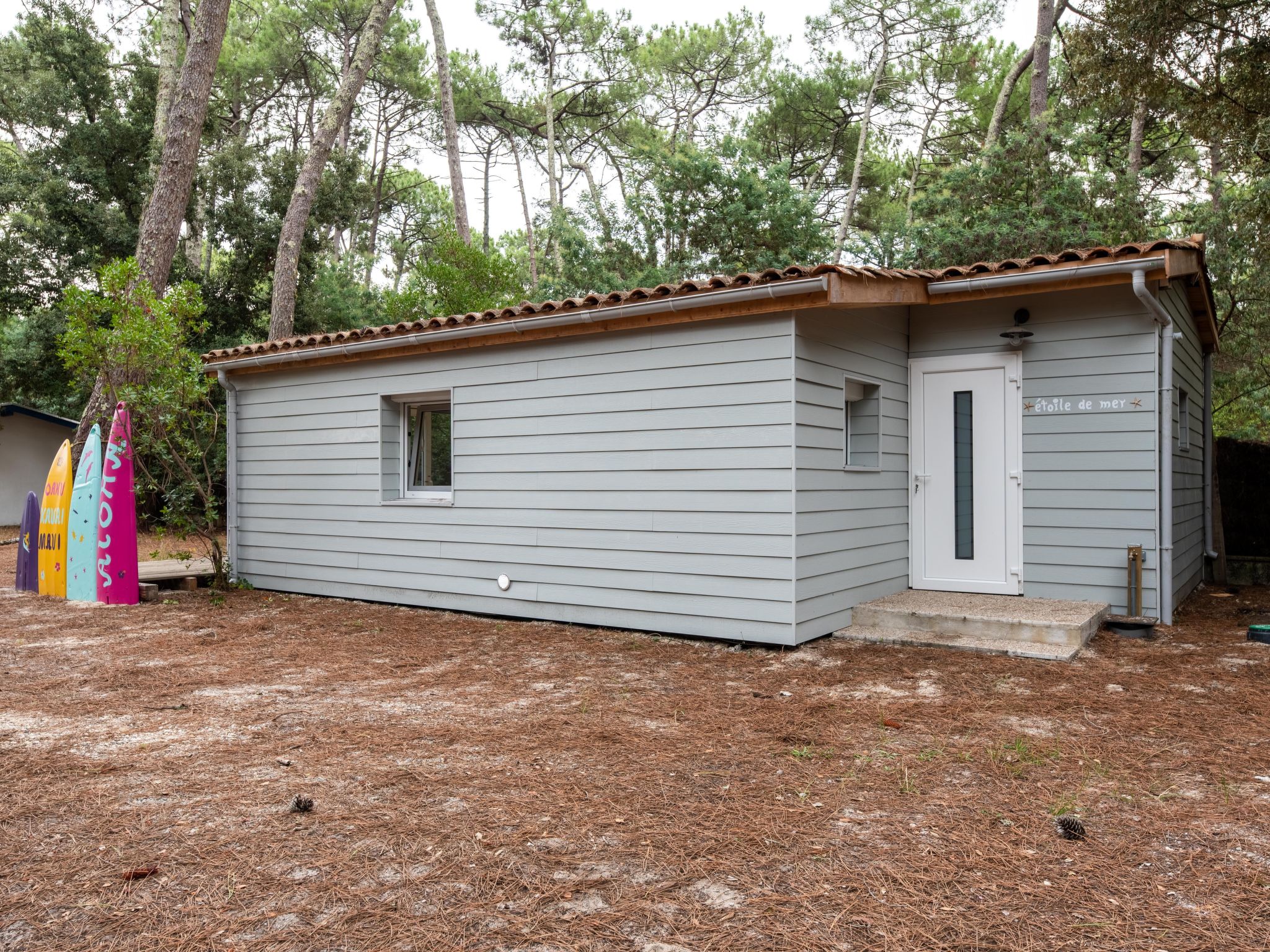 Carreyre 7 km from Lacanau Ocean: Beautiful chalet "Cottage Etoile de mer", surrounded by trees. In the district of Moutchic, in a quiet position, 7 km from the sea, 100 m from the lake. For shared use: garden 2'000 m2 (fenced), natural garden, parking. Grocery 7 km, restaurant 2 km, café 2 km, sandy beach "Lacanau Océan" 7 km, bathing lake "Moutchic" 100 m. Golf course (18 hole) 4 km, riding stable 8 km. Nearby attractions: Bordeaux 60 km, Cap ferret 50 km, Dune du Pilat 80 km, Saint Emilion 80 km. Well-known lakes can easily be reached: Le Moutchic 100 m, Maubuisson 15 km.